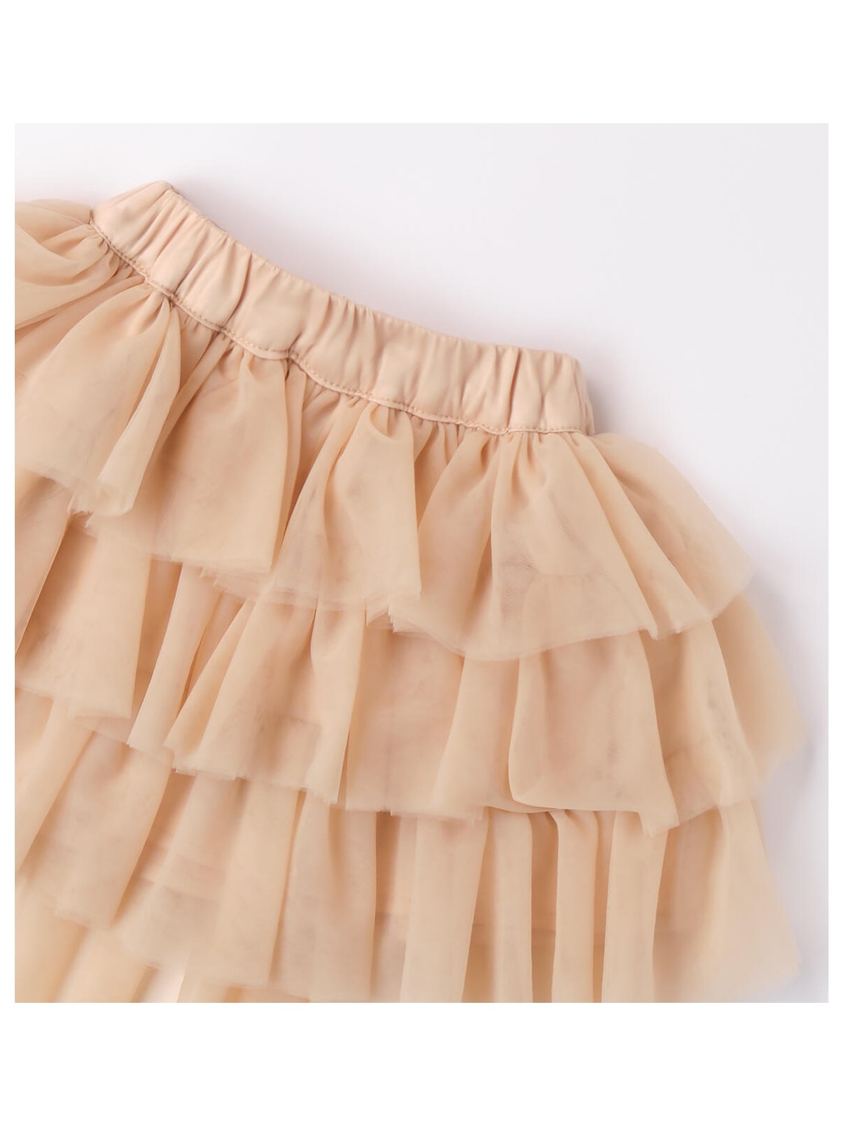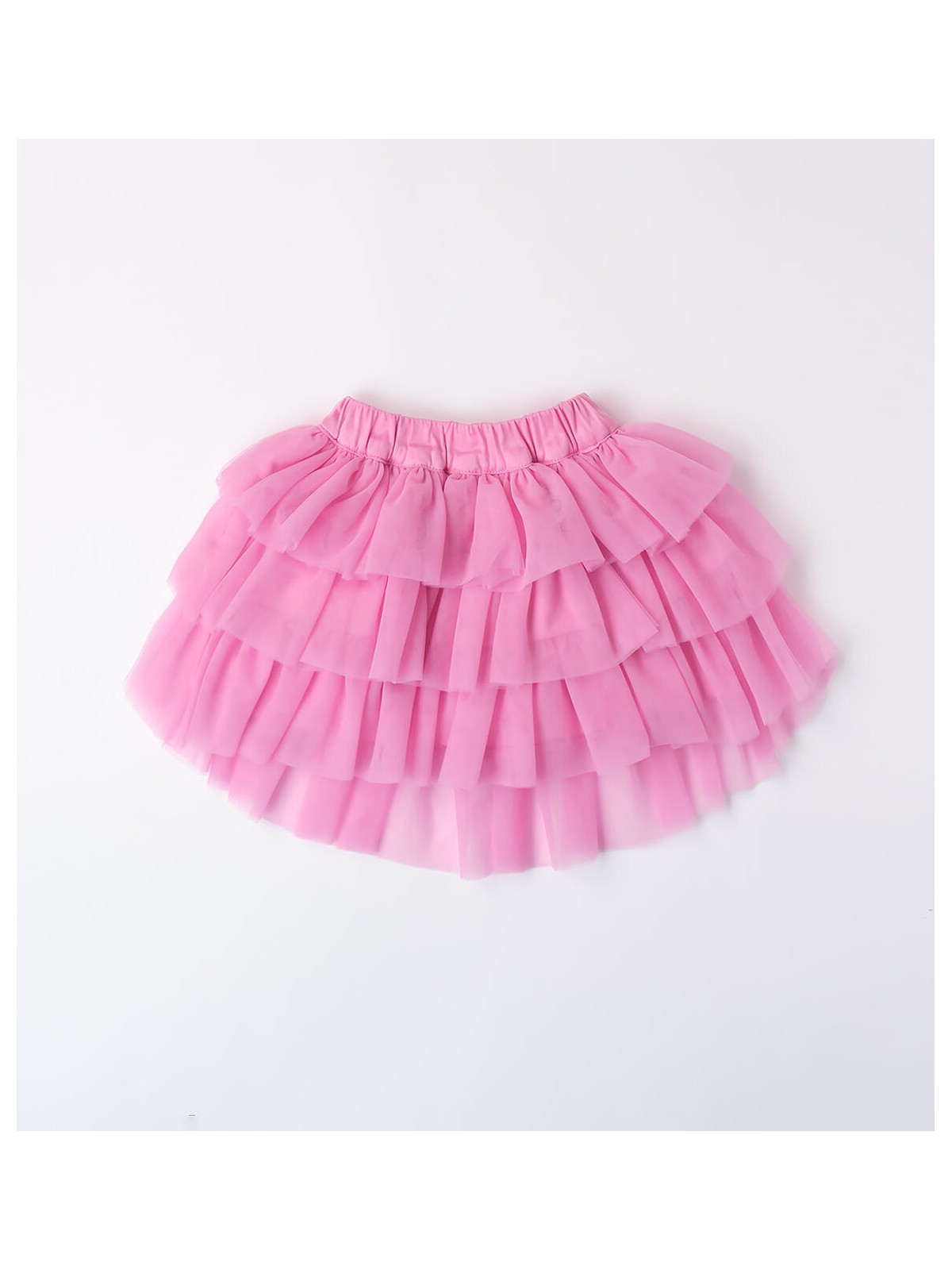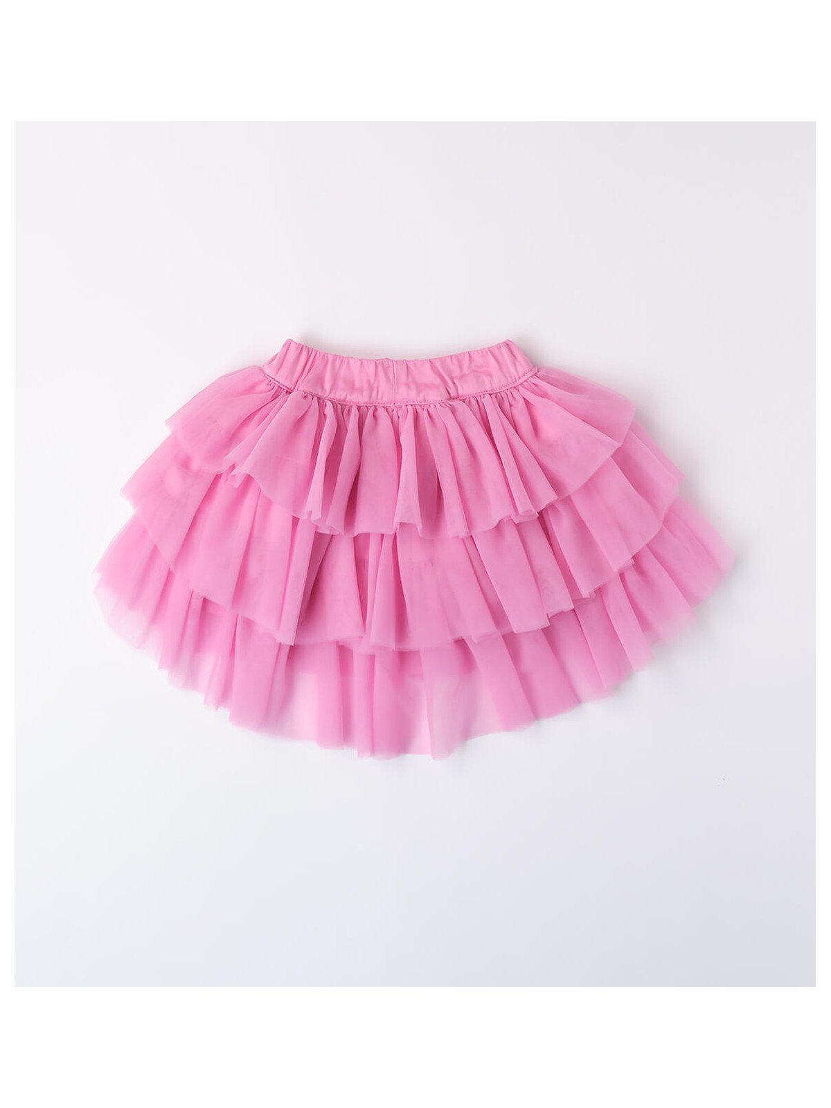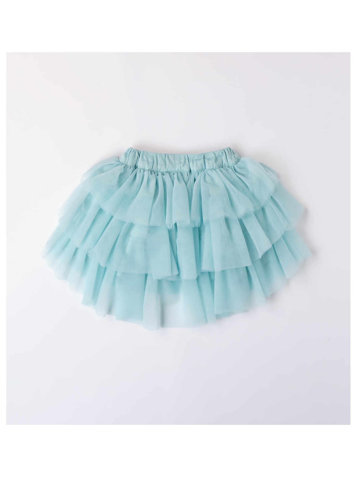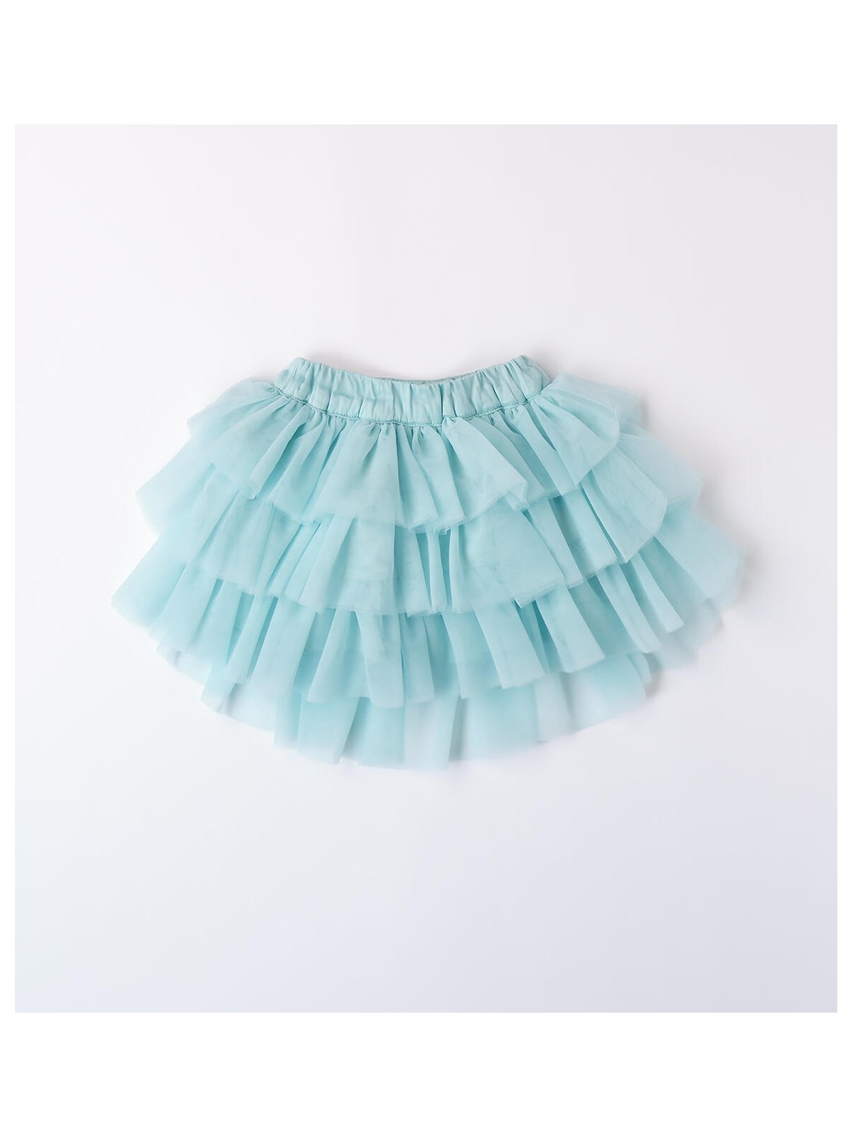 Gonna per bambina 9 mesi - 8 anni realizzata in tulle con fodera in satin. Il modello presenta vita elasticizzata. La gonna è a balze e lunghezza sopra al ginocchio
