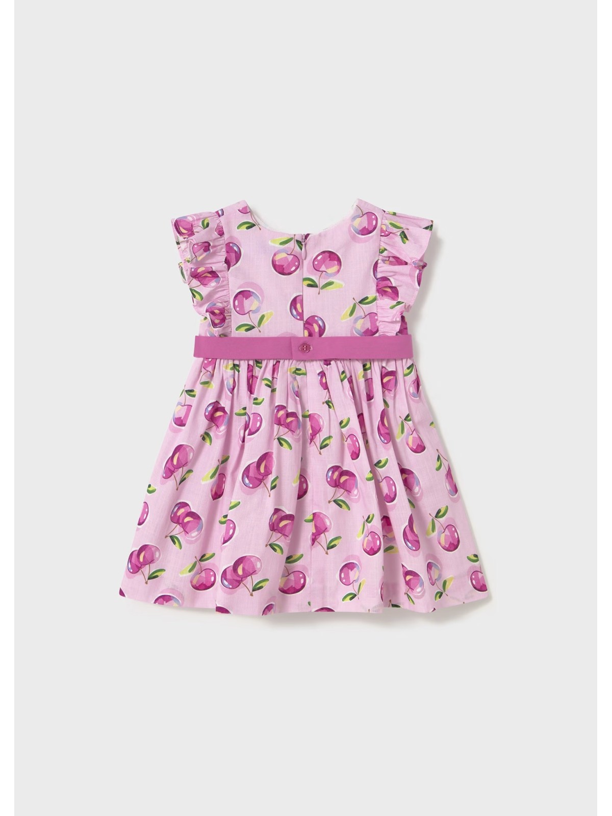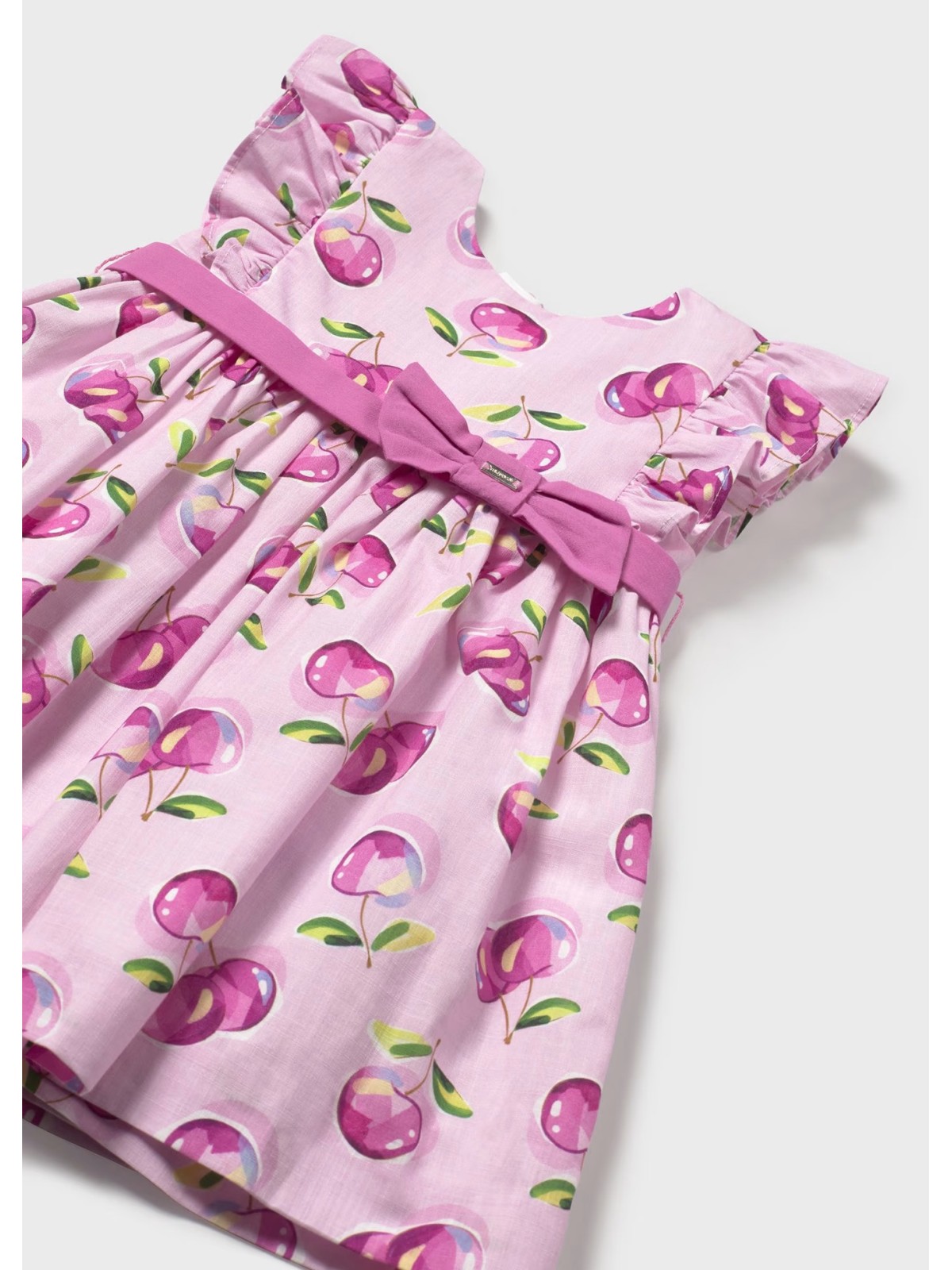 Vestito neonata fantasia ciliegie , con cintura in vita e fiocco , apertura sul retro con zip.