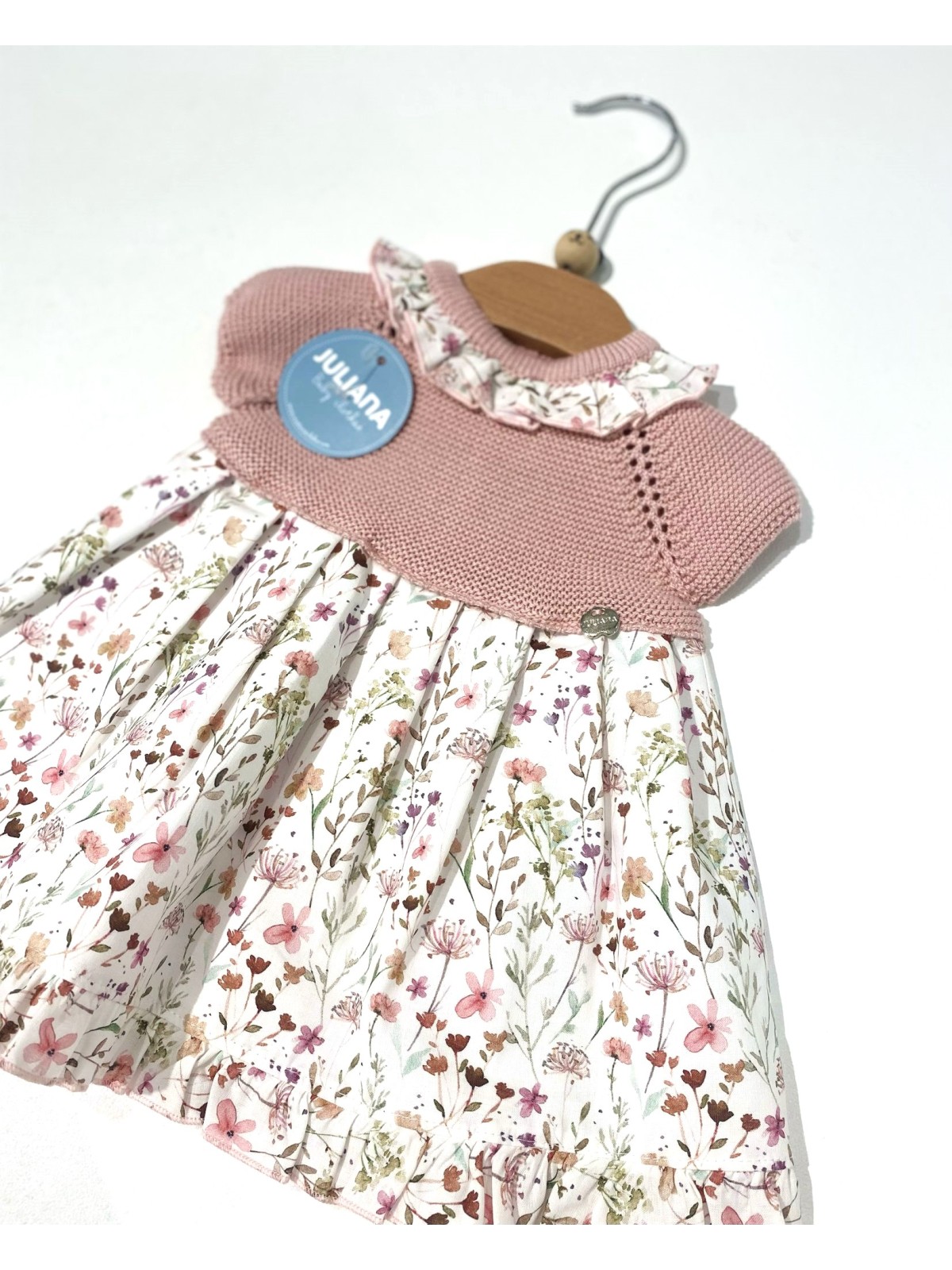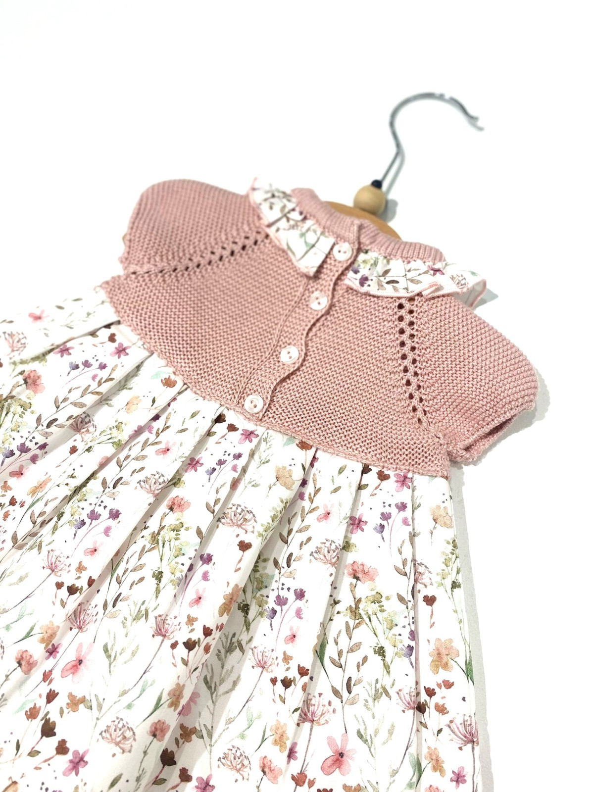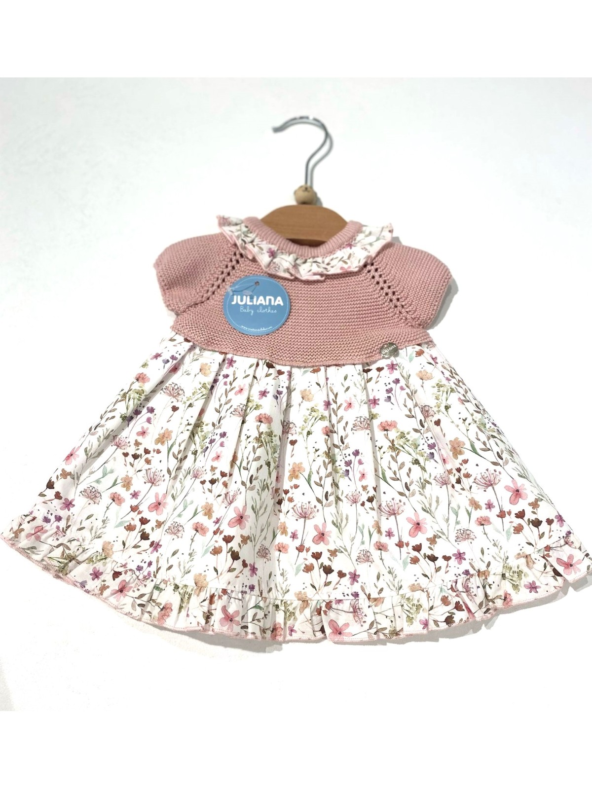Abitino juliana neonata composto da sopra in filo , sotto in cotone fantsia . Colletto ed apertura sul retro con bottoni