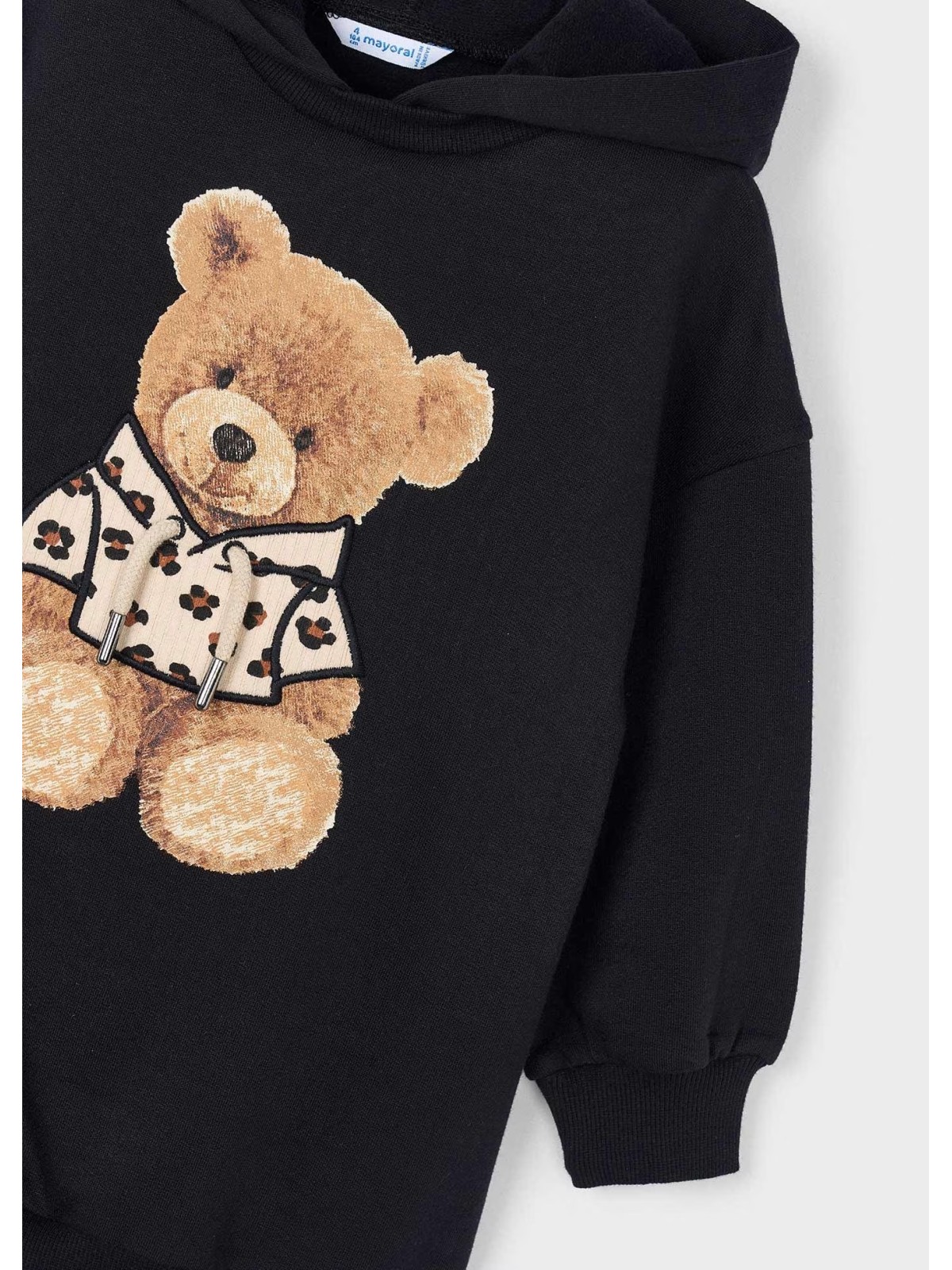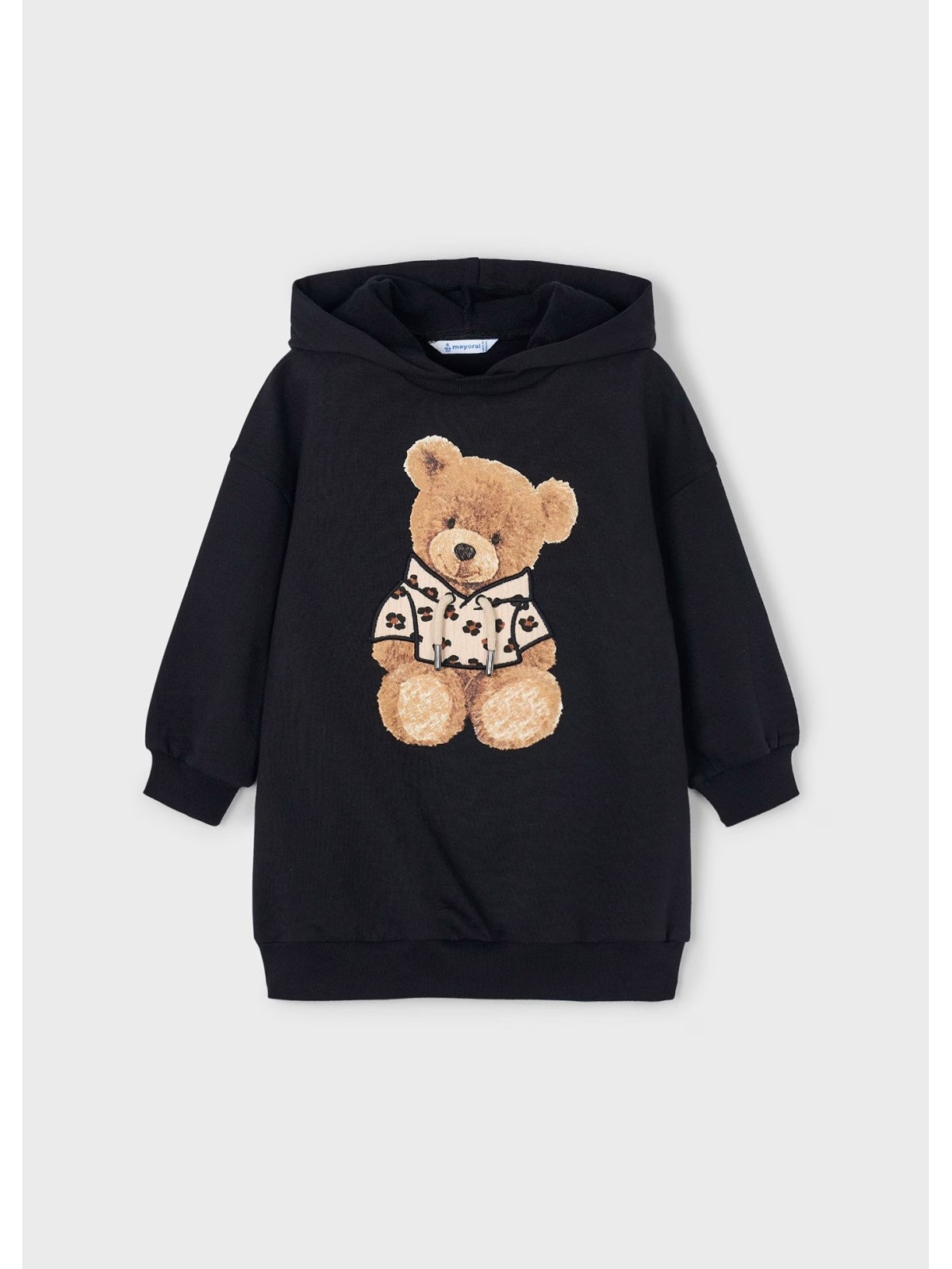 Vestito manica lunga per bambina. Colletto con cappuccio. Caldo tessuto in felpa pesante ideale per proteggere dal freddo. Elementi decorativi: Serigrafia