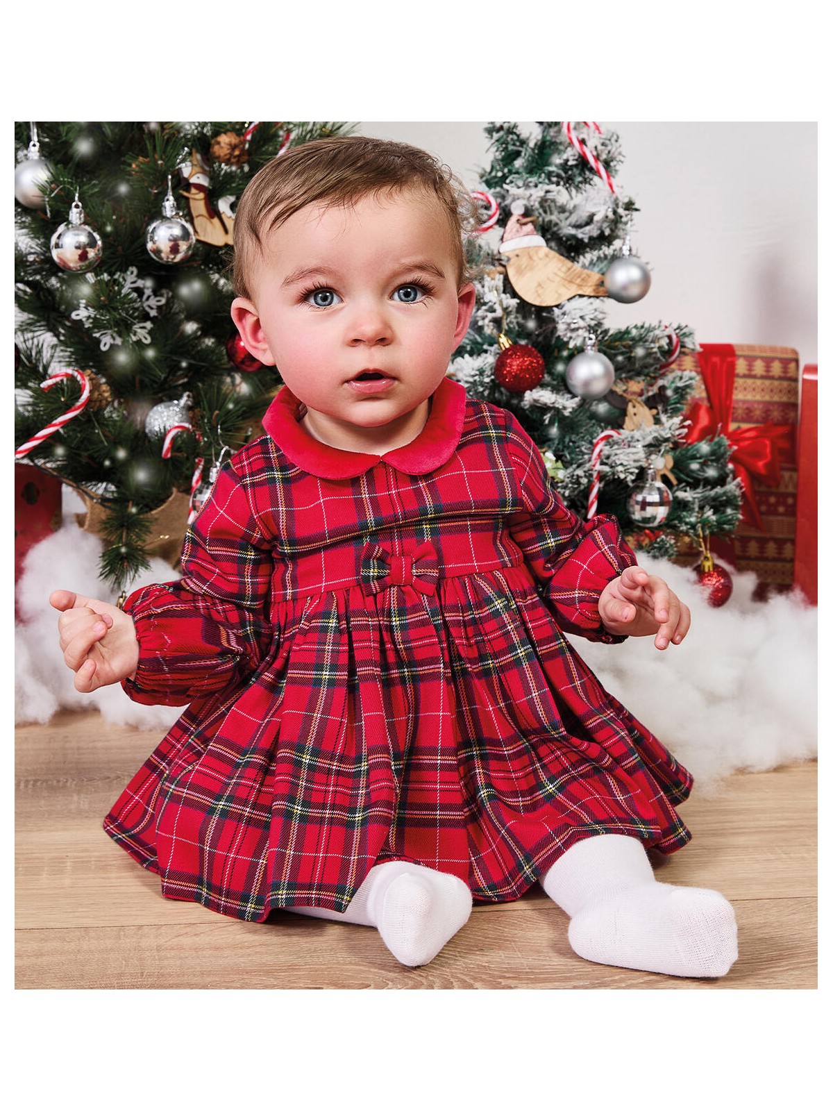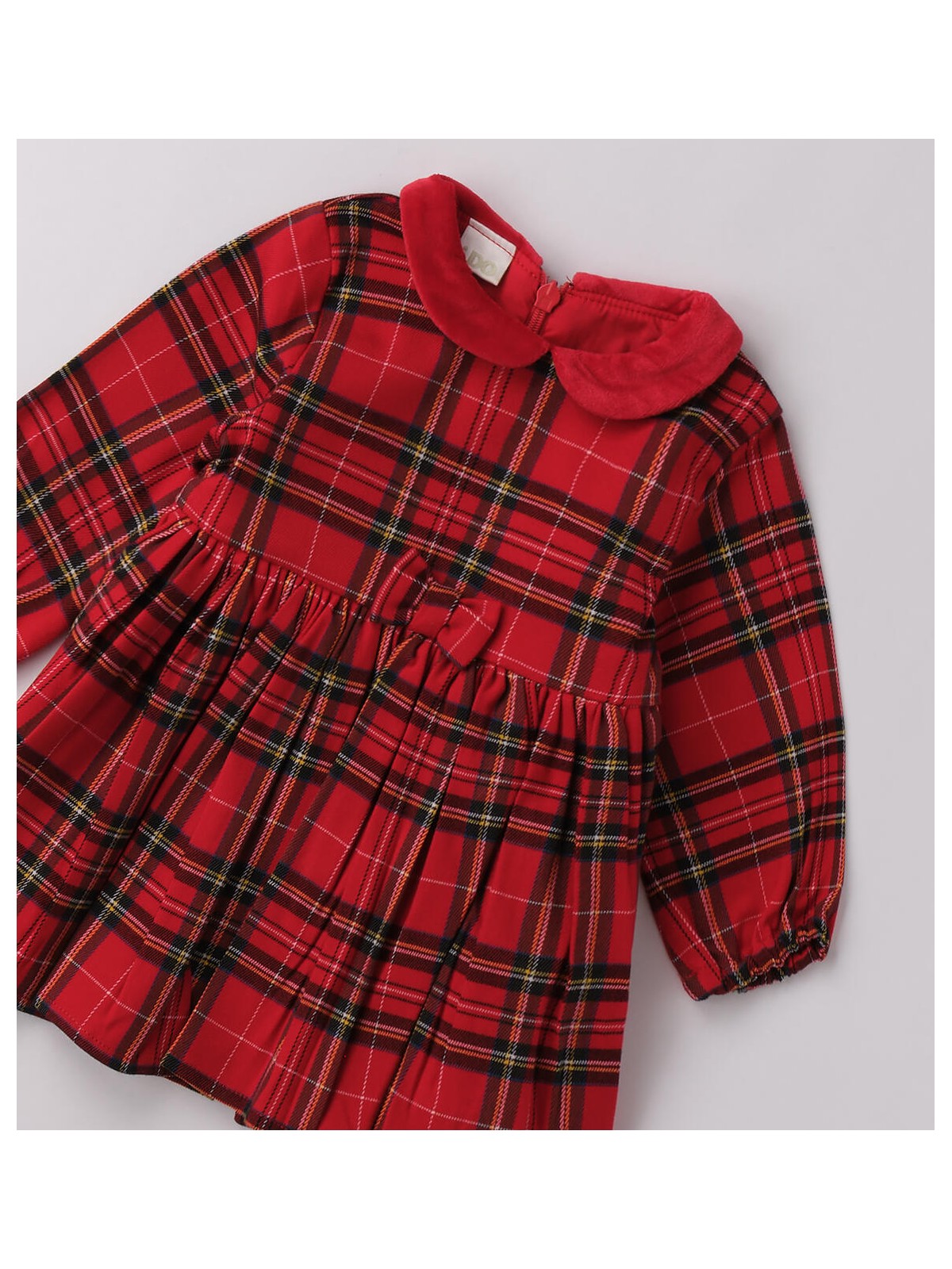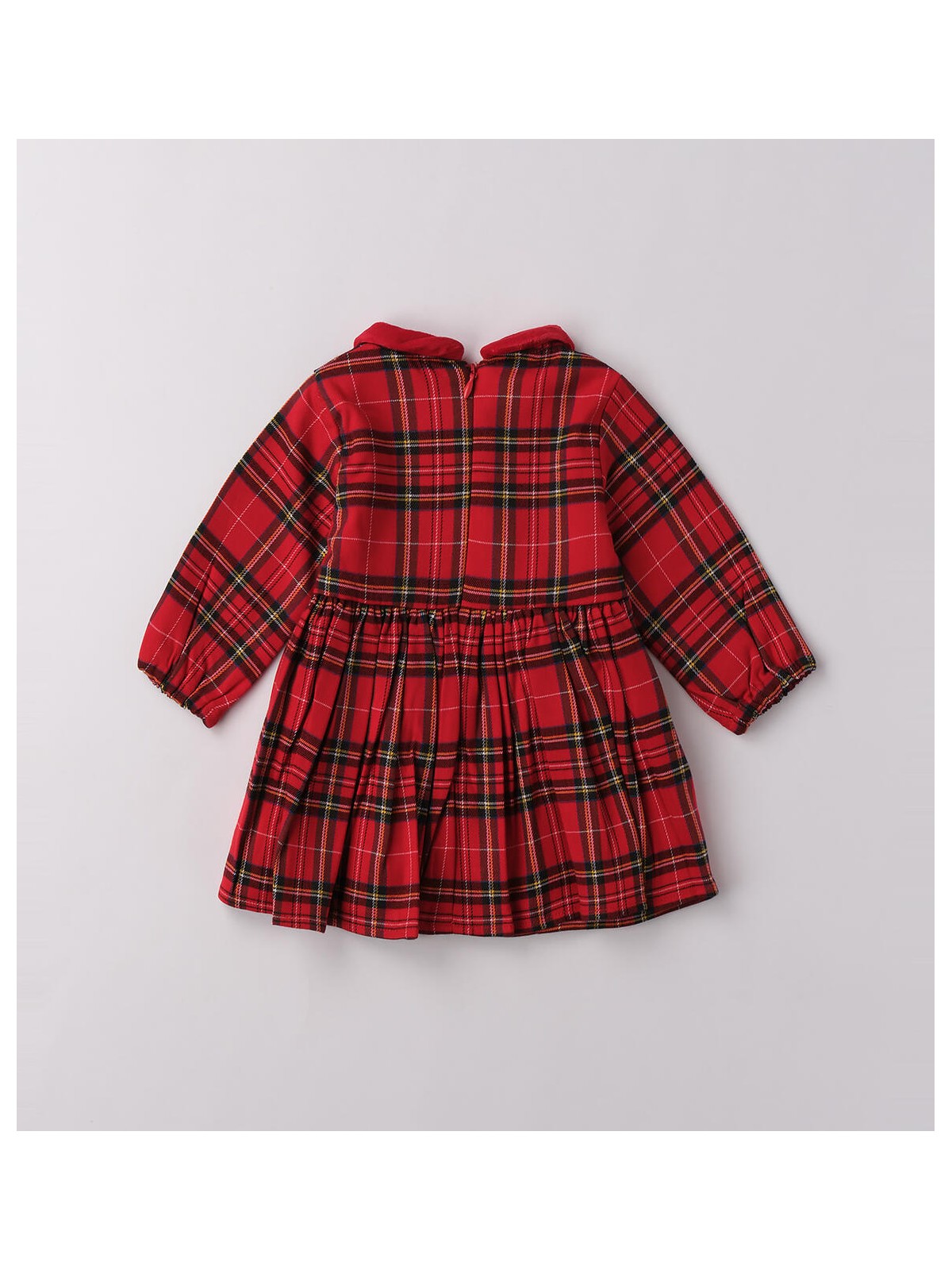 Abito per bambina realizzato in twill, fantasia check. Il modello presenta apertura sul retro con zip invisibile e fodera in cotone. Lunghezza sopra al ginocchio. Perfetto per essere indossato durante le feste natalizie