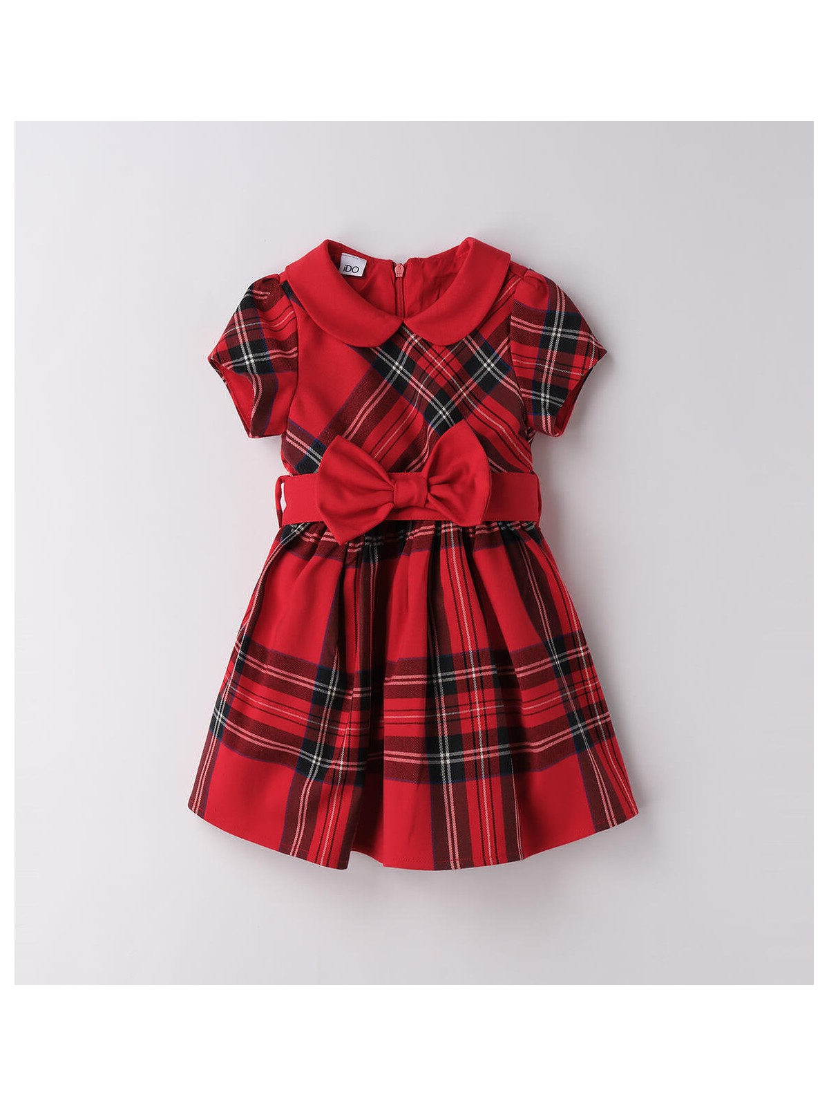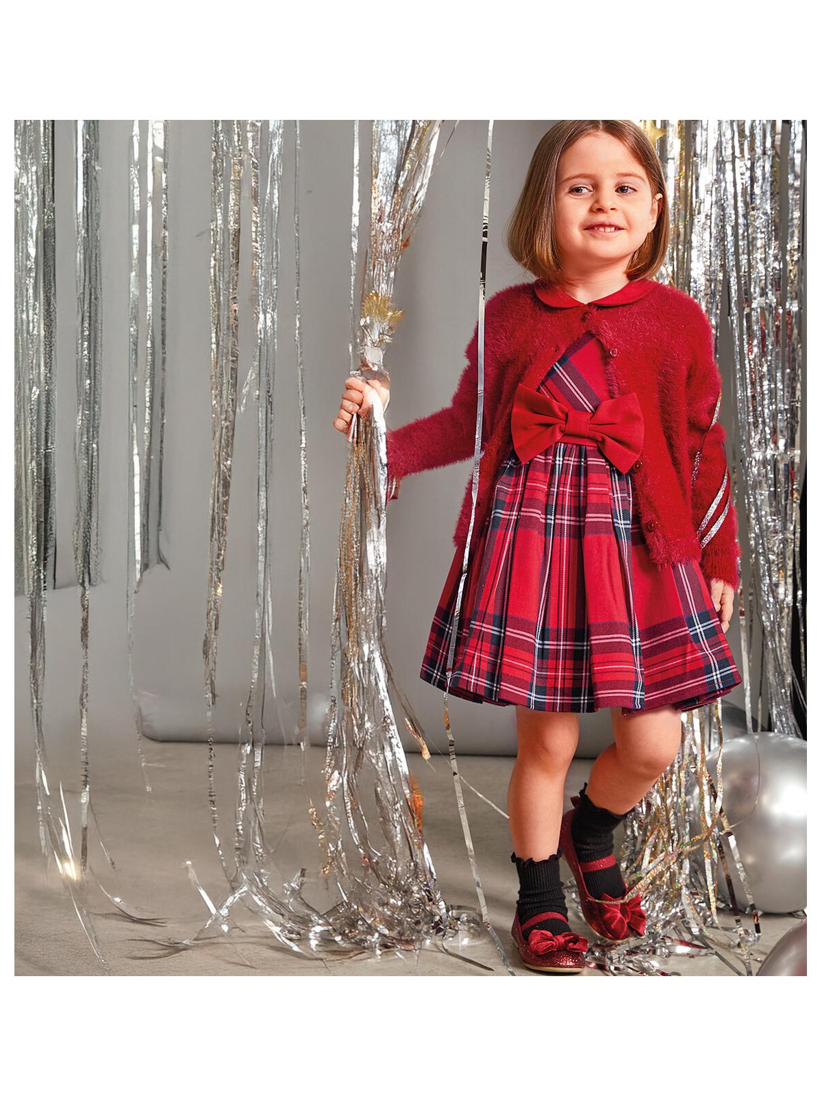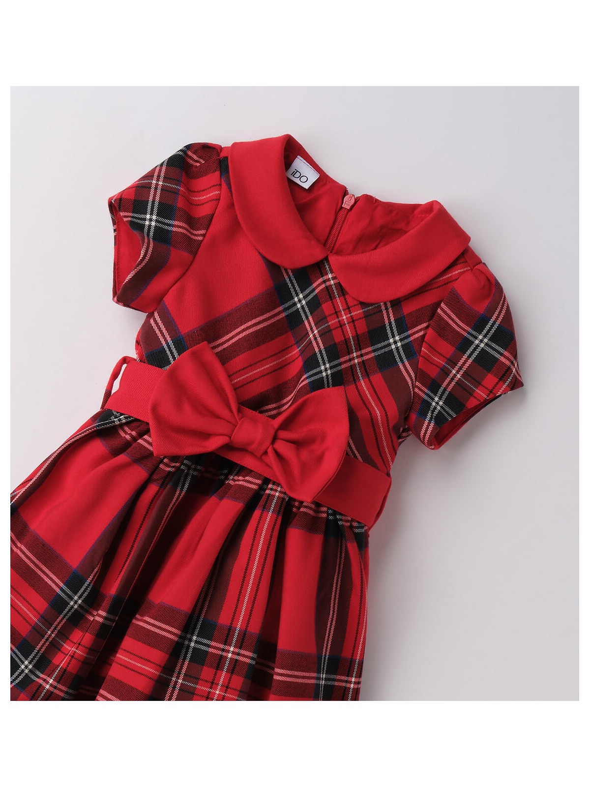 Abito per bambina realizzato in twill fantasia check. Sottogonna in tulle, fodera in twill. Lunghezza sopra al ginocchio. Cintura in vita. Apertura dietro con zip