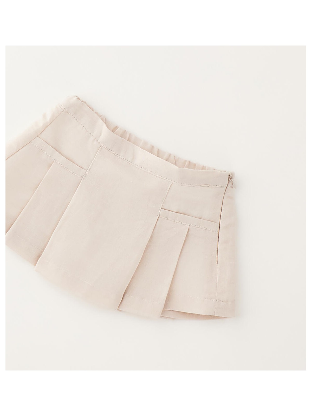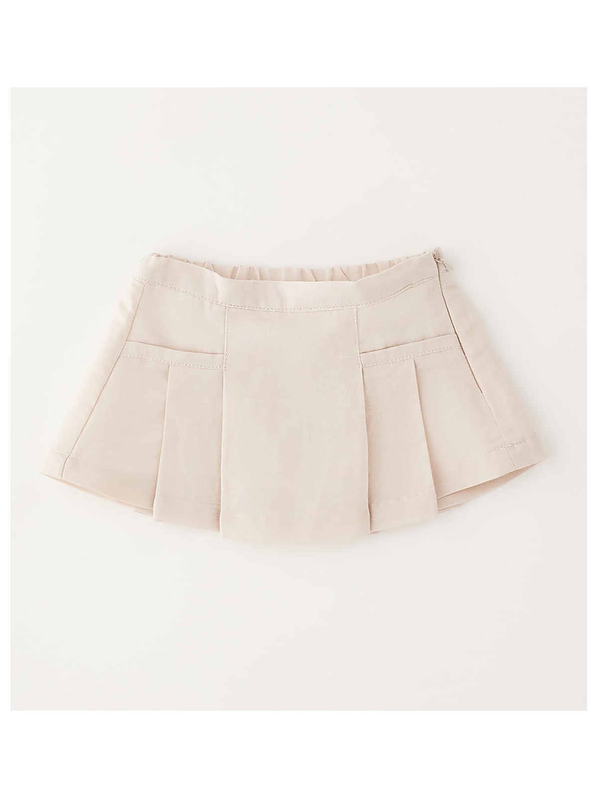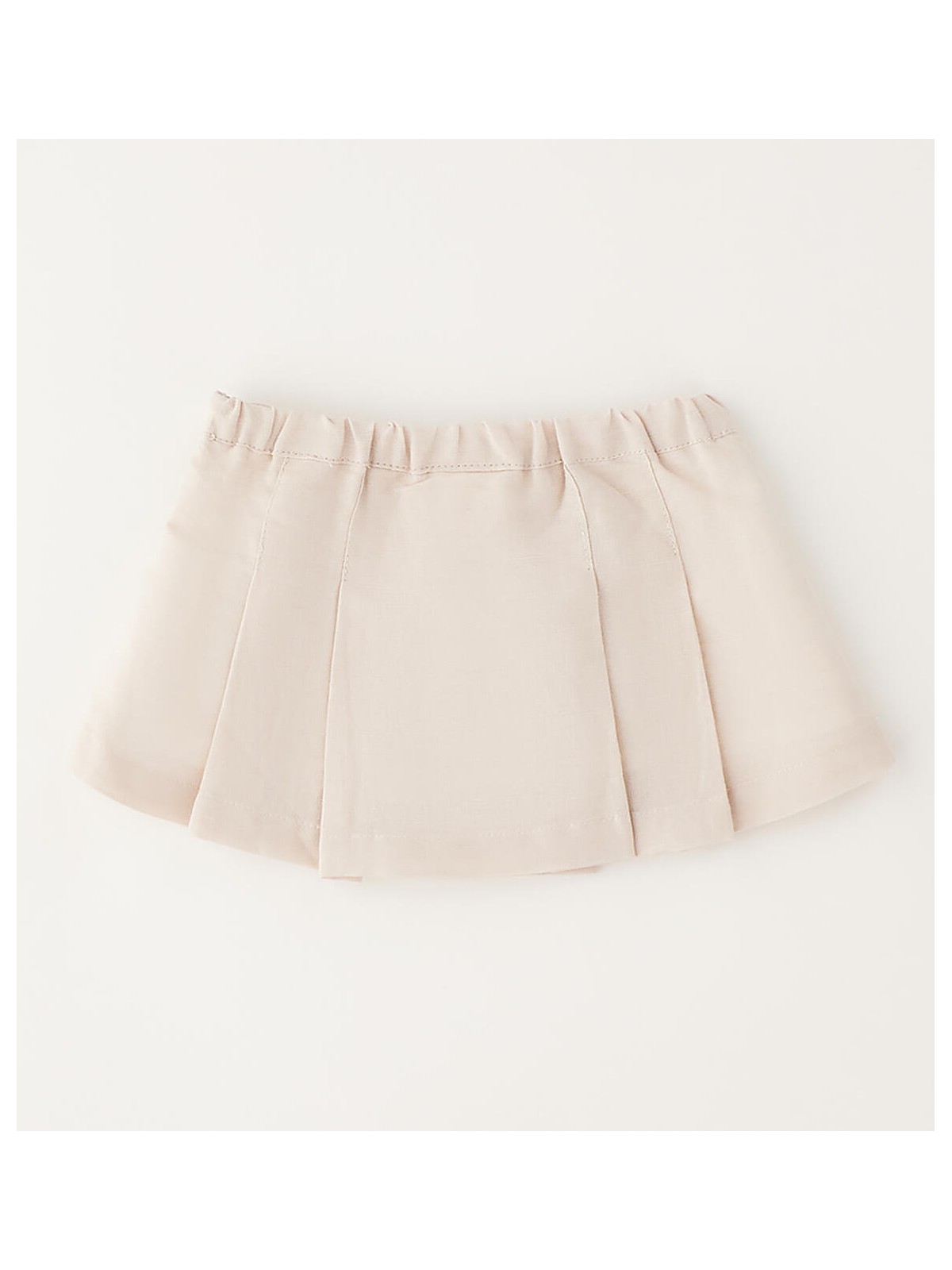 Gonna per neonata Minibanda realizzata in lino e cotone con fodera in cotone. Apertura laterale con zip invisibile, finte tasche e lunghezza mini