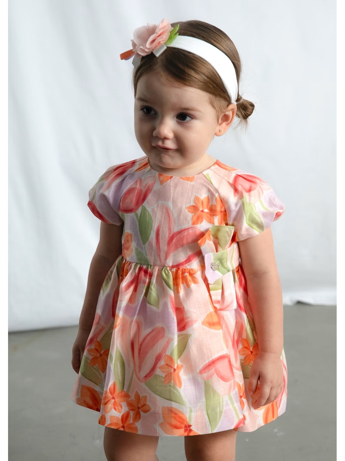 Vestito neonata mezza manica fantasia , apertura sul retro con zip.