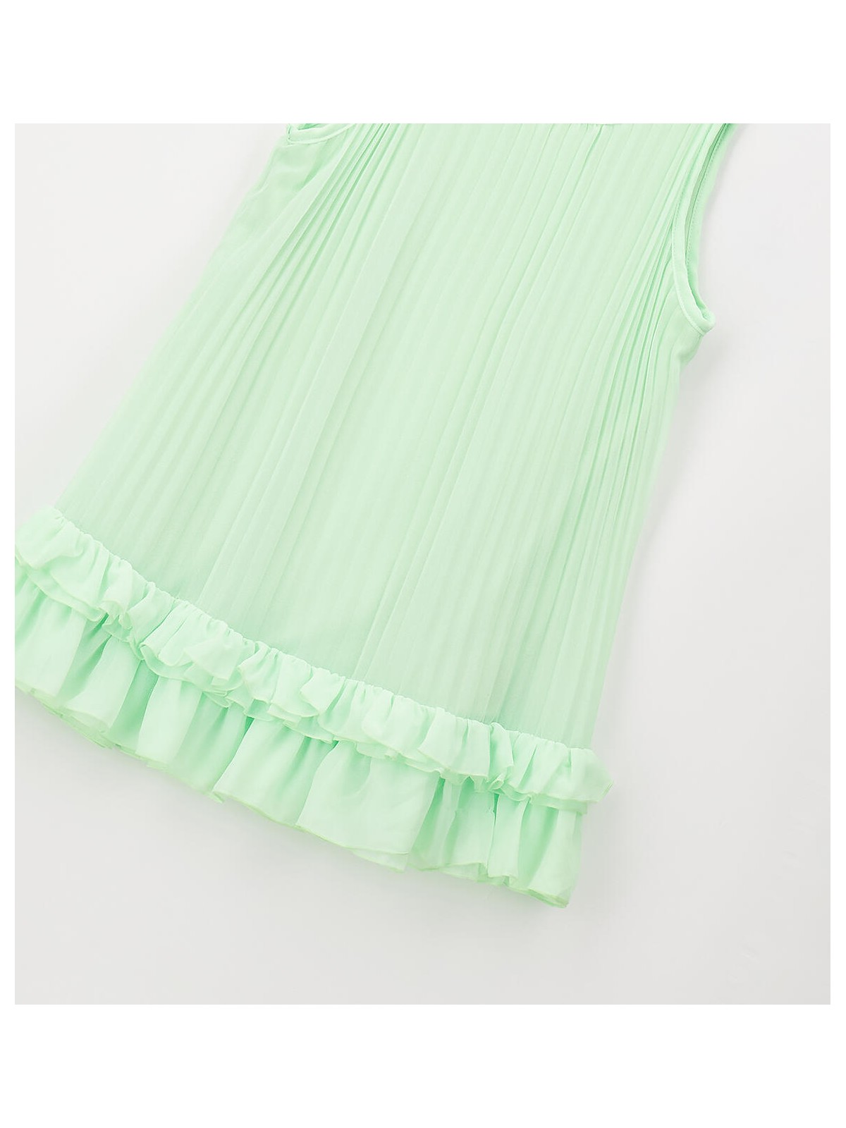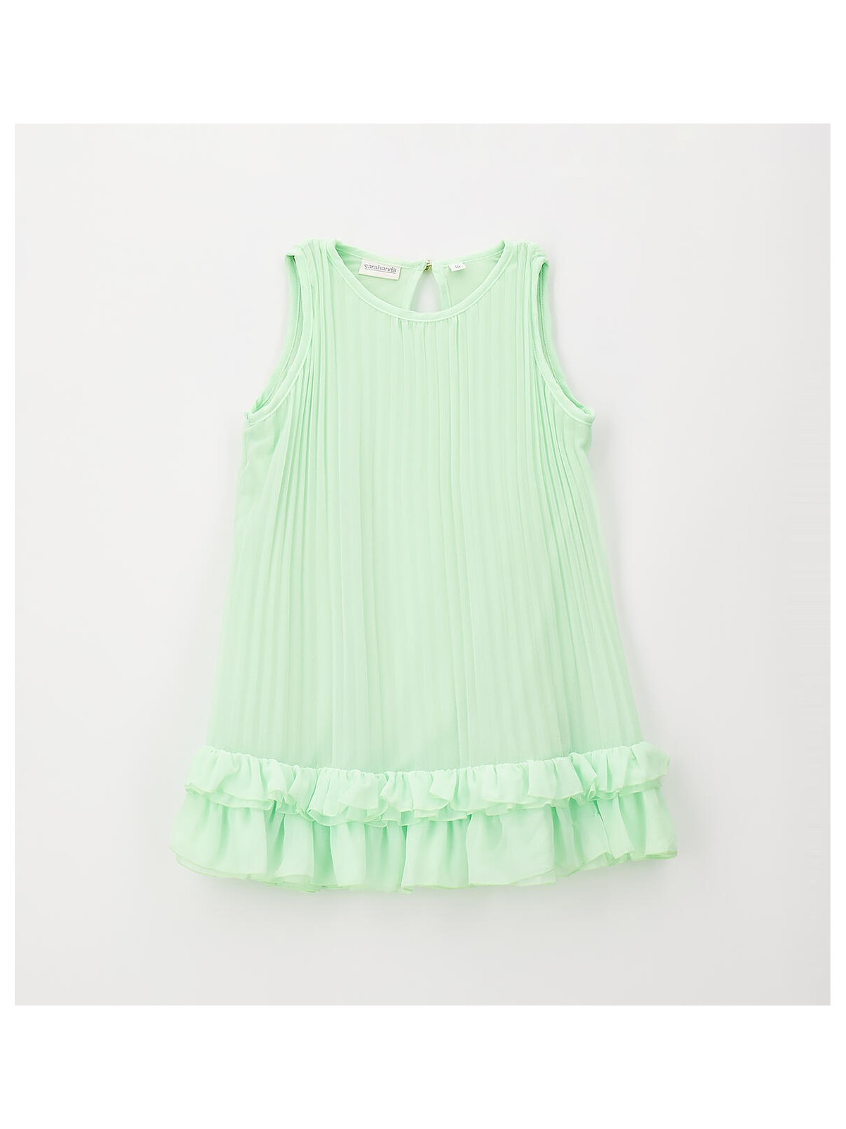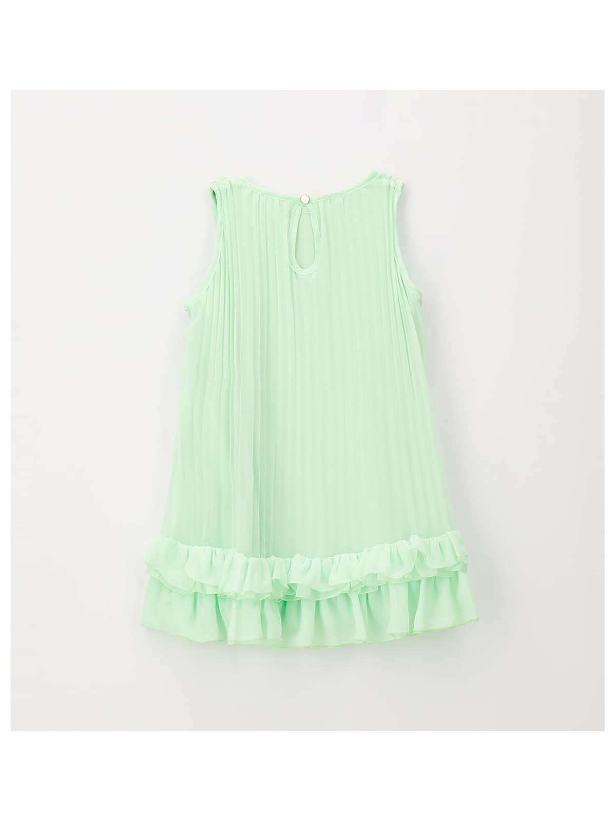Vestito per bambina Sarabanda realizzato in chiffon plissettato con balza sul fondo. Modello foderato con apertura dietro tramite bottone. Lunghezza al ginocchio. Il modello fa parte della collezione Sarabanda Premium pensata per vestire le cerimonie più formali