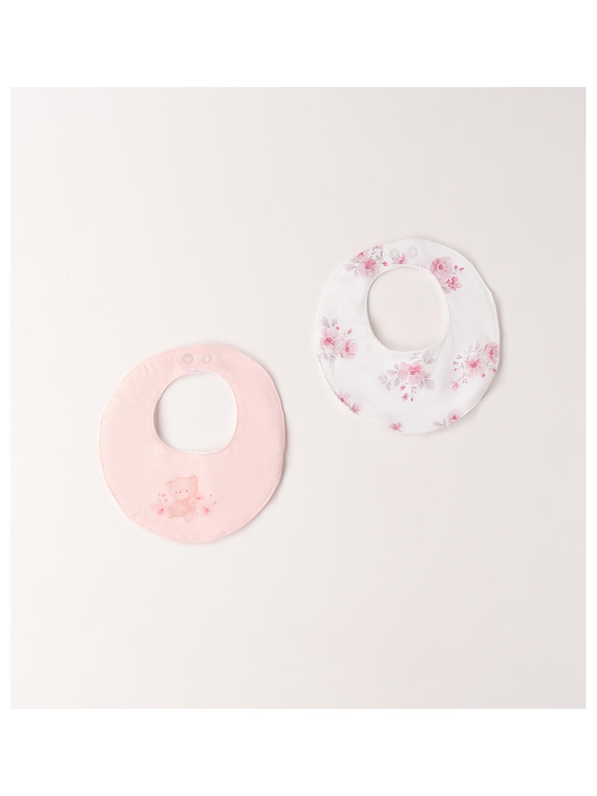 Bavina per neonata realizzata in jersey stretch di cotone con retro in spugna di cotone, due varianti disponibili Chiusura regolabile con bottoni a pressione.
