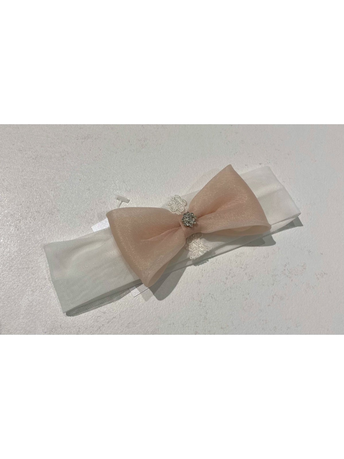 Fascia in tulle elasticizzato con applicazione fiocco. Abbinata ad abitino rif 09303