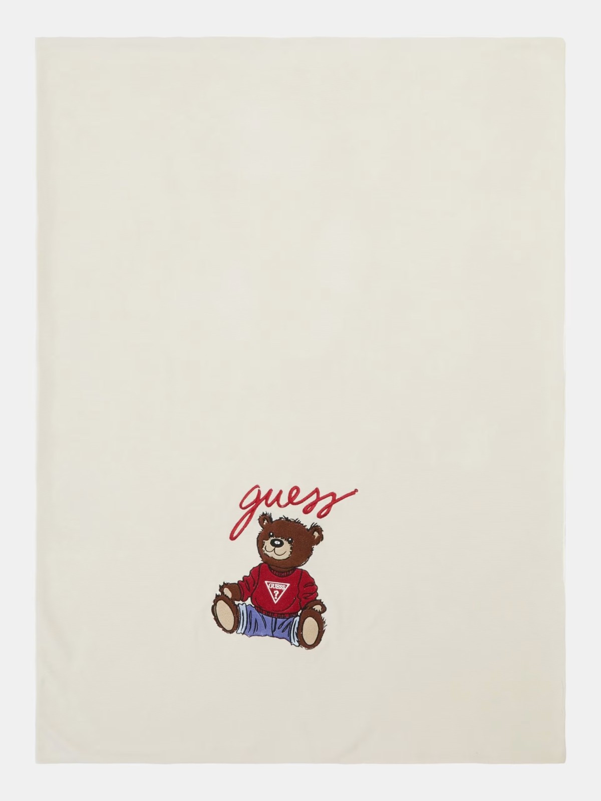 Coperta unisex in felpa di cotone. Ricamo logo e orsacchiotto. Dimensioni: 99x73 cm