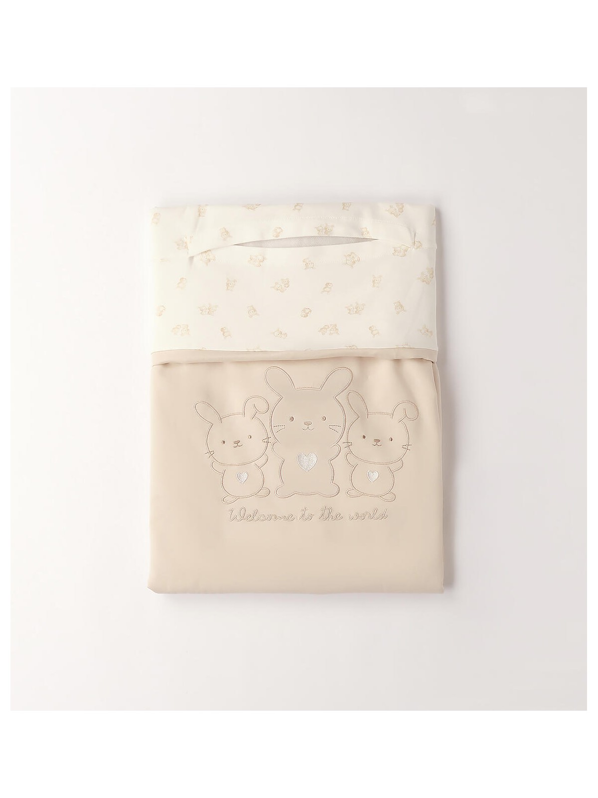 Copertina per neonati realizzata in 100% cotone, davanti in felpa e dietro in jersey. Leggera imbottitura in ovatta, comodamente removibile grazie all'apertura sul retro con velcro. Misura per culla: lunghezza 100 cm e larghezza 75 cm. La copertina è confezionata in una pratica scatola.