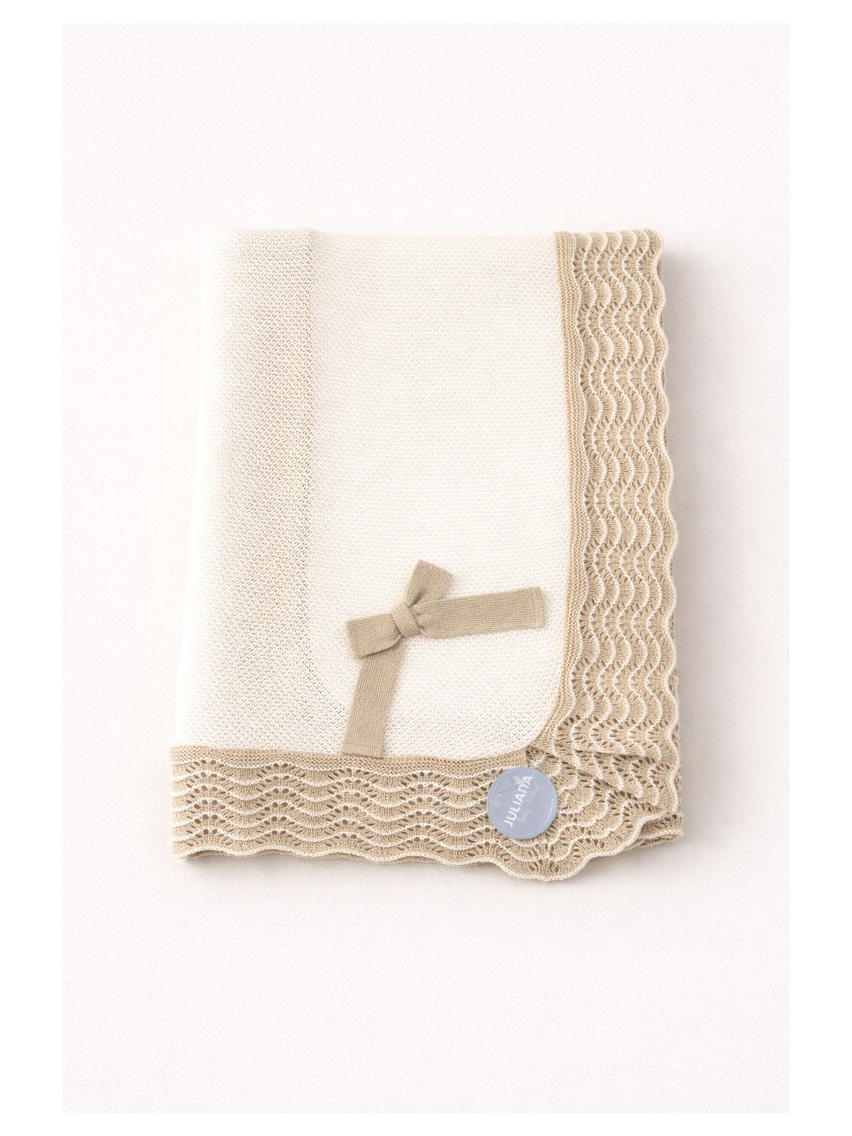 Scialle in filo di cotone morbida e piacevole al tatto. Si tratta di un accessorio leggero, pieghevole e versatile ideale per i primi mesi di vita del tuo/a piccola. Abbinabile ai completi 11569 e 11602