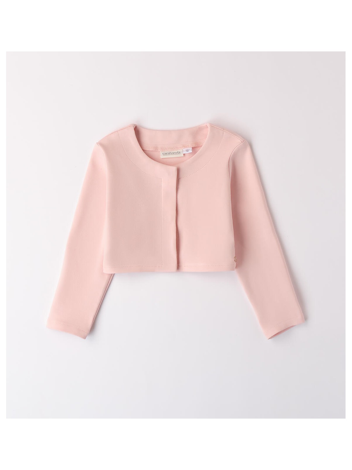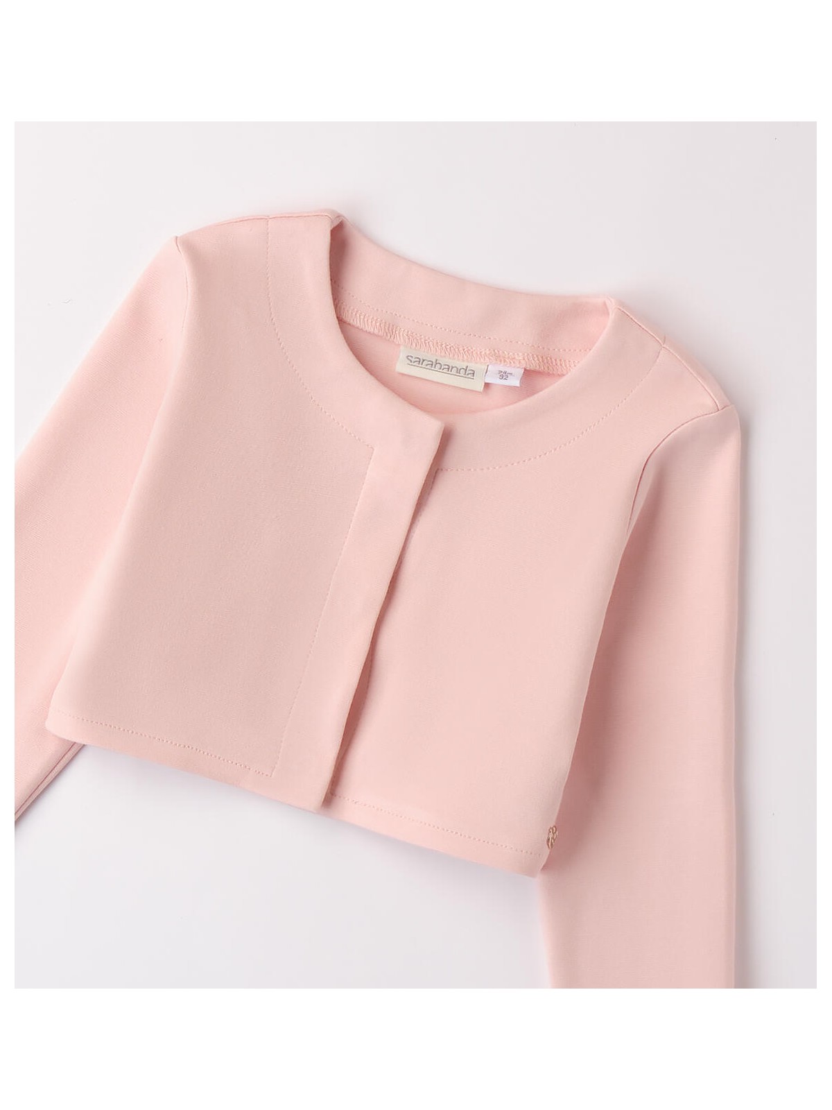 Cardigan per bambina Sarabanda 9 mesi - 8 anni realizzato in punto milano. Il modello presenta apertura frontale con bottoni nascosti, badge Sarabanda e fantasia tinta unita. Modello coprispalle per cerimonia