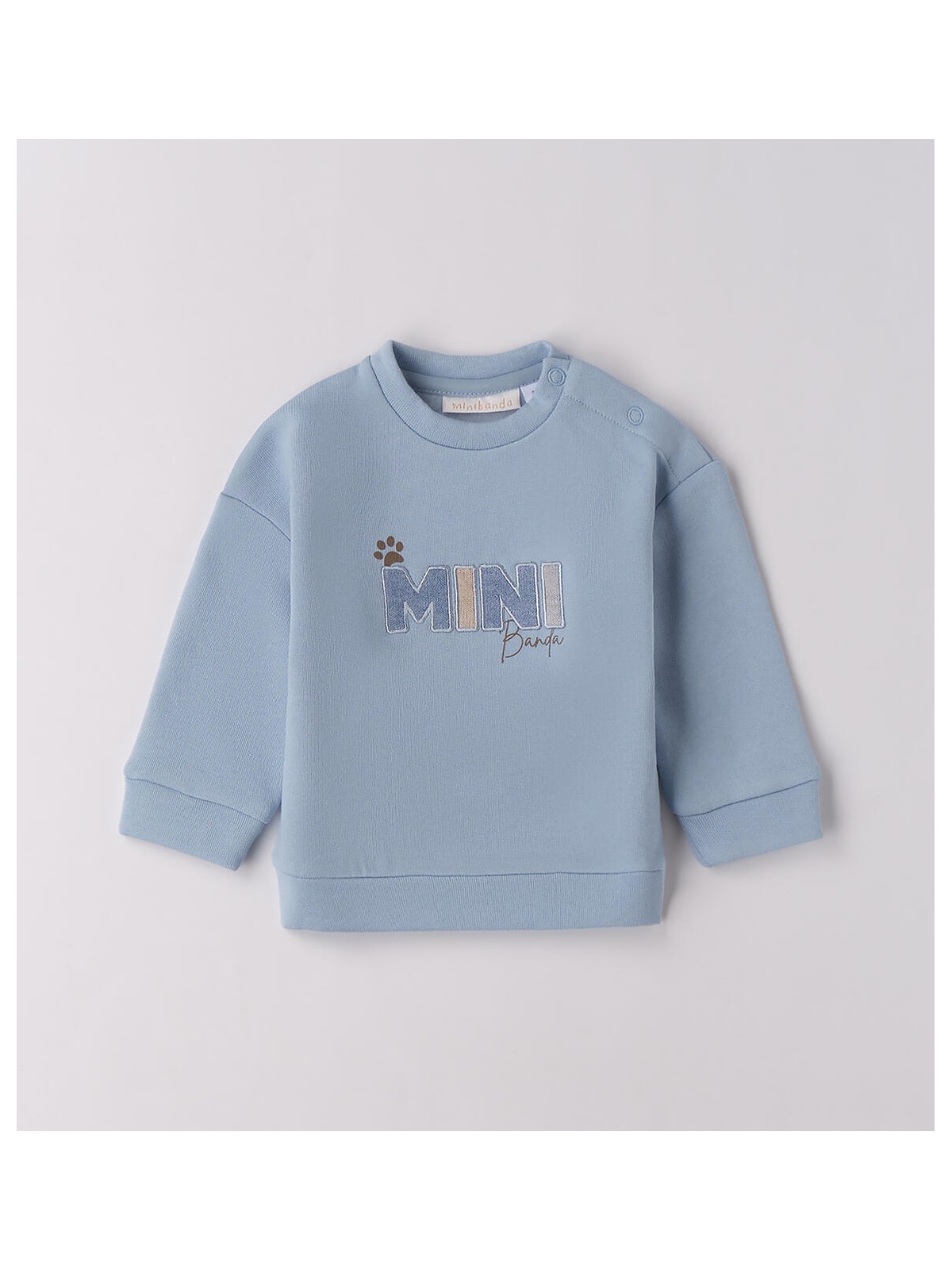 Felpa per bimbo Minibanda realizzata in felpa di cotone invernale, felpato internamente. Apertura sulla spalla con bottoni a pressione. S