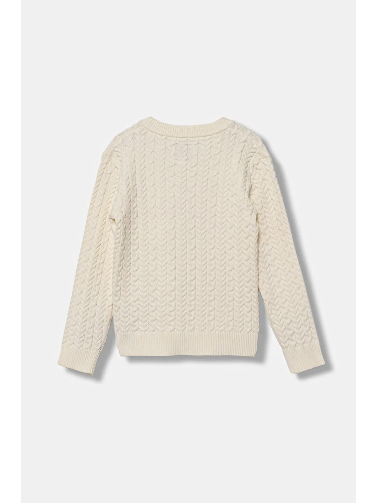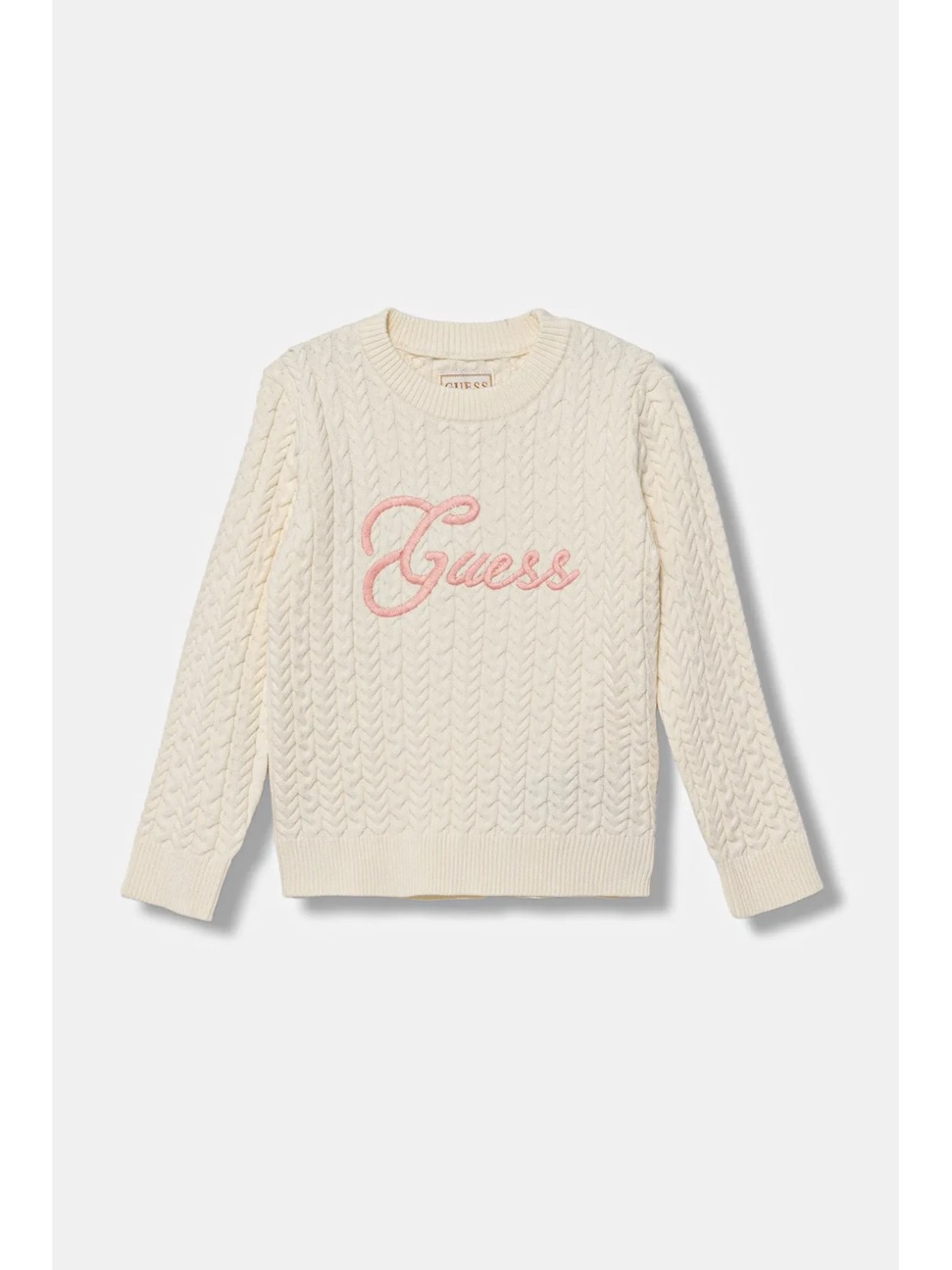 Maglioncino in tricot Guess , con motivo a trecce. Girocollo ,apertura con bottoni fino a 3 anni. Logo ricamato sulla parte frontale.