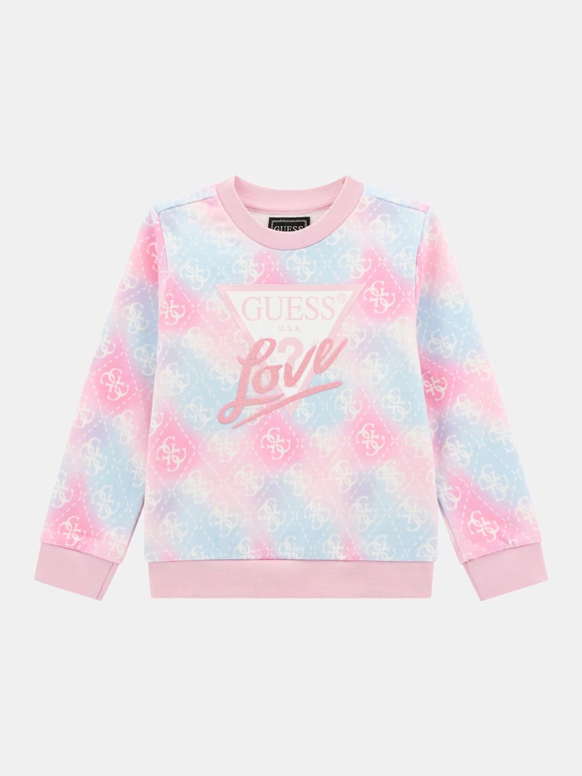 Felpa logo guess multicolor , manica lunga , scollo tondo vestibilità regoular. Apertura con bottoni fino a 3 anni.