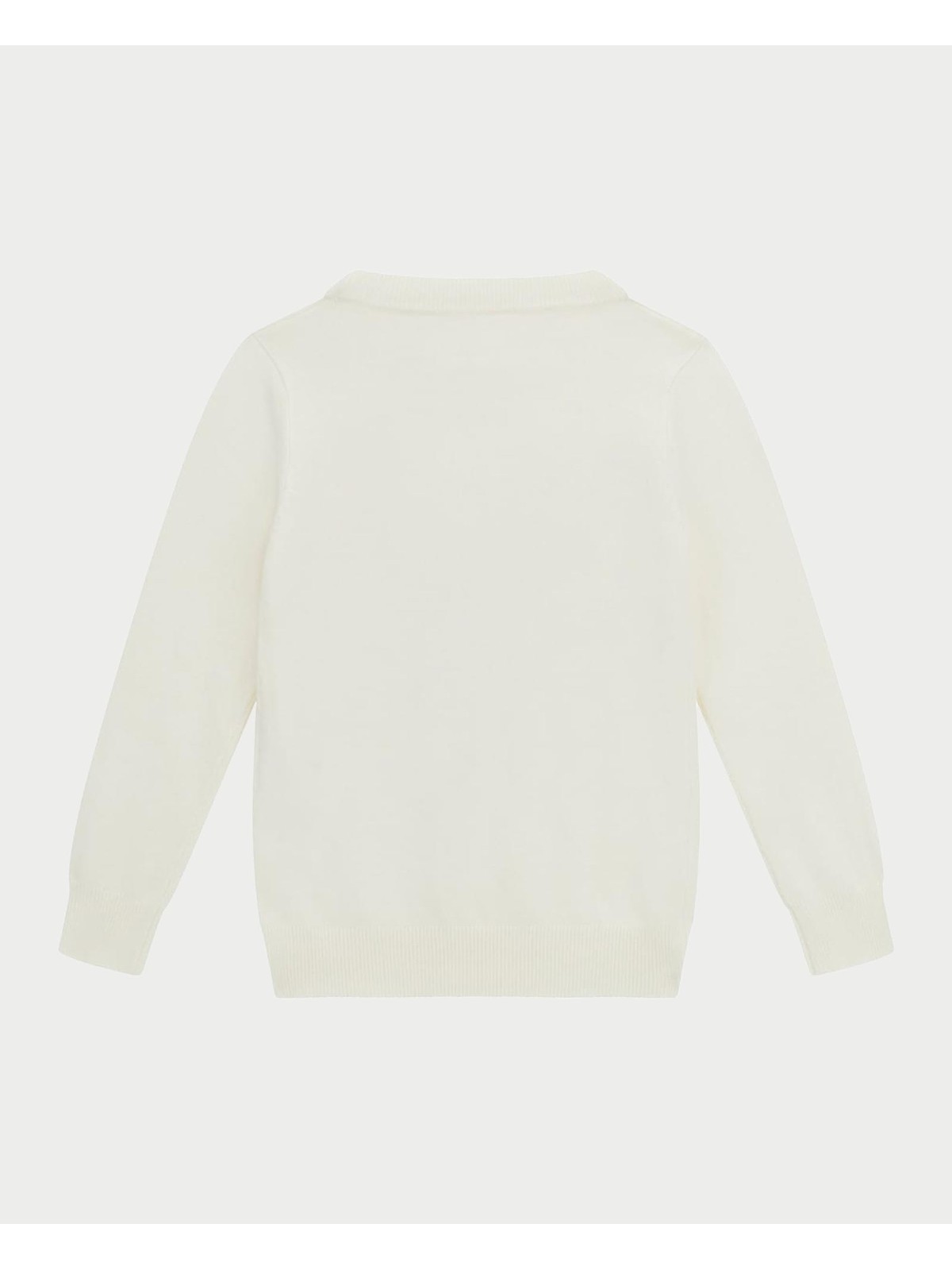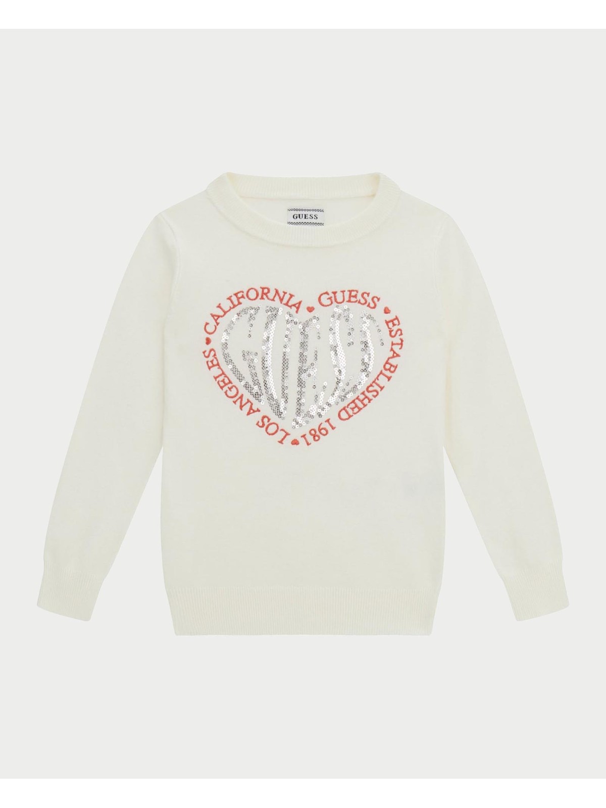 Maglia Guess realizzata in tricot. La maglia ha apertura sulla spalla con bottoni per facilitare la vestizione . Manica con polsino sul fondo e paillettes in applicazione.