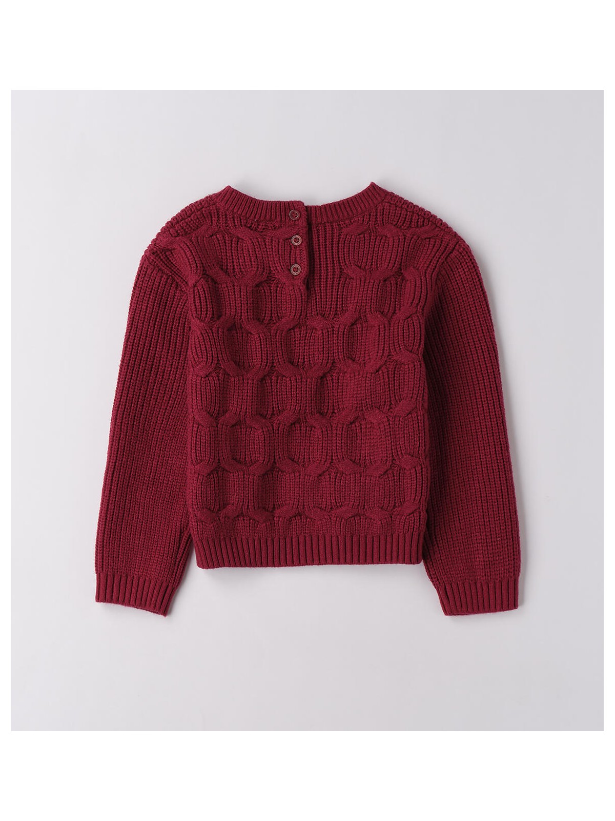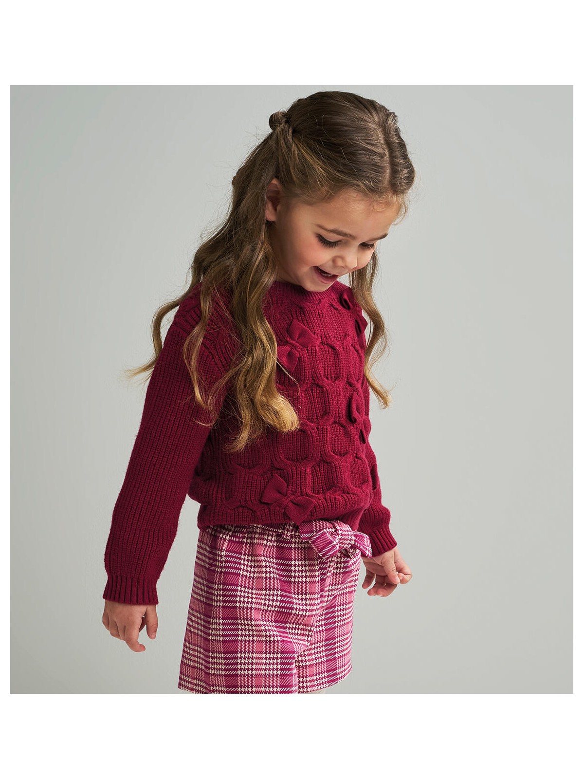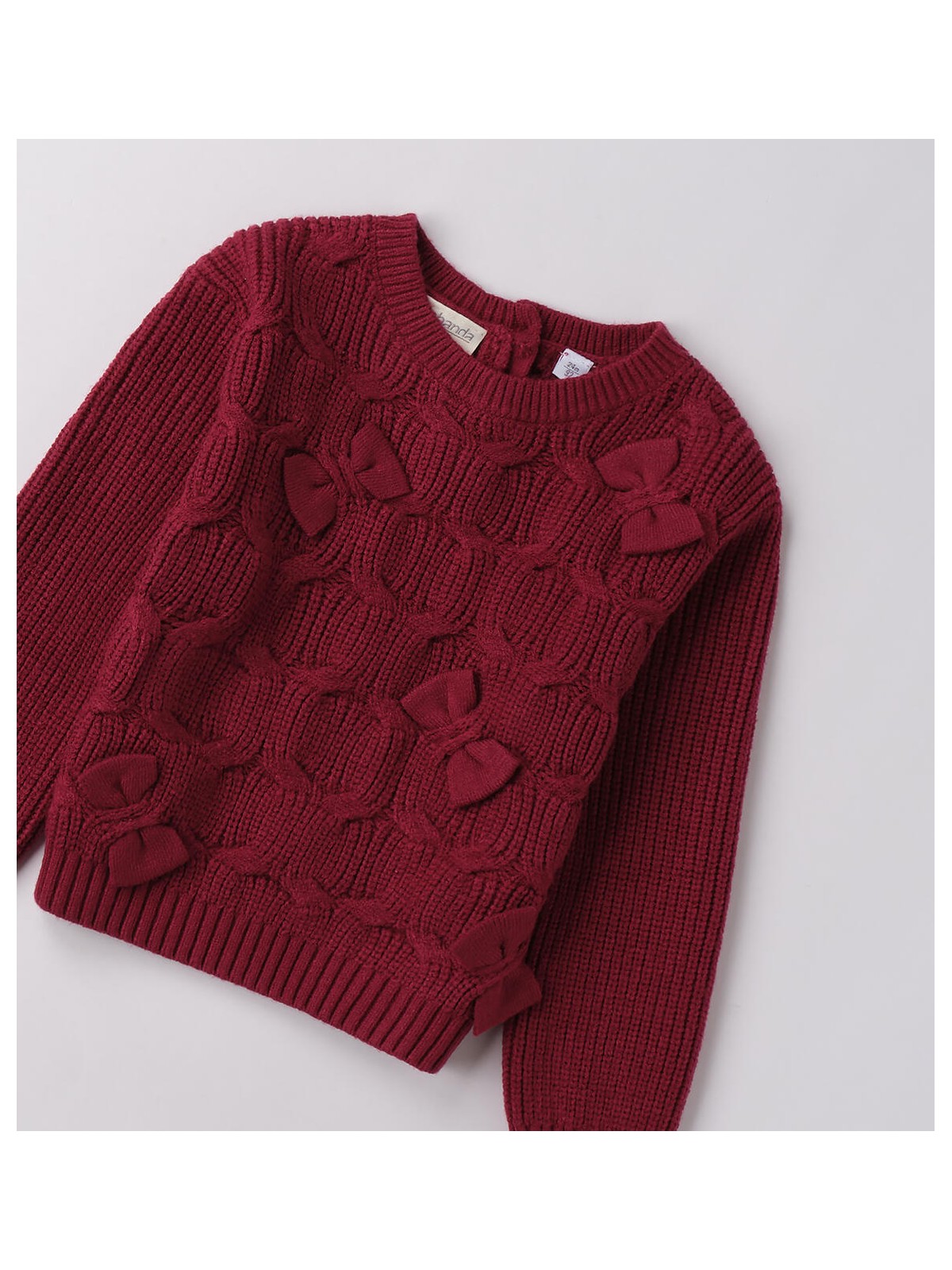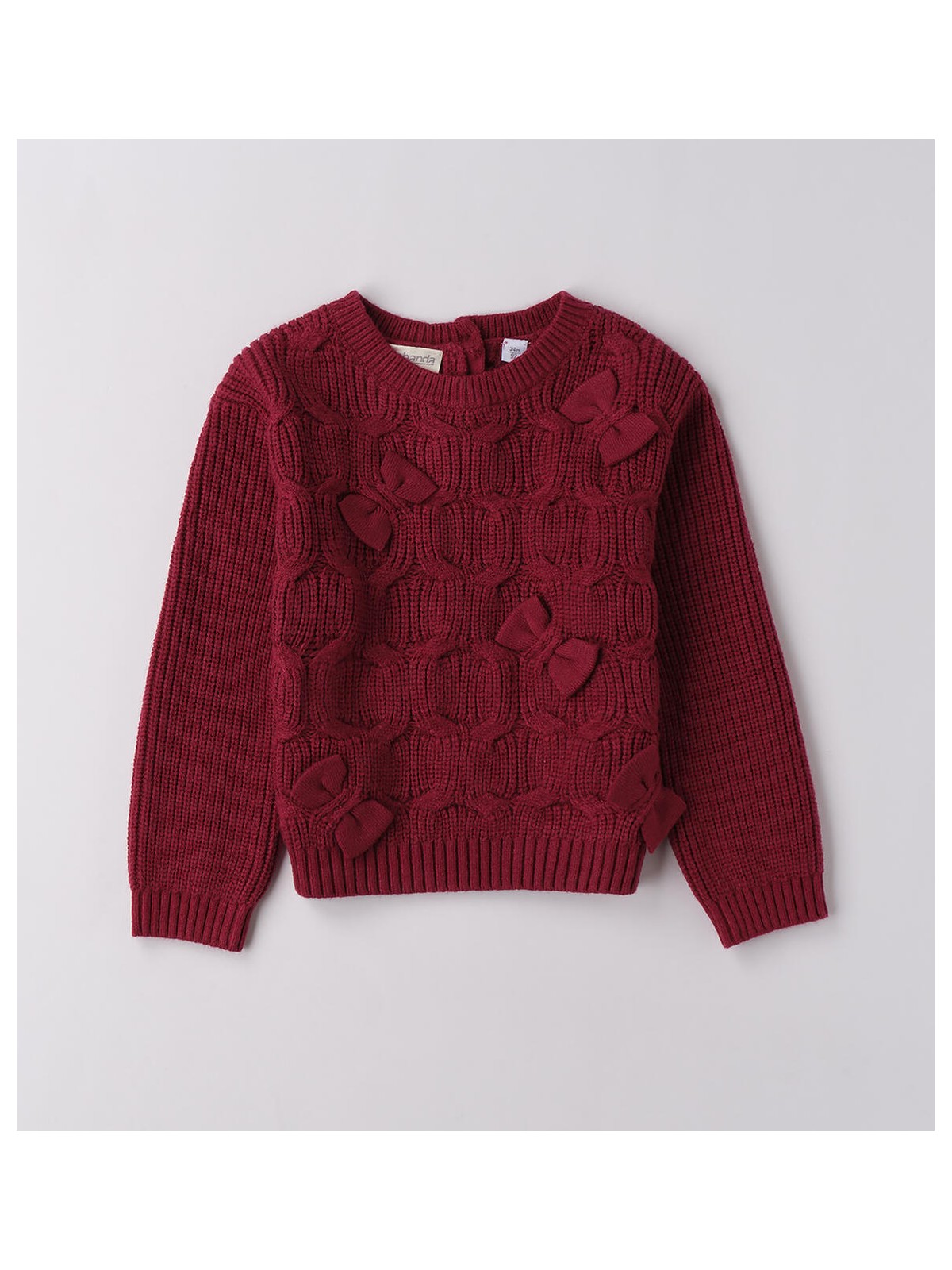 Maglione bambina realizzato in tricot con particolare lavorazione e fiocchi in applicazione