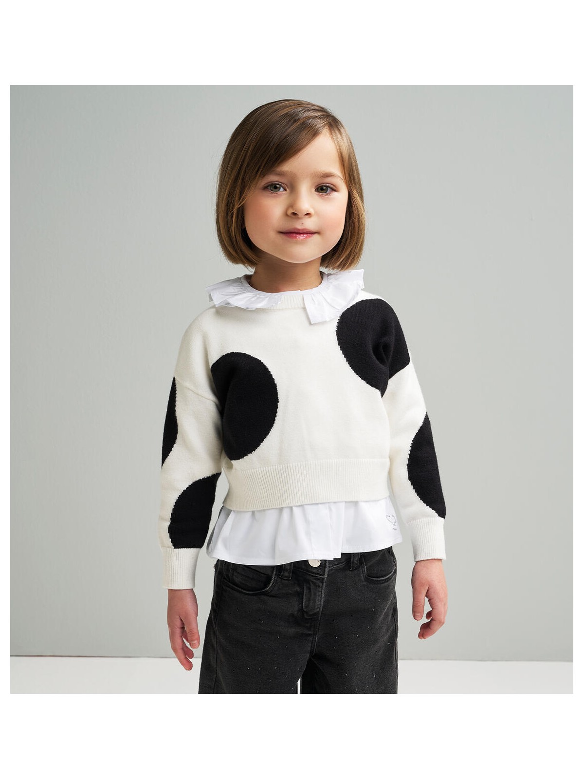 Maglione bambina realizzato in tricot con pois ricamo intarsio