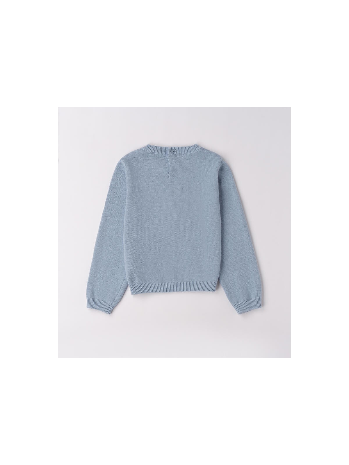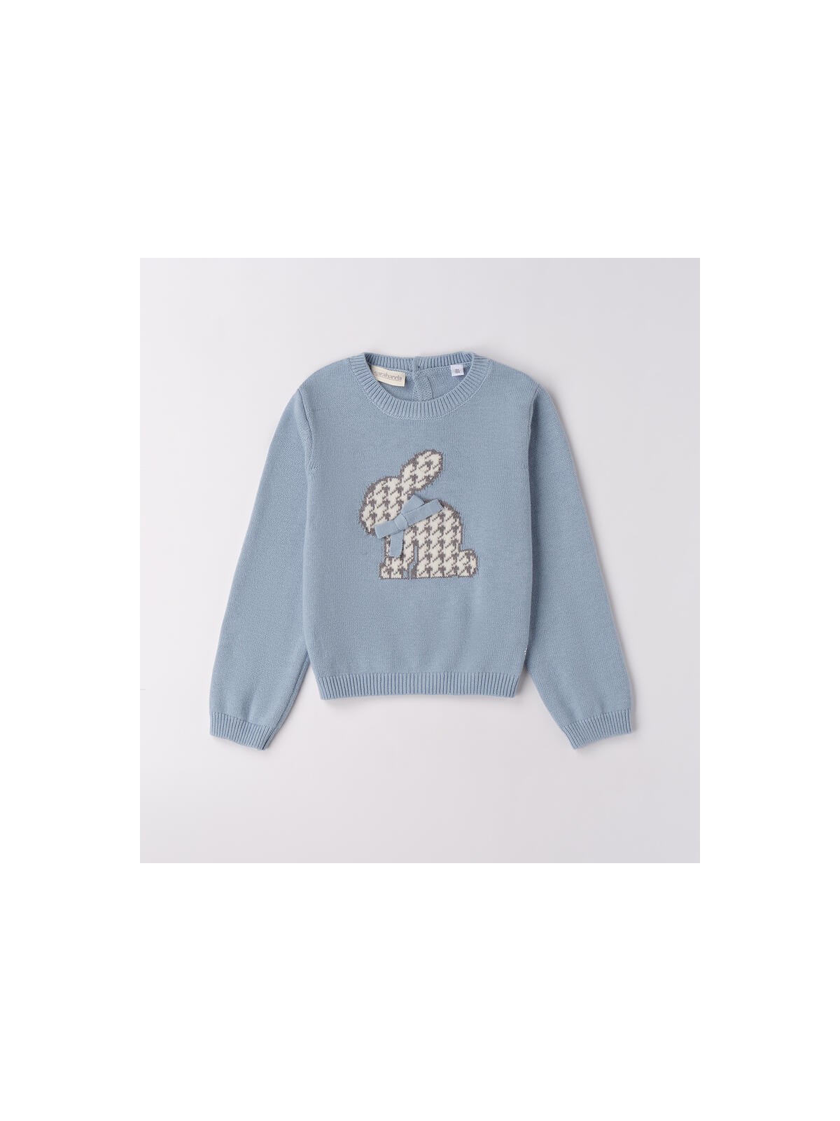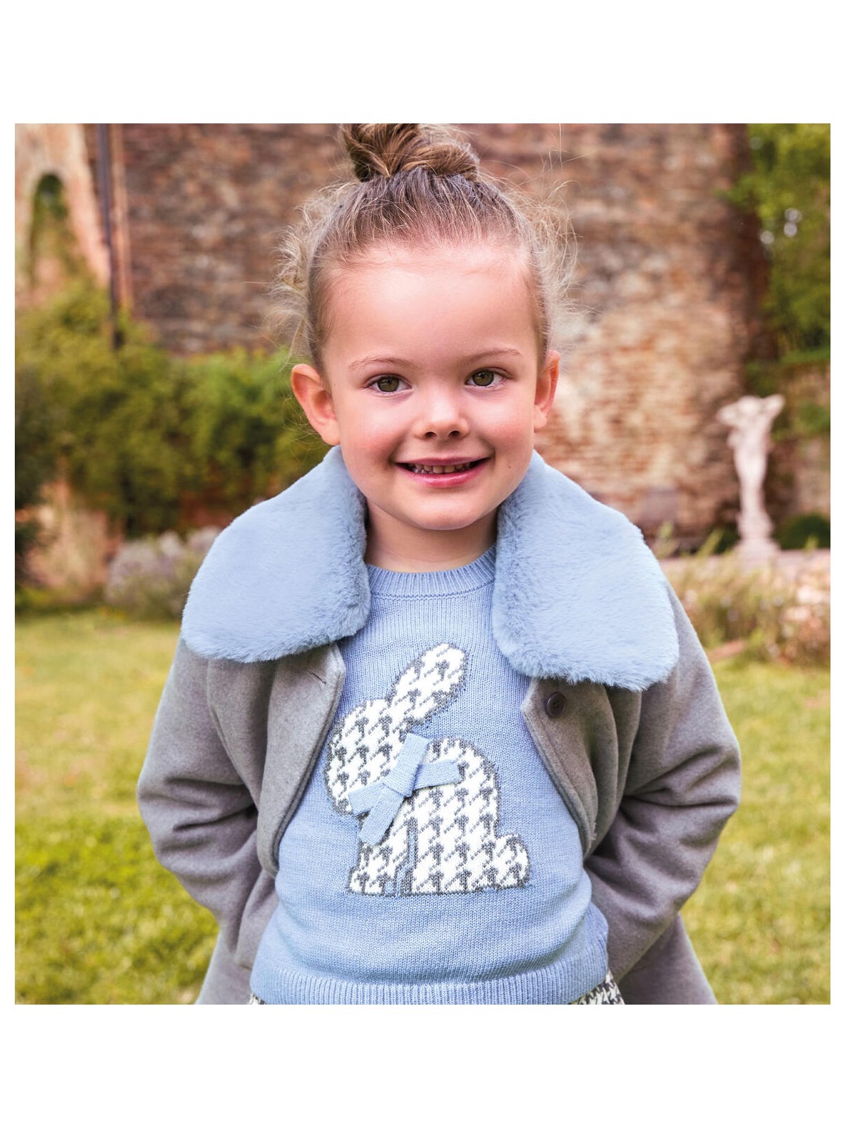 Maglione bambina Sarabanda realizzato in tricot con coniglietto pied de poule e fiocco in applicazione