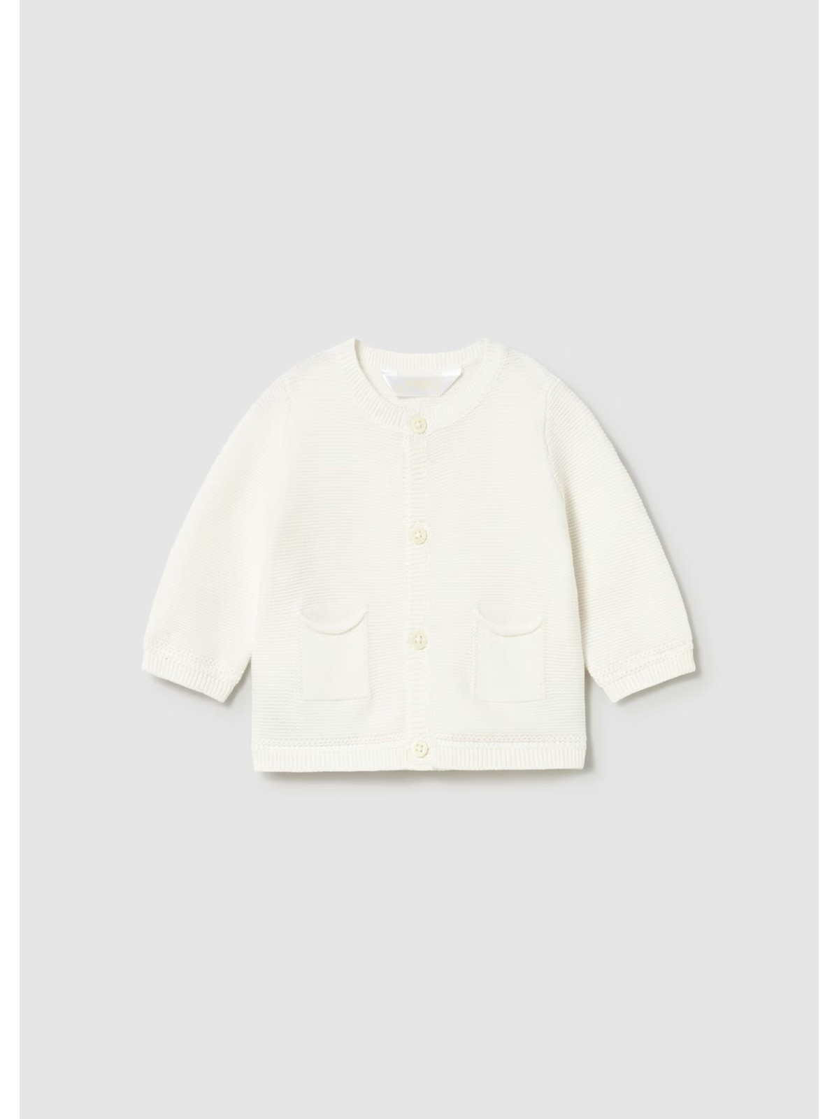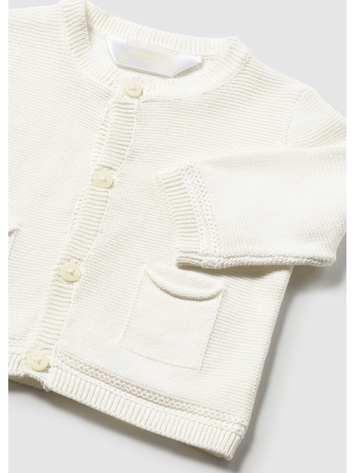Cardigan in filo di cotone neonato, scollo rotondo apertura frontale con bottoni.