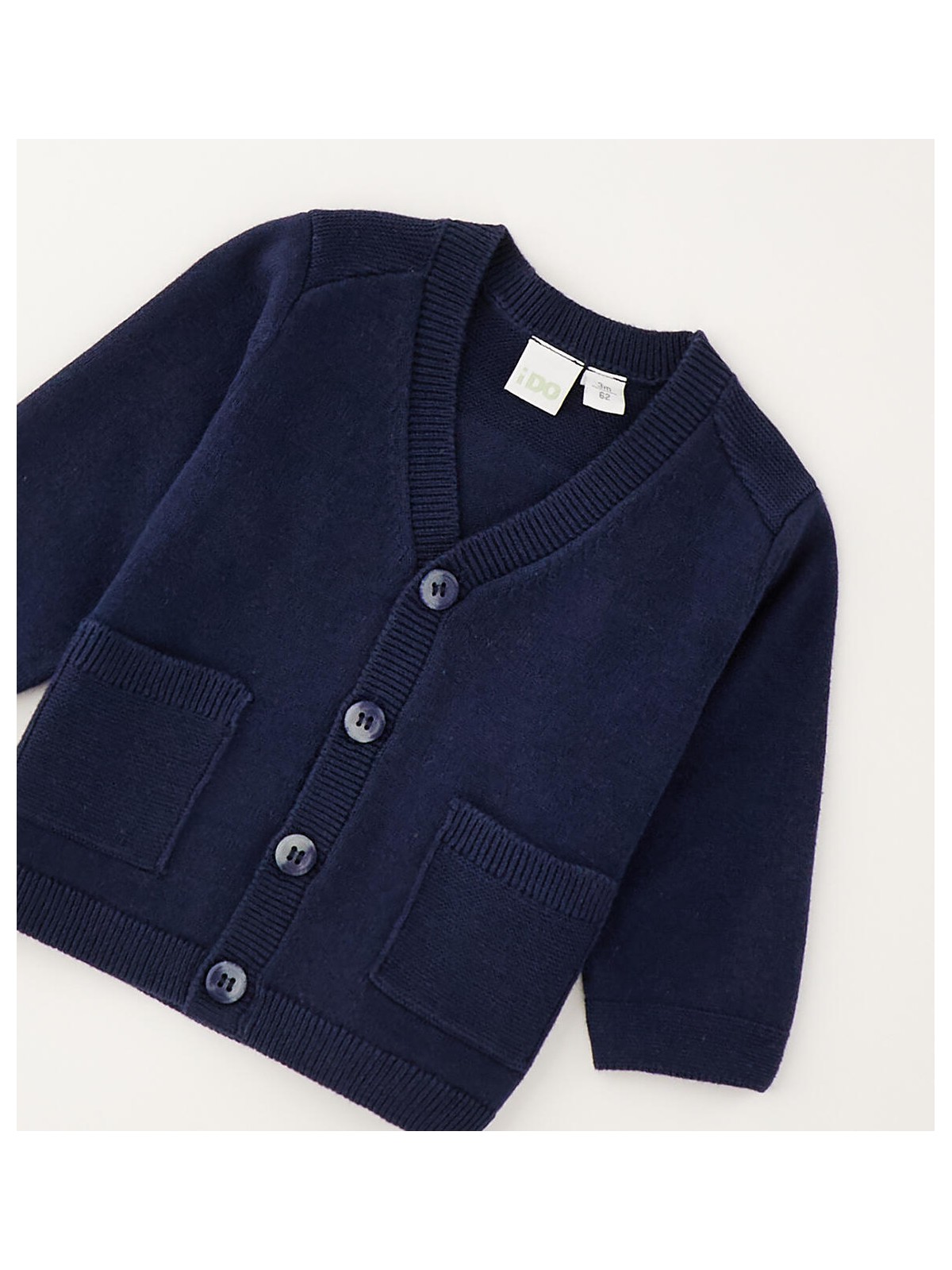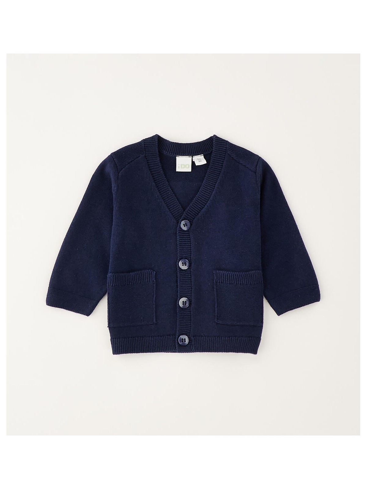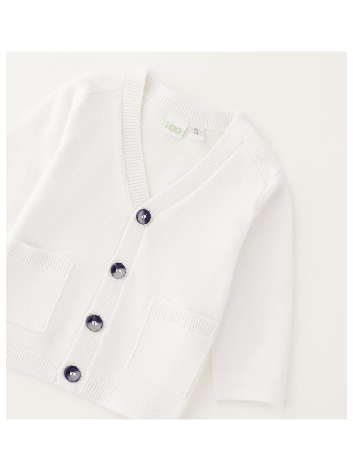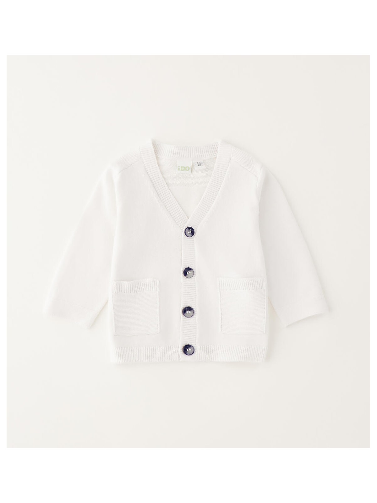Cardigan per bimbo realizzato in tricot leggero 100% cotone. Apertura con bottoni e taschine davanti.