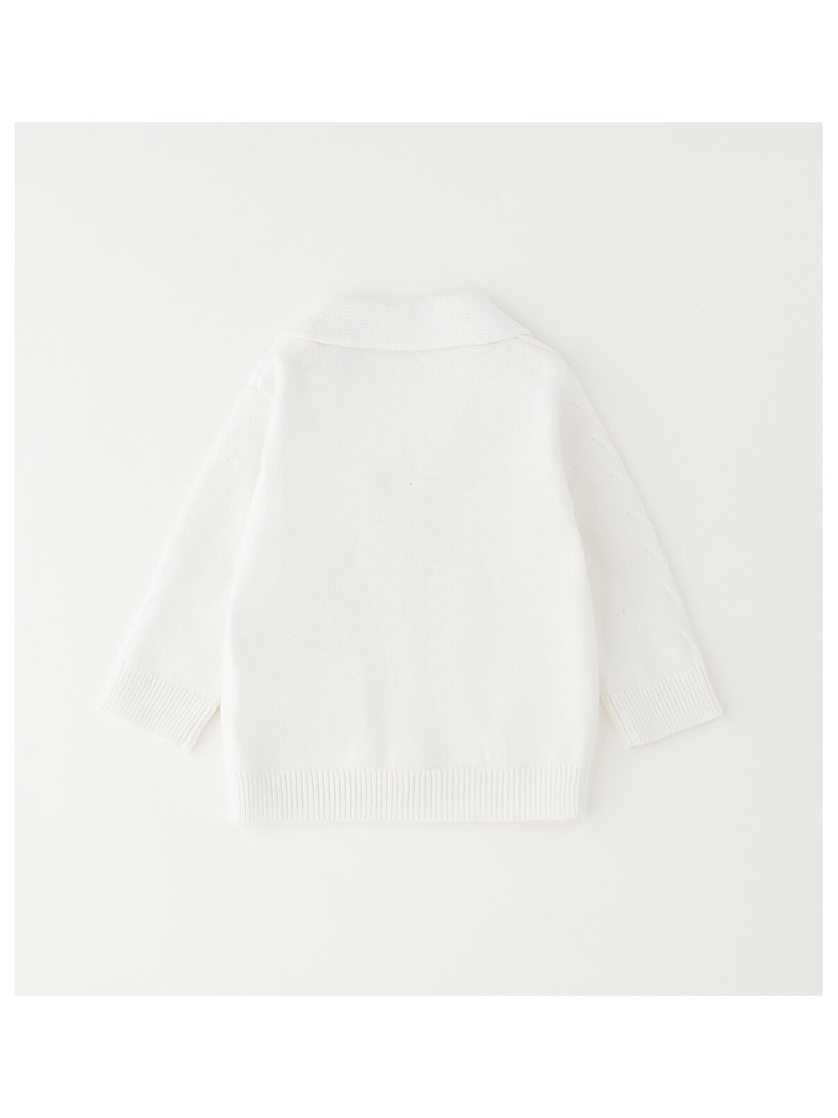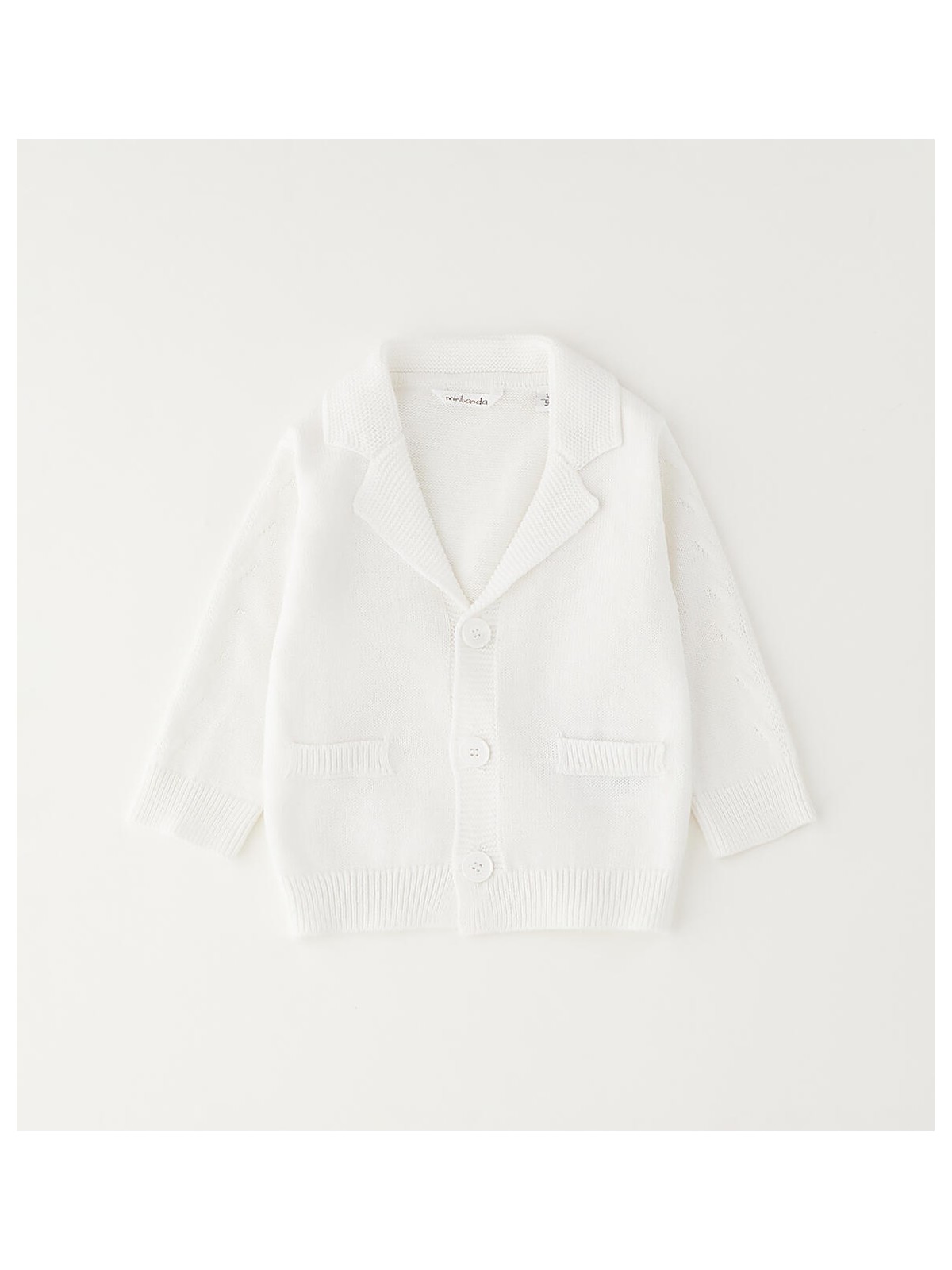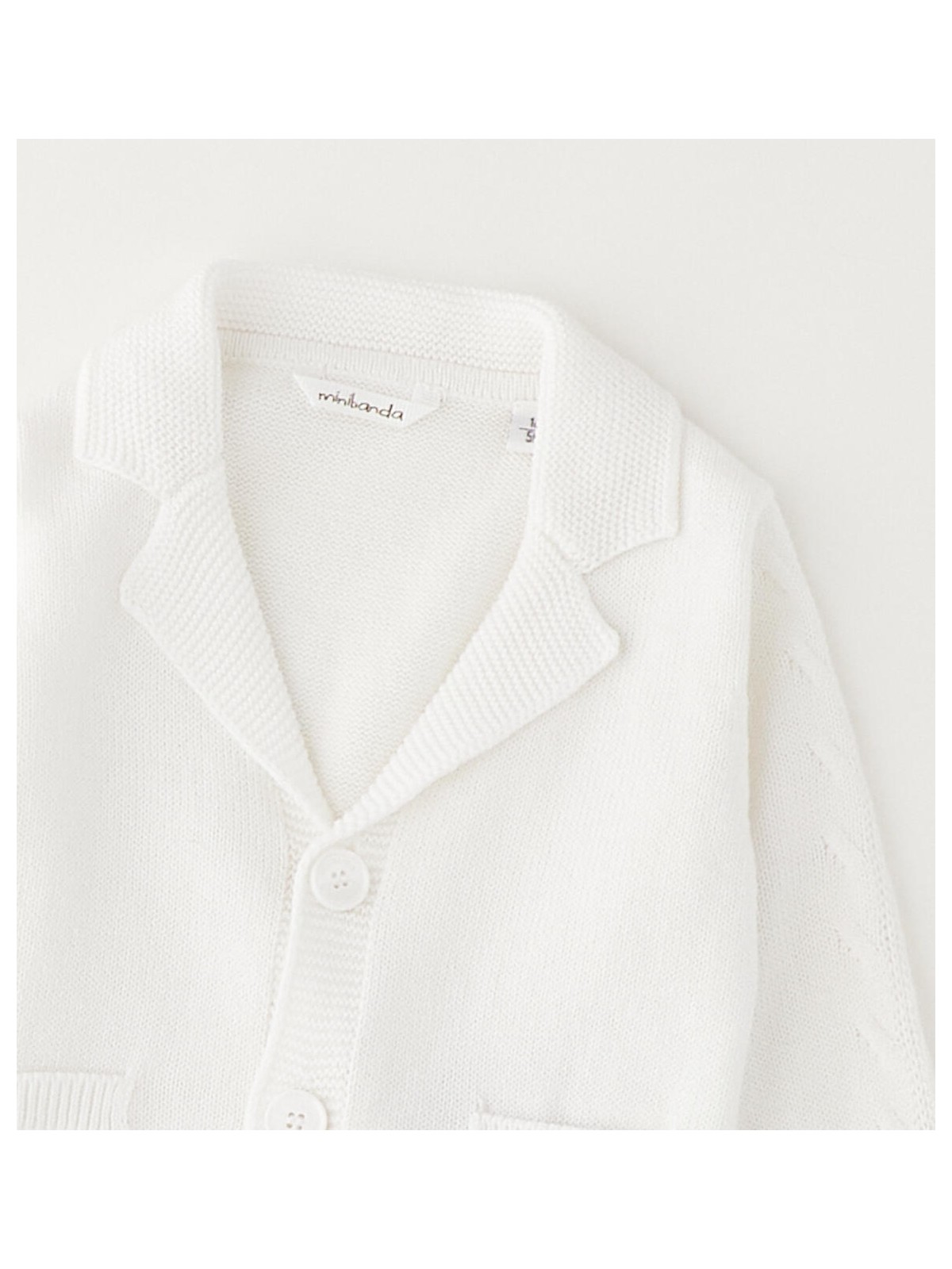 Cardigan per neonato Minibanda realizzato in tricot 100% cotone con colletto a revers, finte tasche e apertura con bottoni.