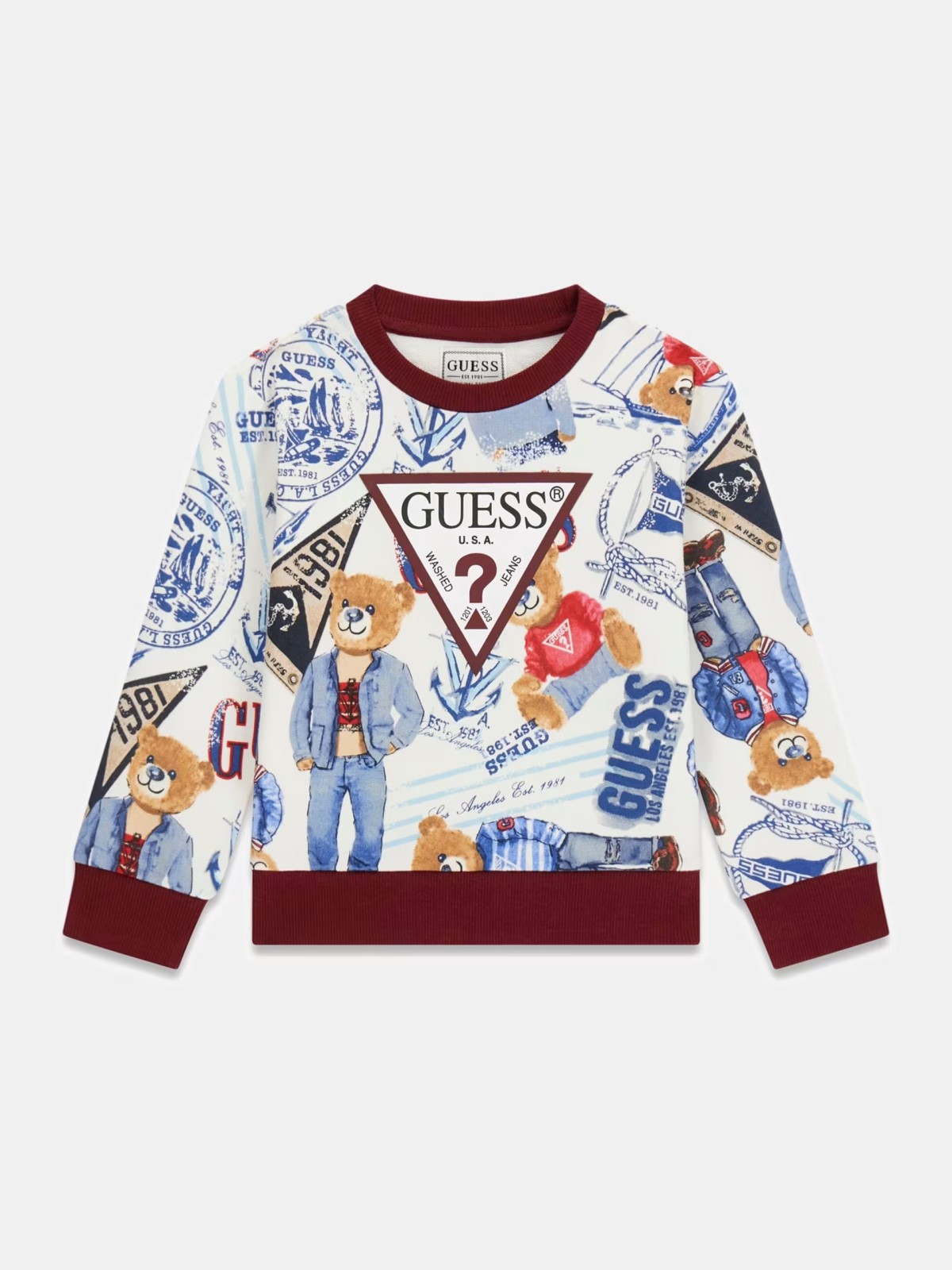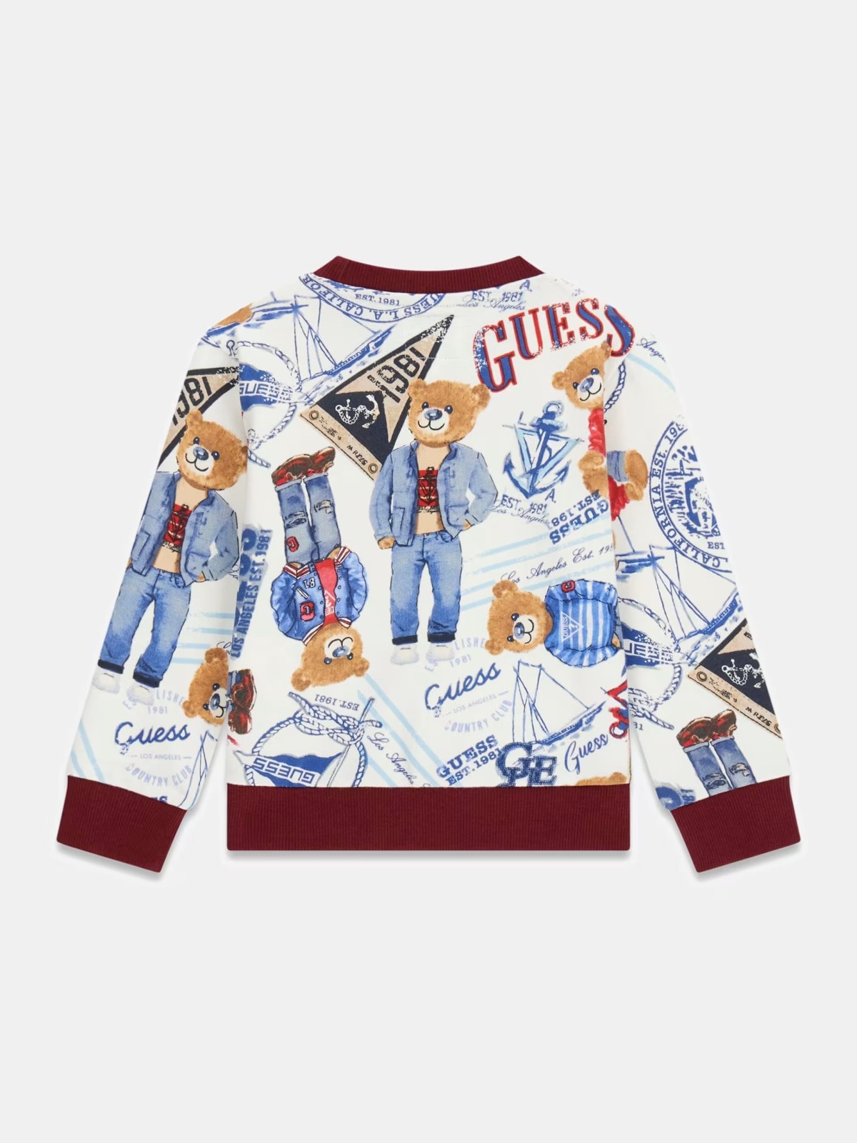 Felpa logo guess , stampa orsetto manica lunga , scollo tondo vestibilità regoular.Apertura con bottoni fino a 3 anni.