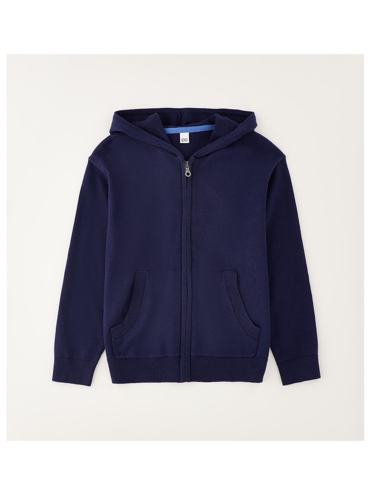 Maglia per ragazzo iDO realizzata in tricot 100% cotone. Modello con cappuccio e apertura con zip. Tasche davanti