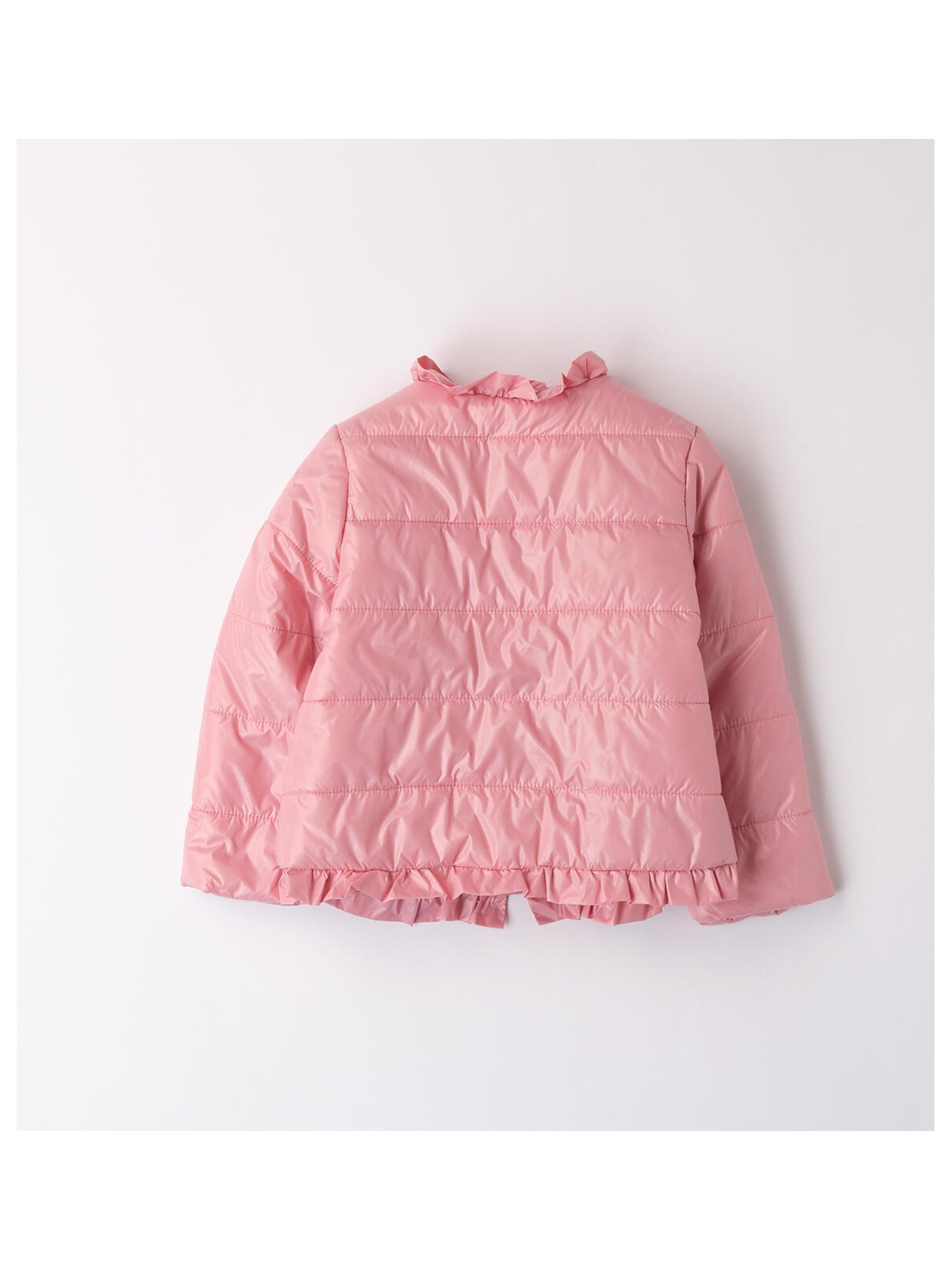 Giubbotto per bimbo iDO realizzato in nylon con imbottitura in ovatta. Il modello è un 100 grammi con apertura frontale con zip. Il giubbotto è realizzato in fantasia tinta unita ed è arricchito da ruches sul fondo. Scopri tutta la selezione d