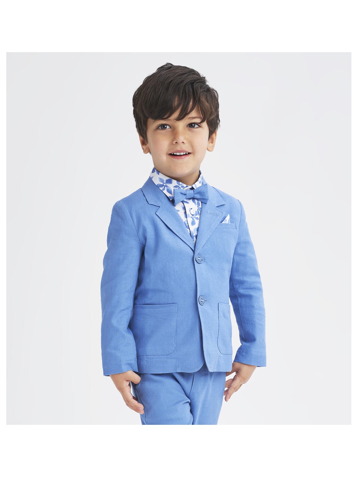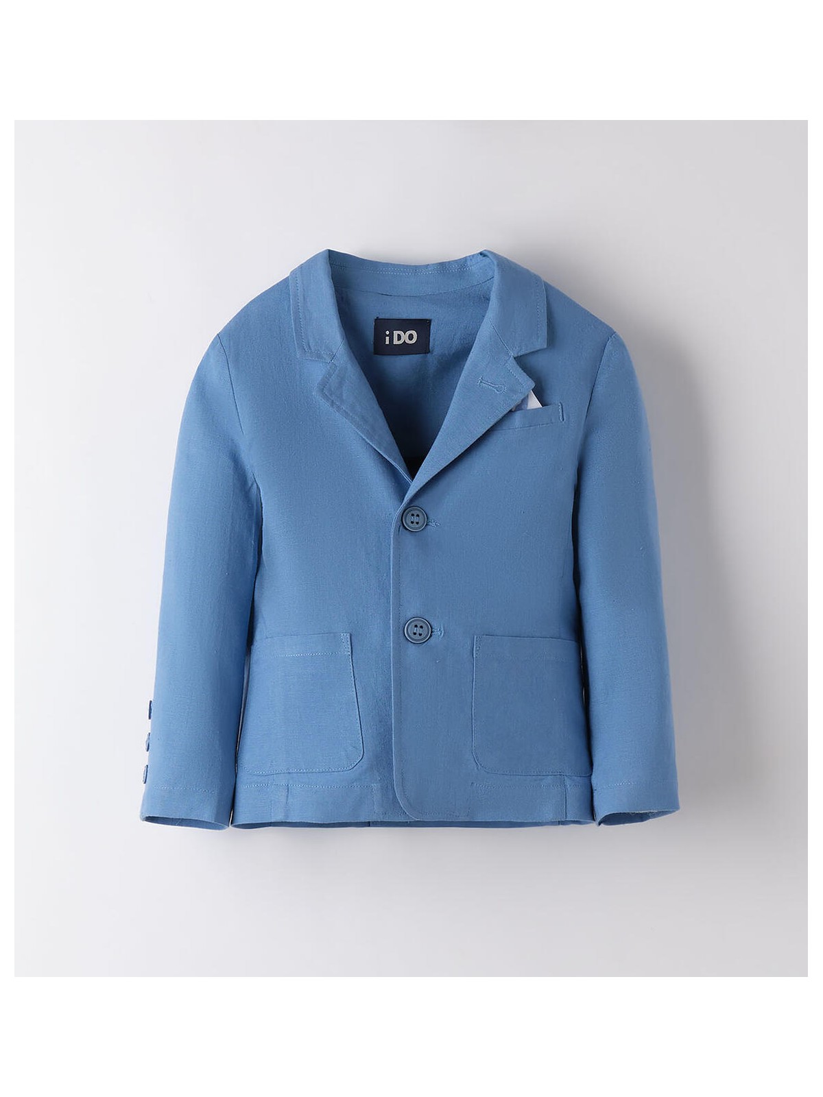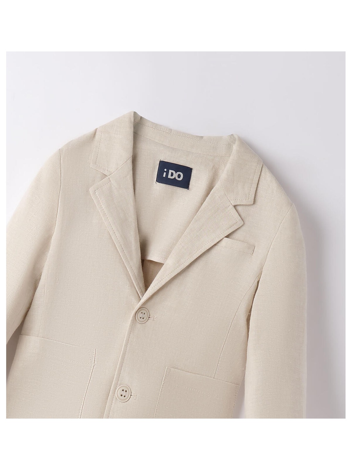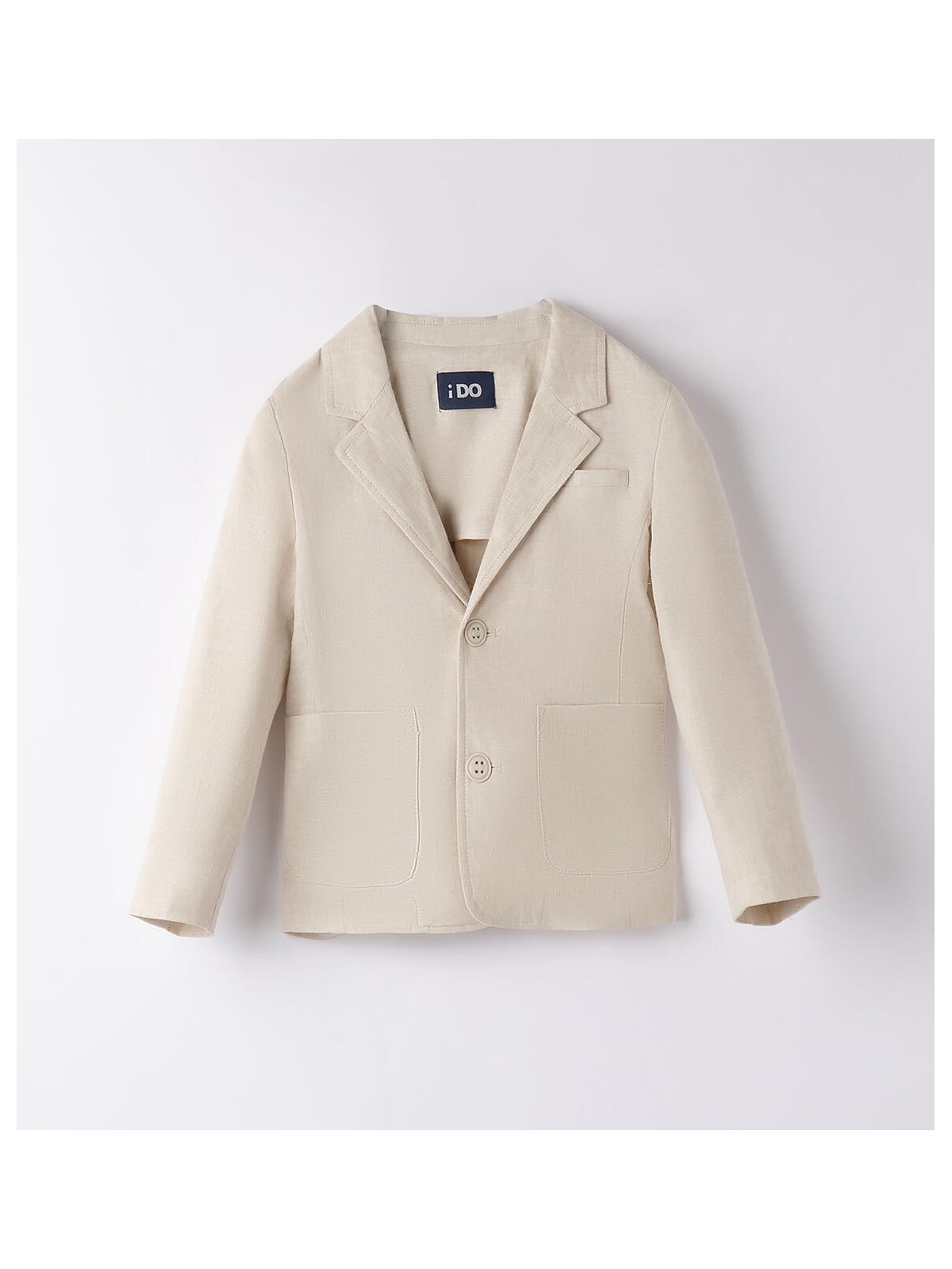 Giacca per bambino iDO realizzata in lino e viscosa. Modello con tasche, apertura frontale con bottoni e taschino