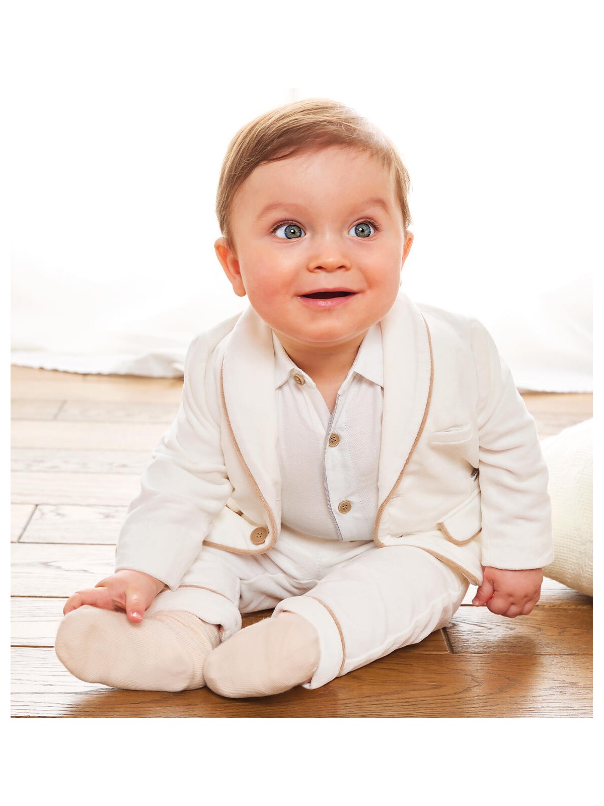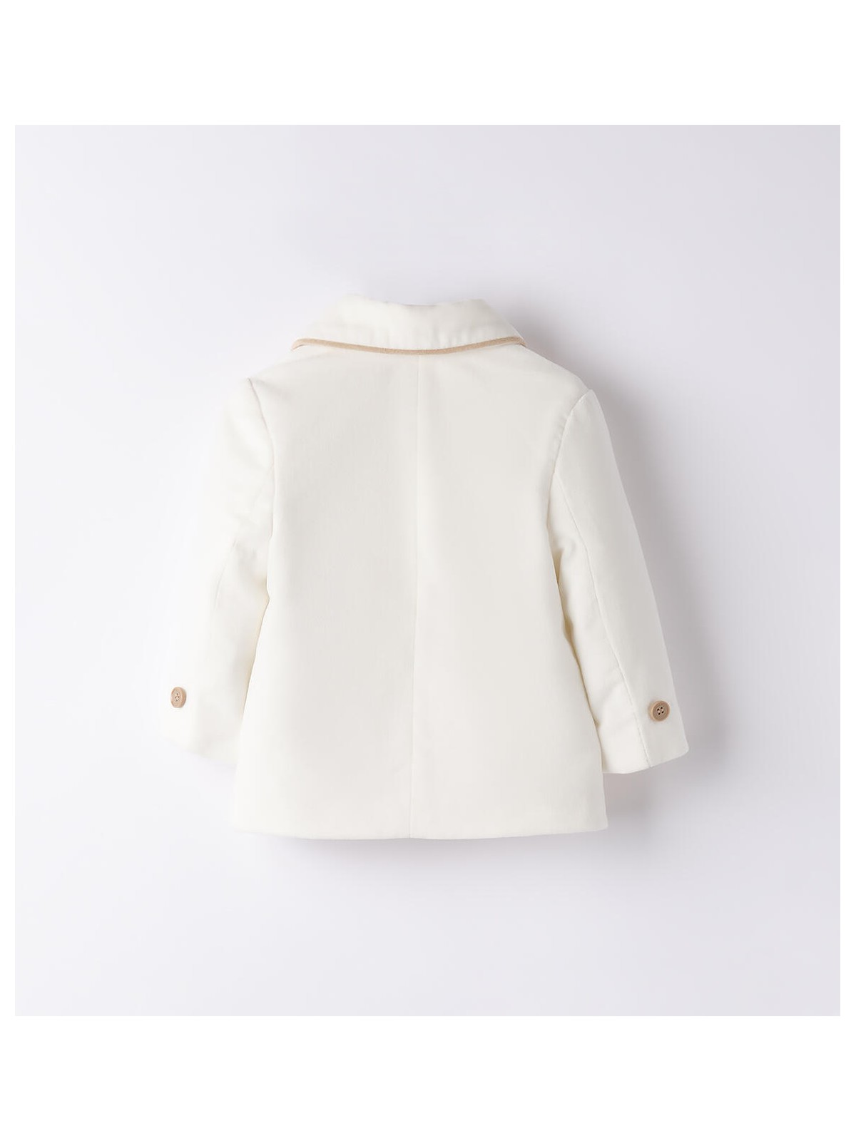 Giacca elegante per bimbo in velluto liscio . Il modello presenta apertura frontale con bottoni e tasche. Fodera interna con stampa orsetti.