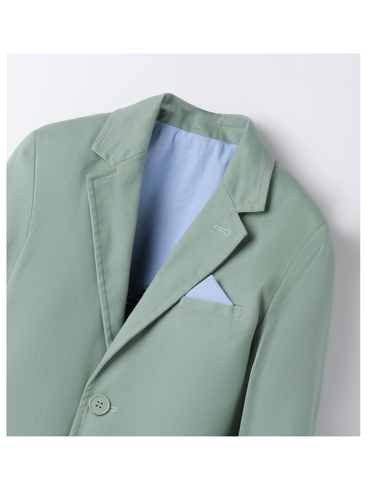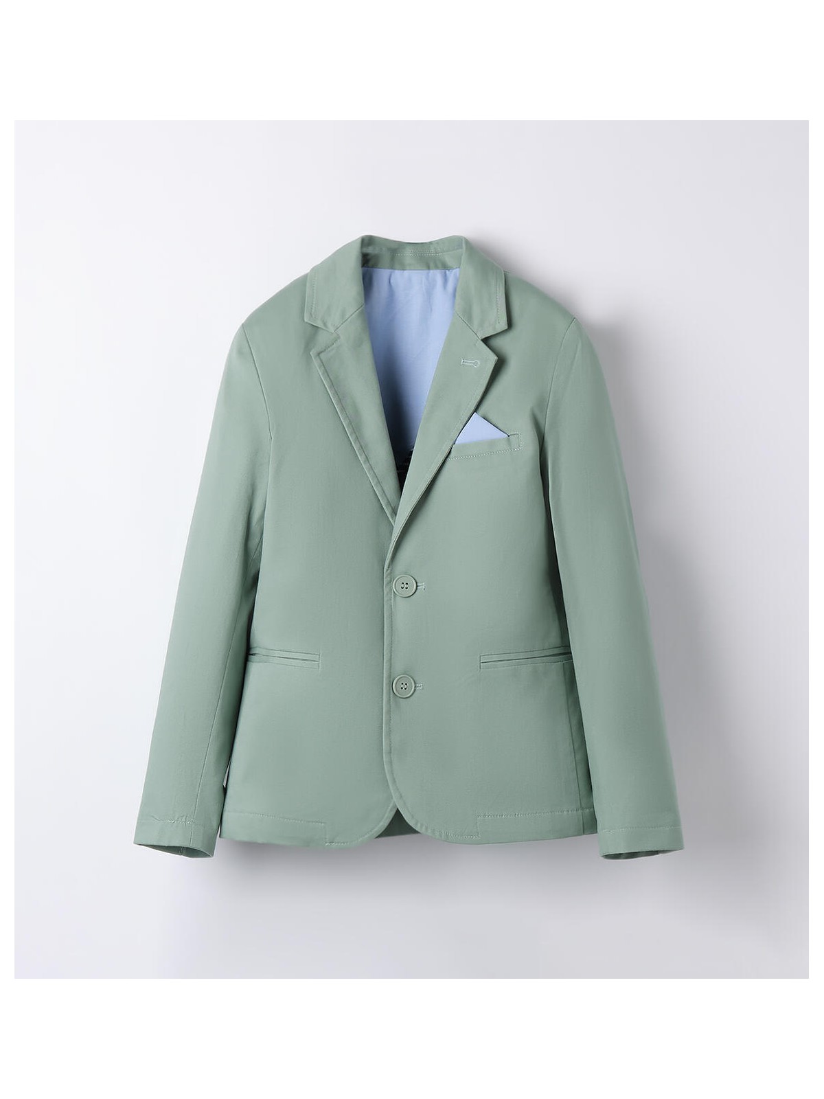 Giacca elegante bambino in twill stretch. Il modello presenta apertura frontale con bottoni, tasche a filetto .