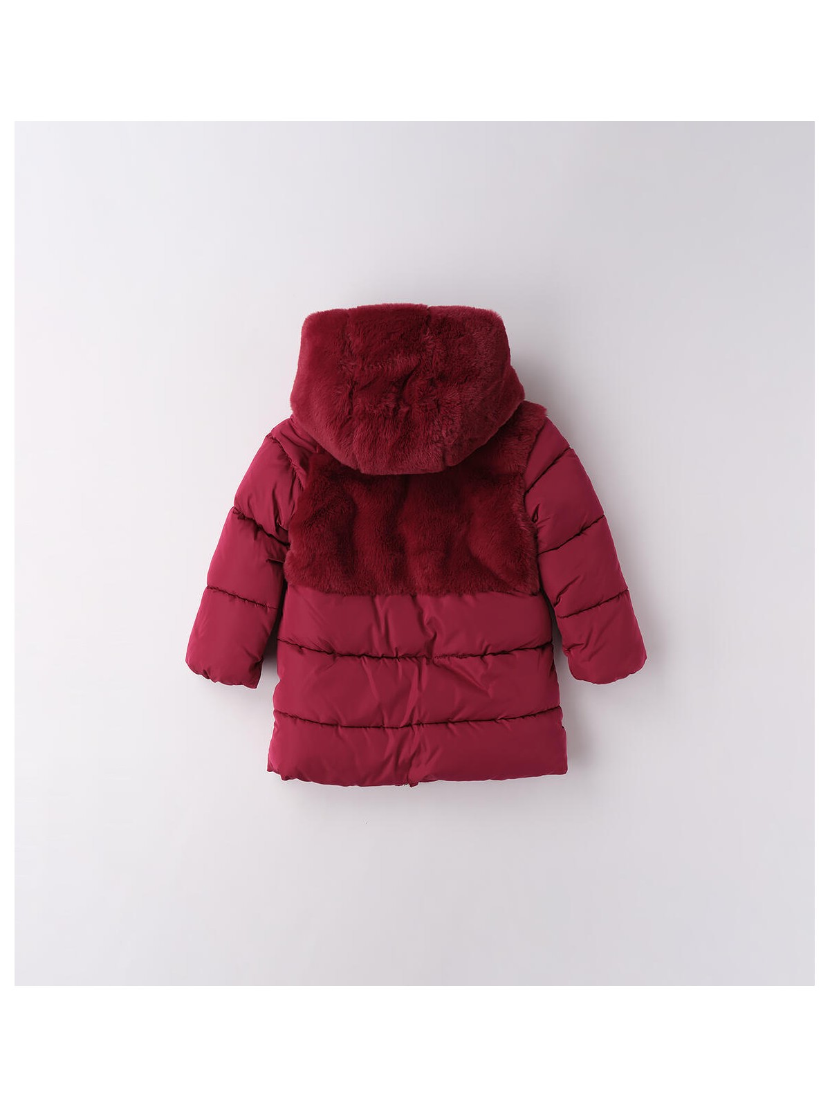 Giubbotto bambina realizzato con imbottitura in ovatta e fodera in caldo tessuto. Modello con cappuccio e apertura con zip con doppio cursore. Il prodotto non contiene materiali di derivazione animale