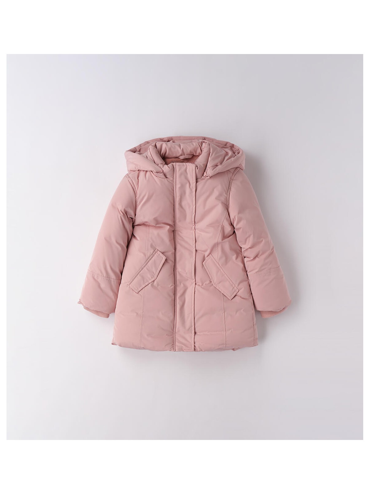 Giubbotto per bambina realizzato in taffetà con imbottitura in ovatta. Corpo foderato in caldo e morbido tessuto. Cappuccio staccabile. Apertura con bottoni e zip con doppio cursore. Polsino interno antivento realizzato in costina. Lunghezza al ginocchio. Zero piuma: 100% senza piuma d'oca. Zero freddo: protegge dall'acqua, dal freddo e dal vento. Zero stress: cura e manutenzione semplice