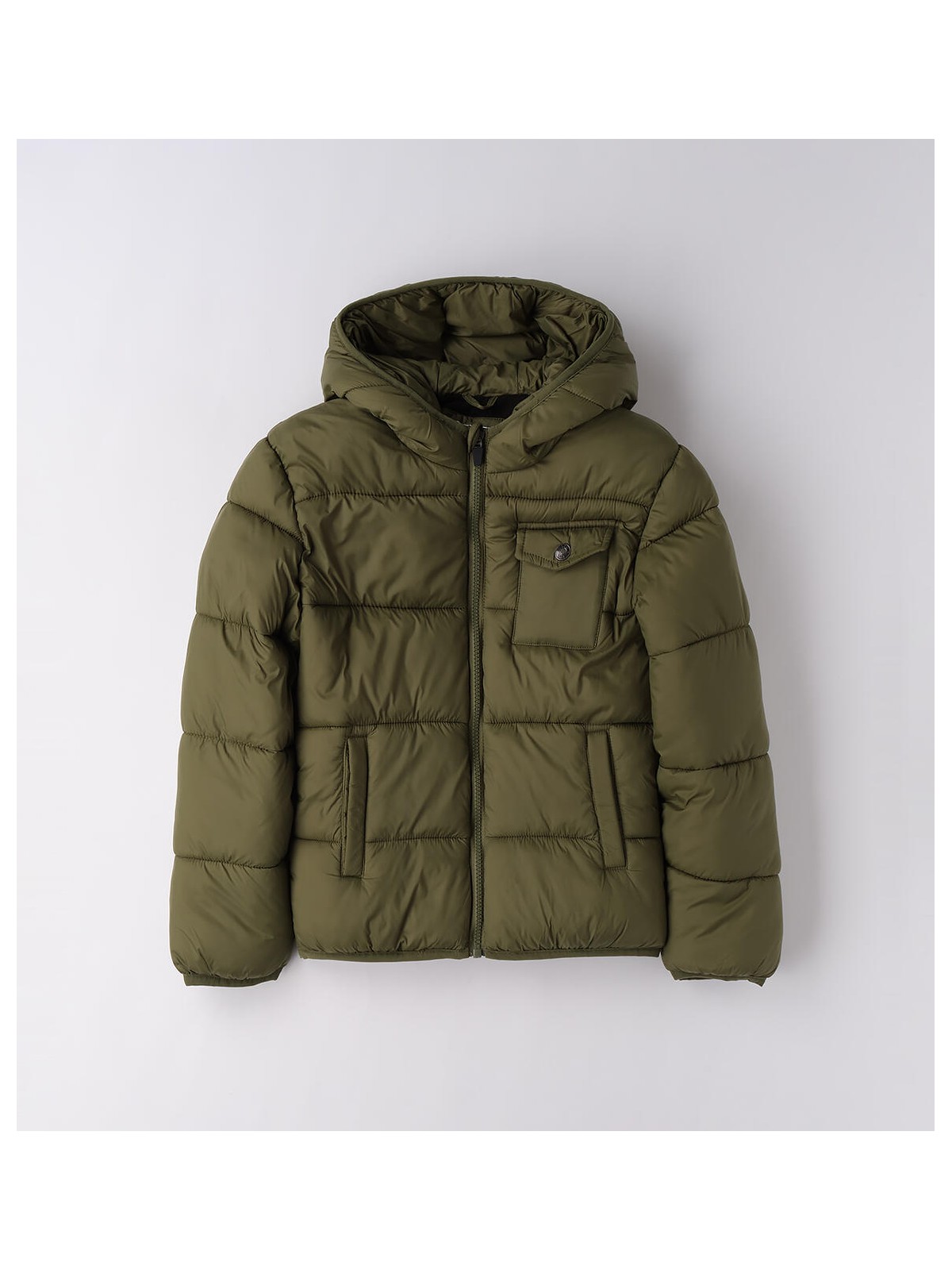 Giubbotto per ragazzo realizzato in nylon imbottito in ovatta. Il modello presenta apertura frontale con zip, cappuccio e taschino. Corpo foderato in pile. Lunghezza fianchi. Zero piuma: 100% senza piuma d'oca. Zero freddo: protegge dall'acqua, dal freddo e dal vento. Zero stress: cura e manutenzione semplice