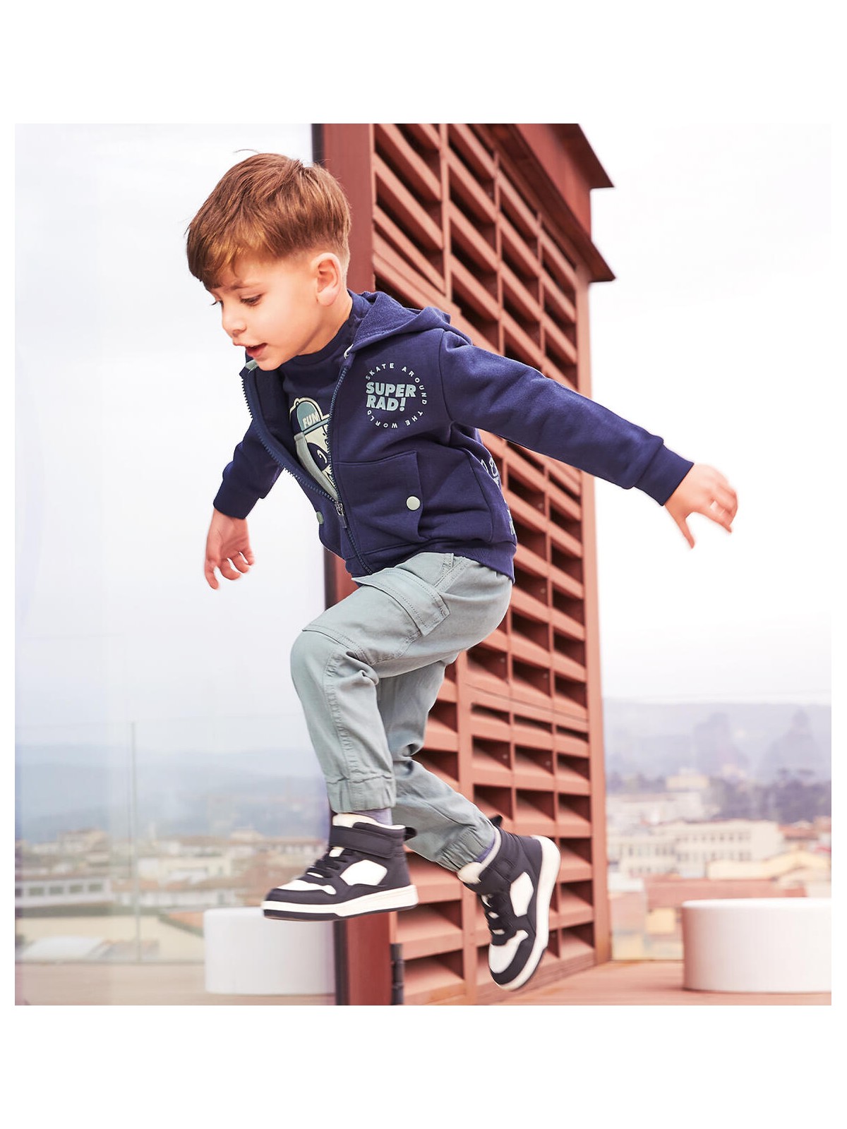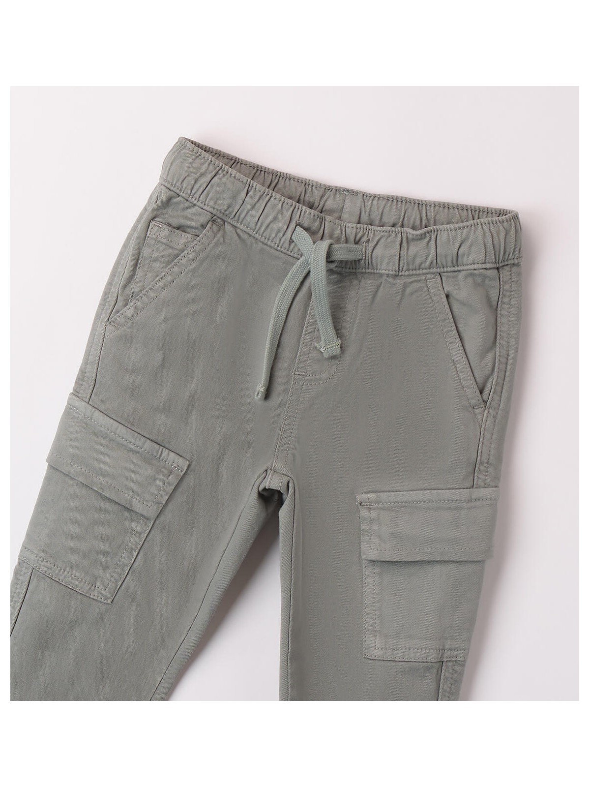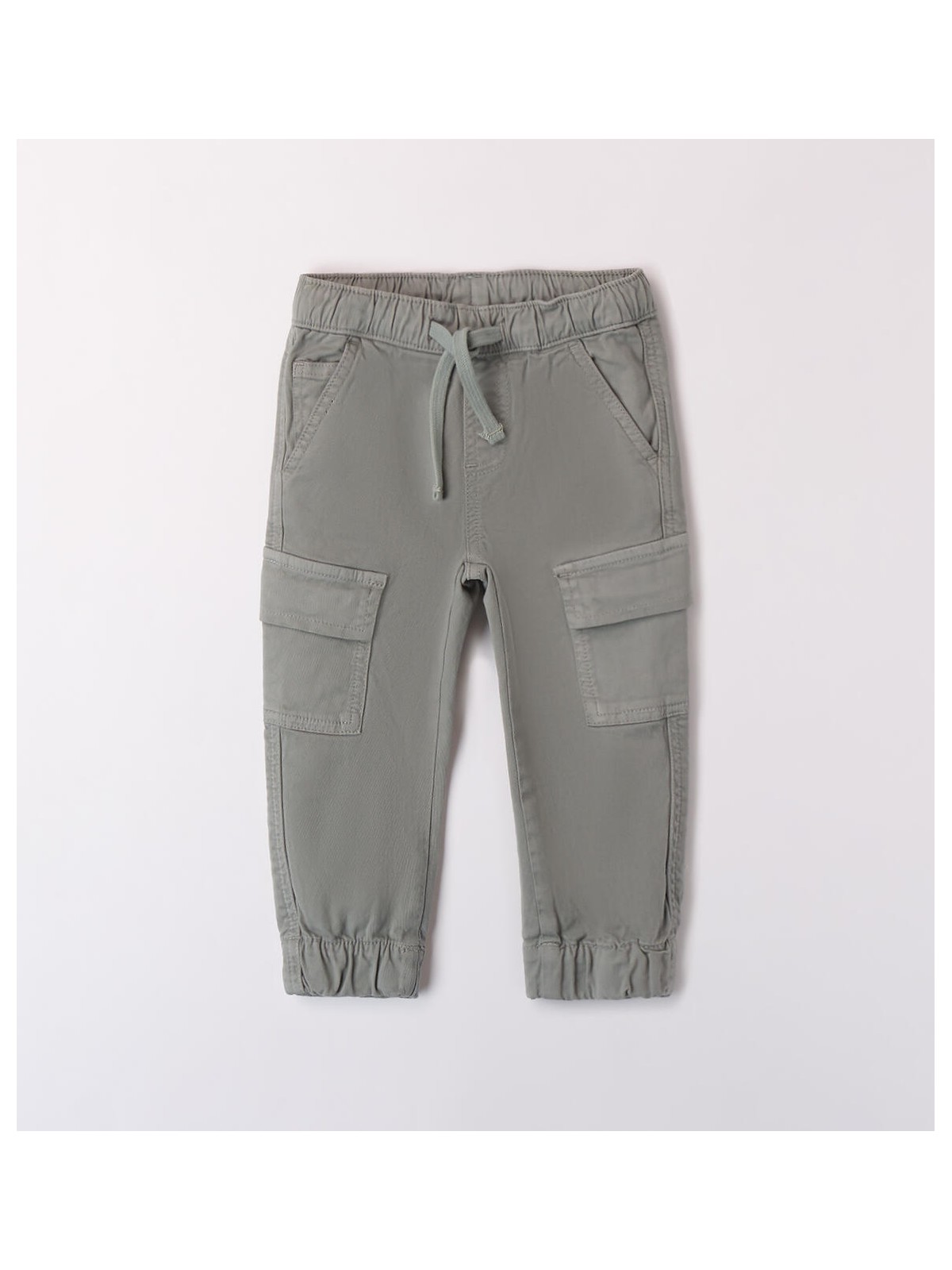 Pantaloni bambino 9 mesi - 8 anni realizzati in twill di cotone stretch, mano pesca. Il modello ha vita elasticizzata con coulisse tono su tono, tasconi laterali e polsini elasticizzati sul fondo. Pantalone in fantasia tinta unita. Vestibilità regular