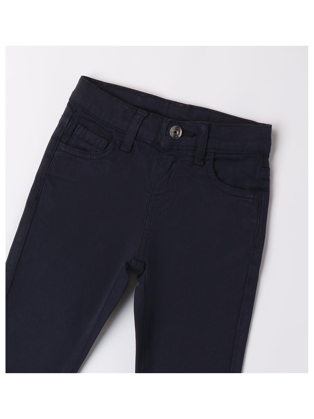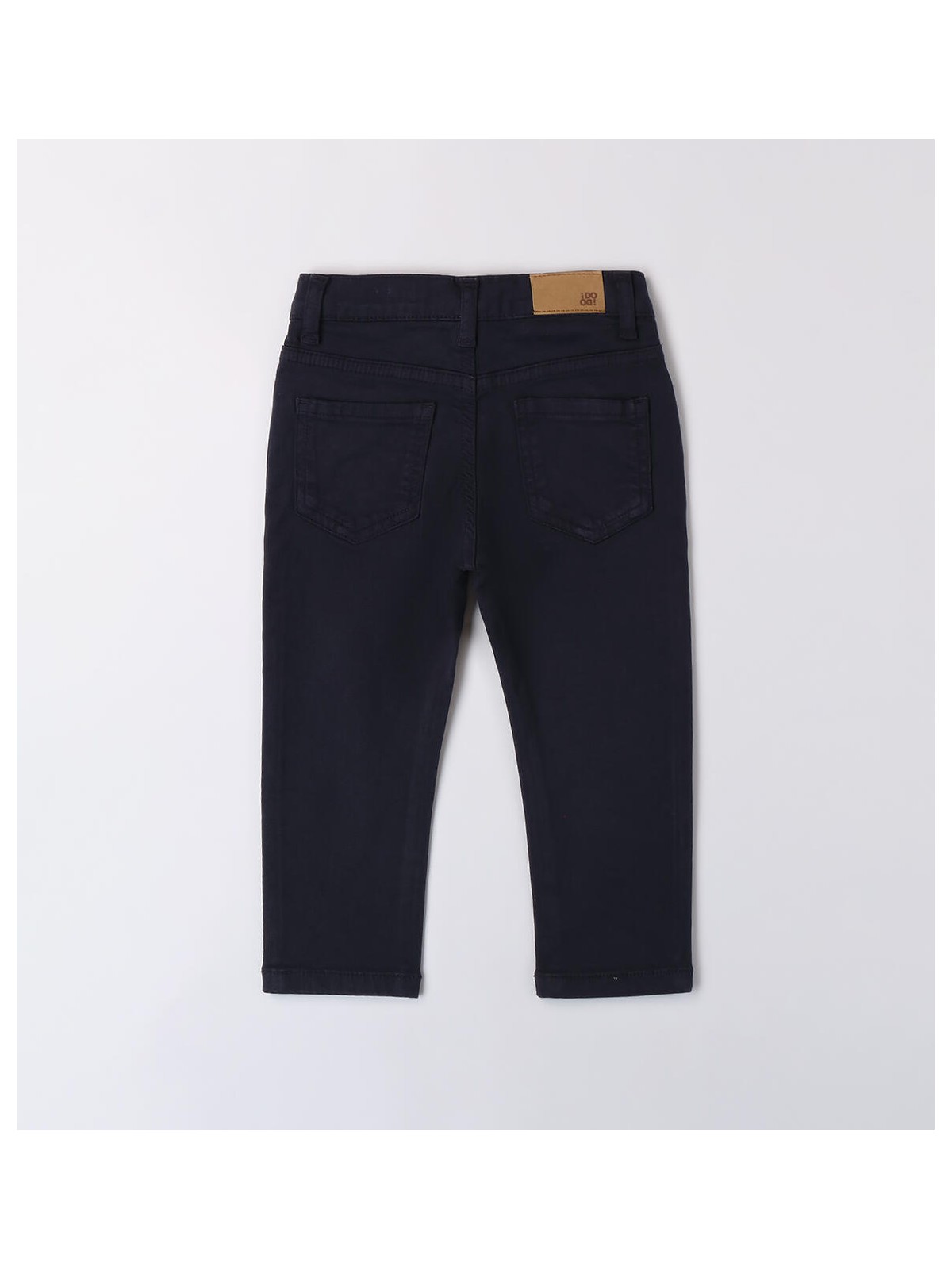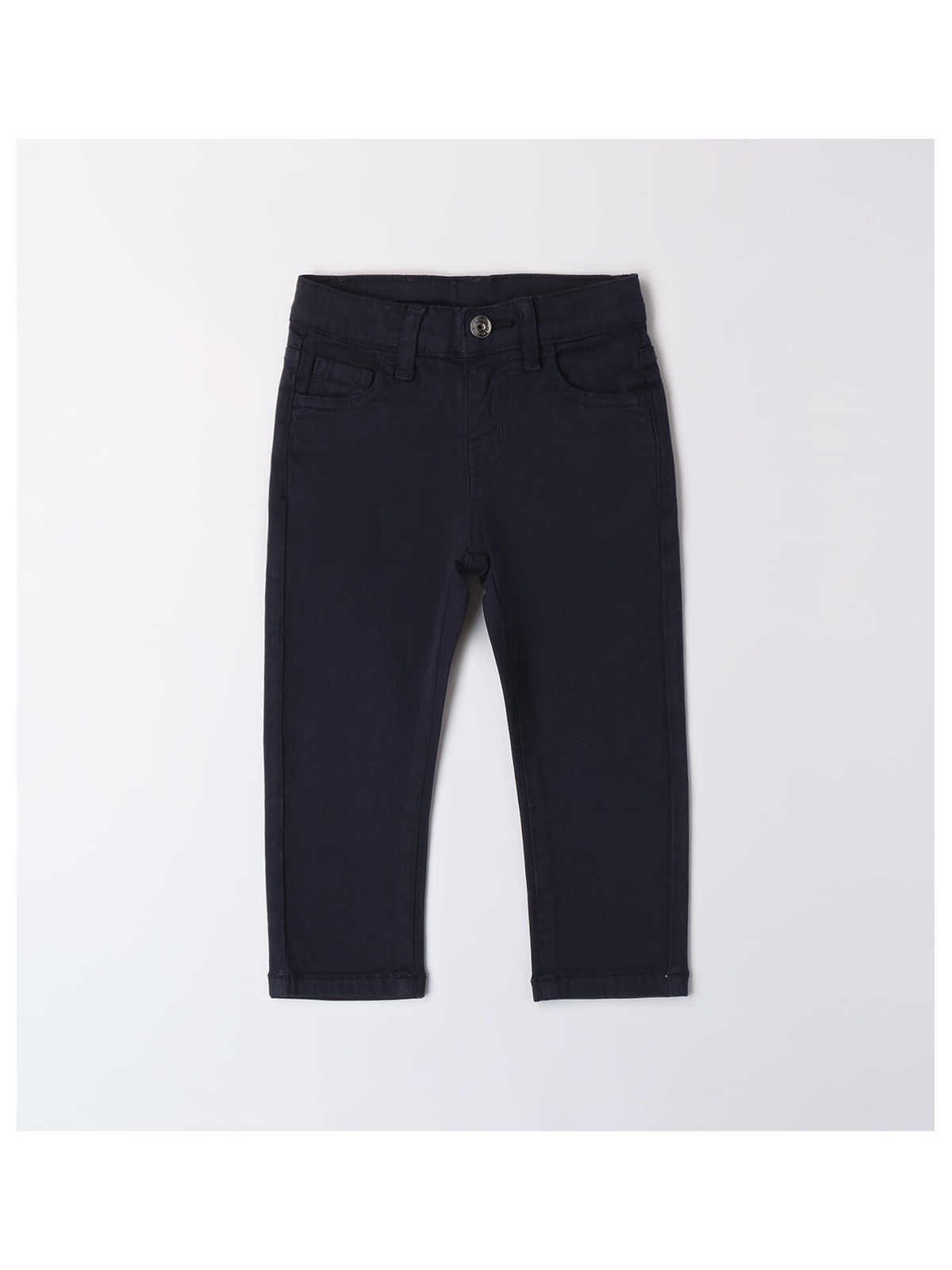 Pantaloni bambino 9 mesi - 8 anni realizzati in twill mano pesca di cotone stretch. Il modello presenta apertura con bottone e tasche. Vestibilità regular. Vita regolabile con elastico asolato interno.