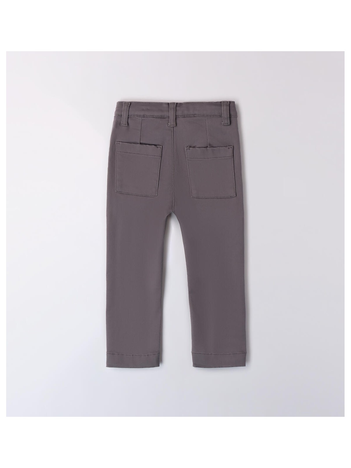 Pantaloni bambino 9mesi - 8anni realizzati in sateen. Il modello presenta apertura con bottone e zip, tasche ed è in fantasia tinta unita. Vestibilità regular. Vita regolabile con elastico asolato interno.