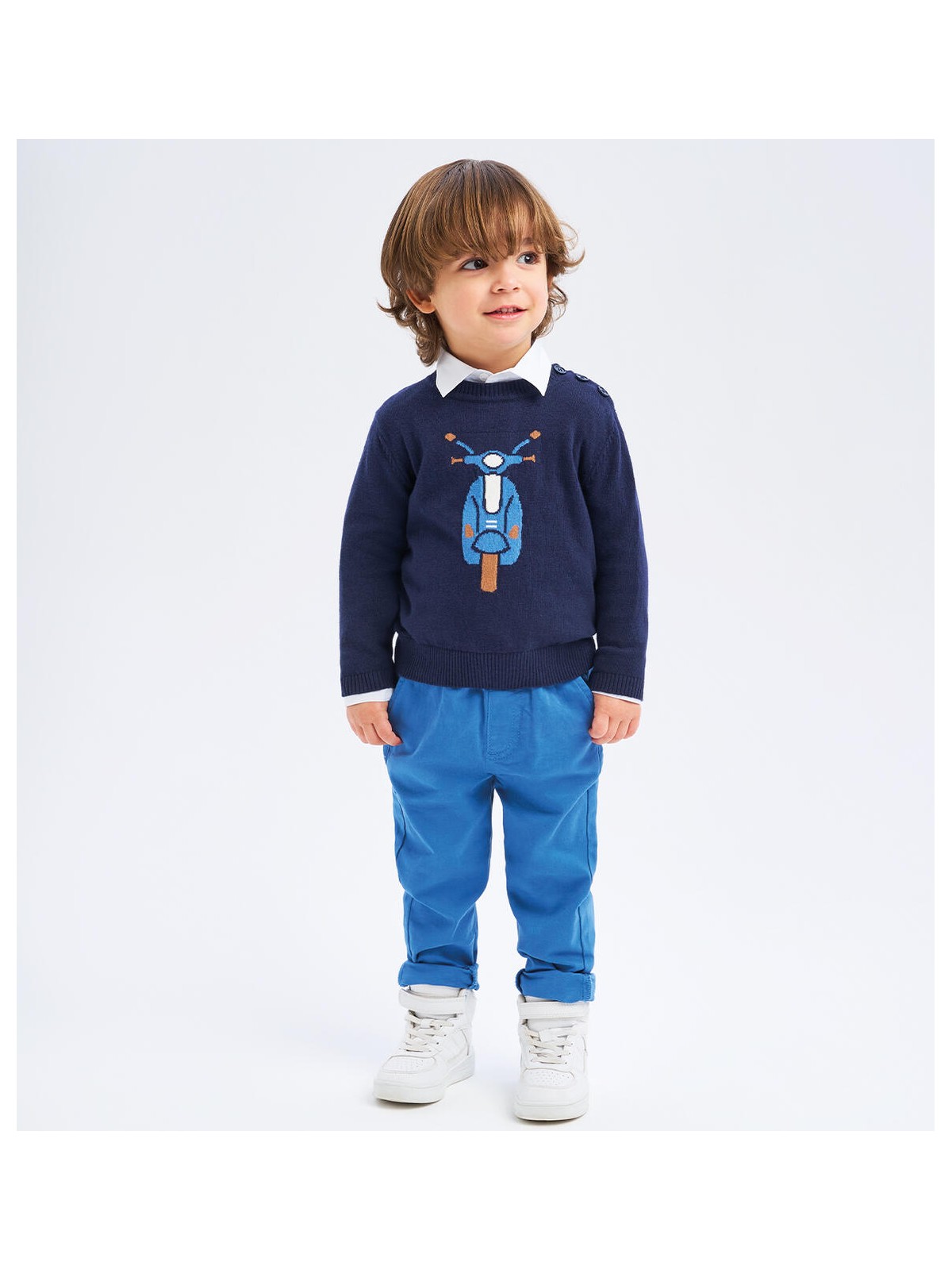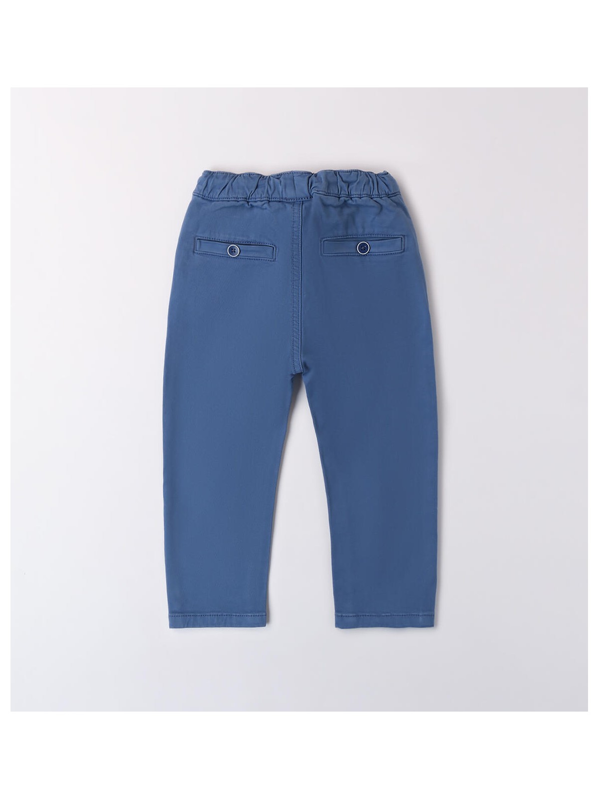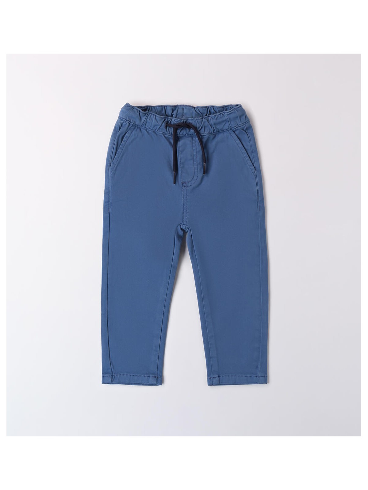 Pantalone da bambino Sarabanda 9 mesi - 8 anni realizzato in twill. Il modello ha vita elasticizzata con coulisse, tasche e fantasia tinta unita. Vestibilità loose fit.