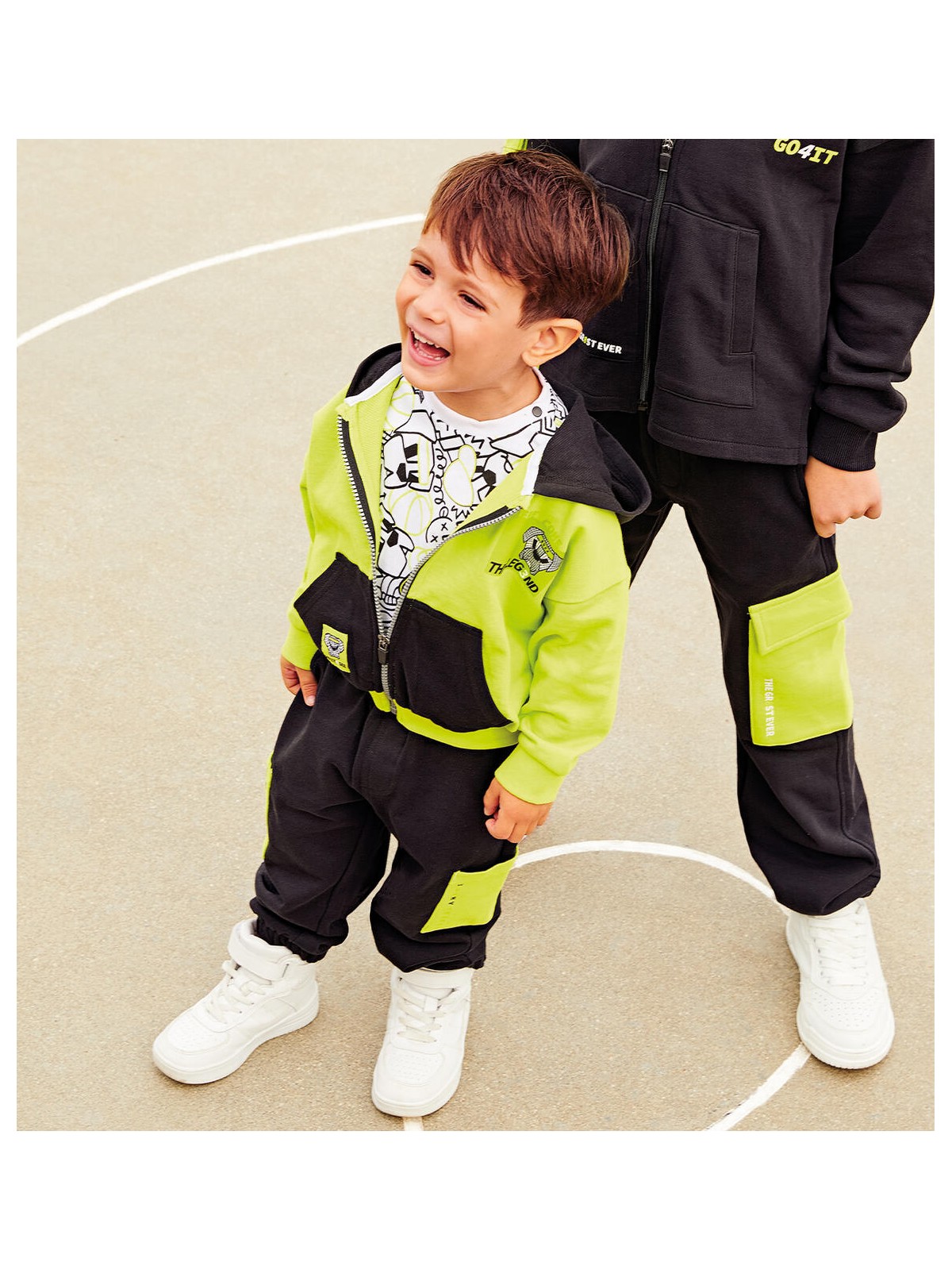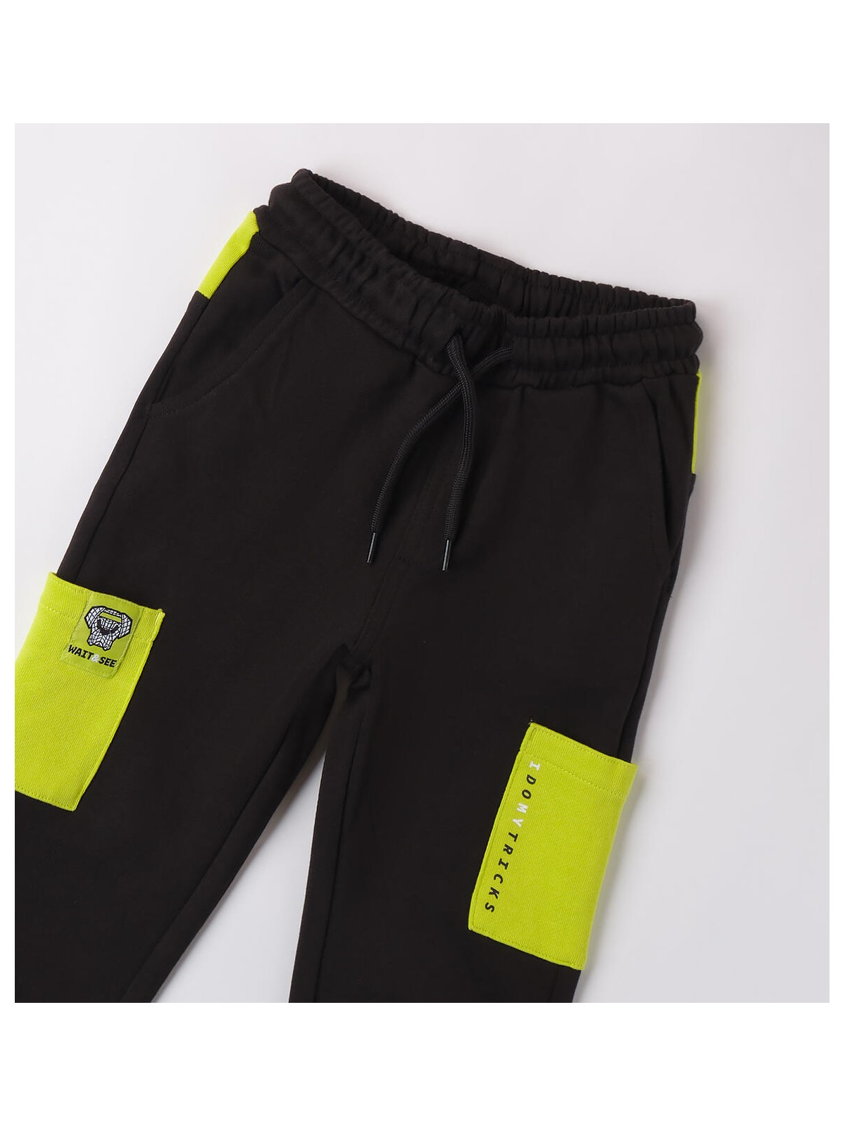 Pantaloni tuta per bambino iDO da 9 mesi a 8 anni realizzati in felpa 100% cotone. Il modello presenta vita elasticizzata con coulisse, tasche laterali e fantasia tinta unita con dettagli a contrasto. Oversize fit