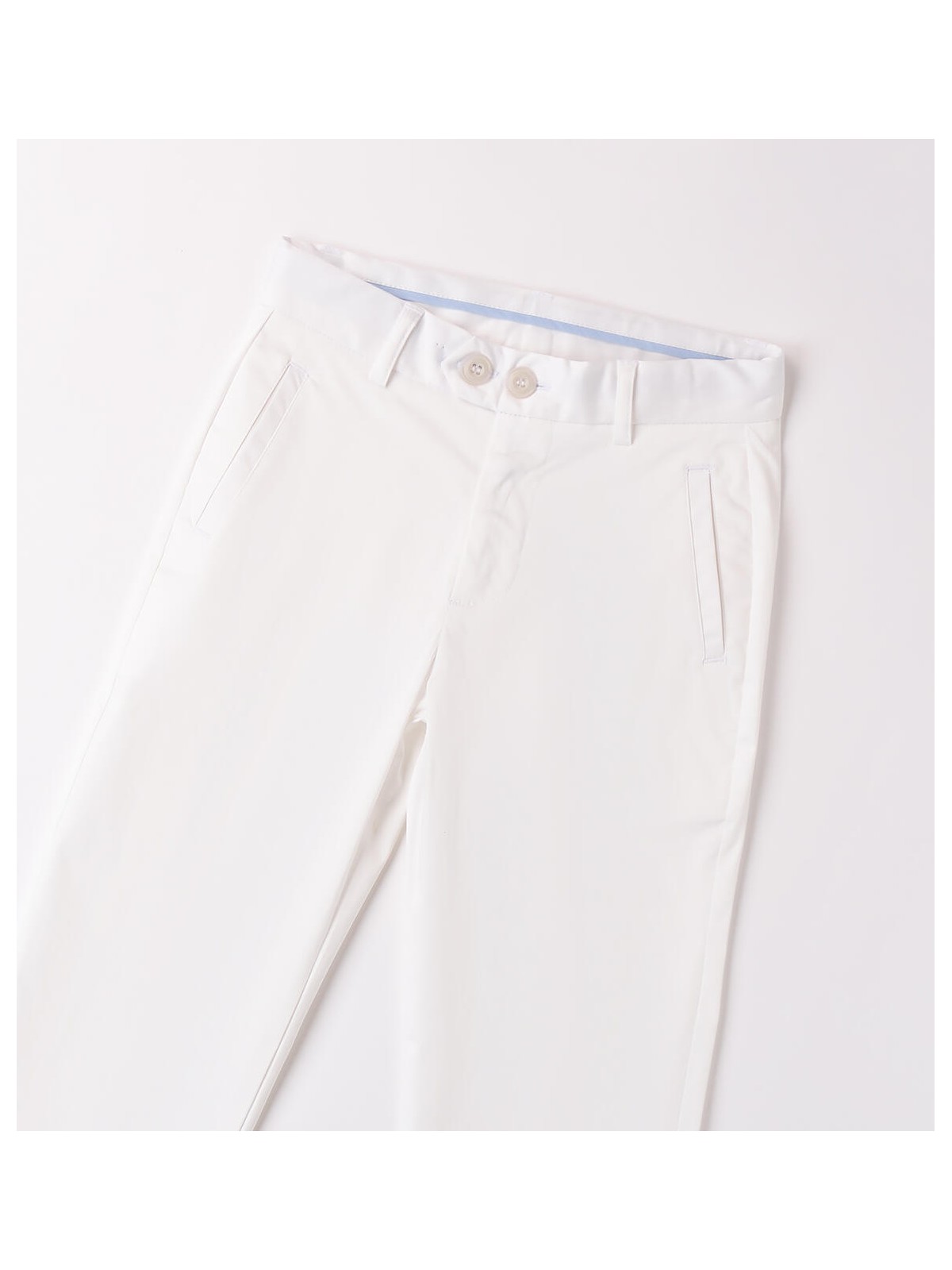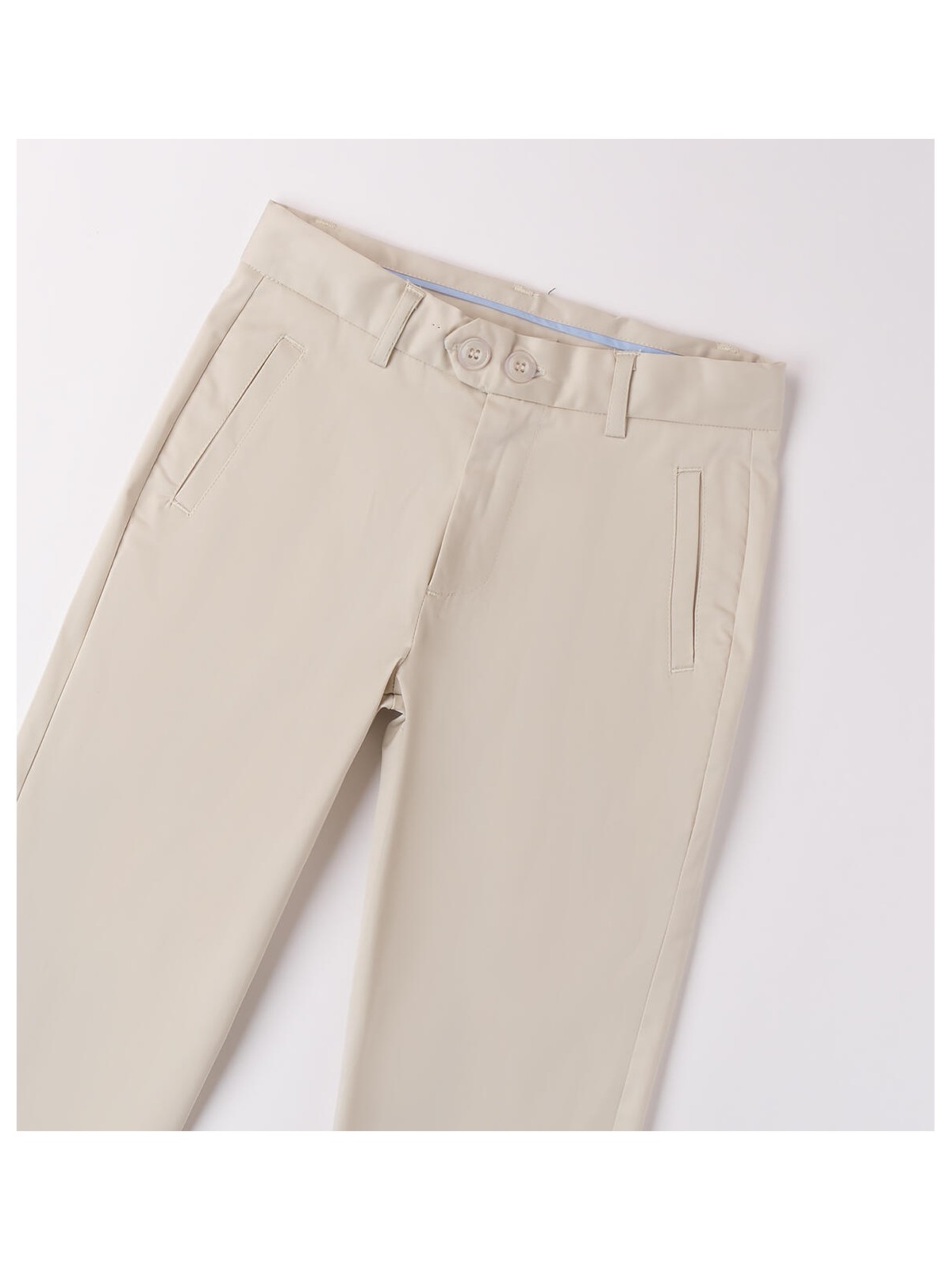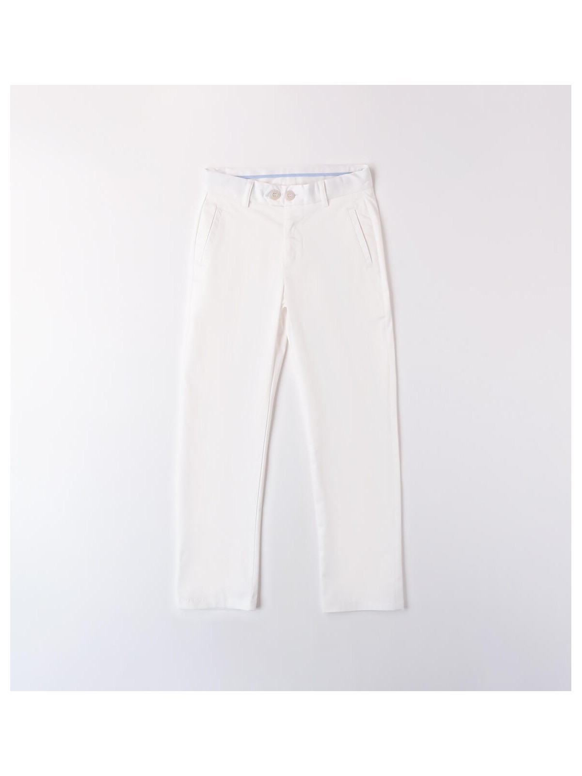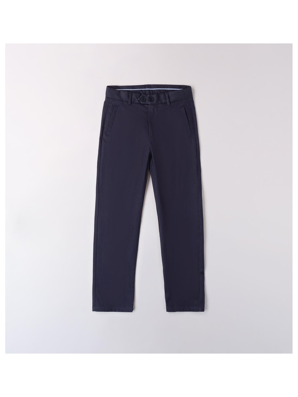 Pantalone da ragazzo Sarabanda in tessuto satin stretch di cotone. Il modello presenta apertura con zip e bottone, tasche laterali e fantasia tinta unita. Vestibilità regular.