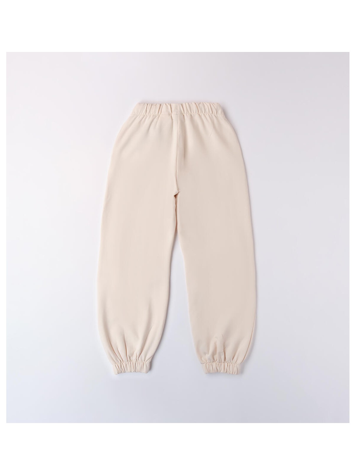 Pantaloni tuta ragazza Sarabanda 8-16 anni in tessuto stretch di cotone. Il modello presenta vita elasticizzata con coulisse, tasche laterali e fantasia tinta unita.