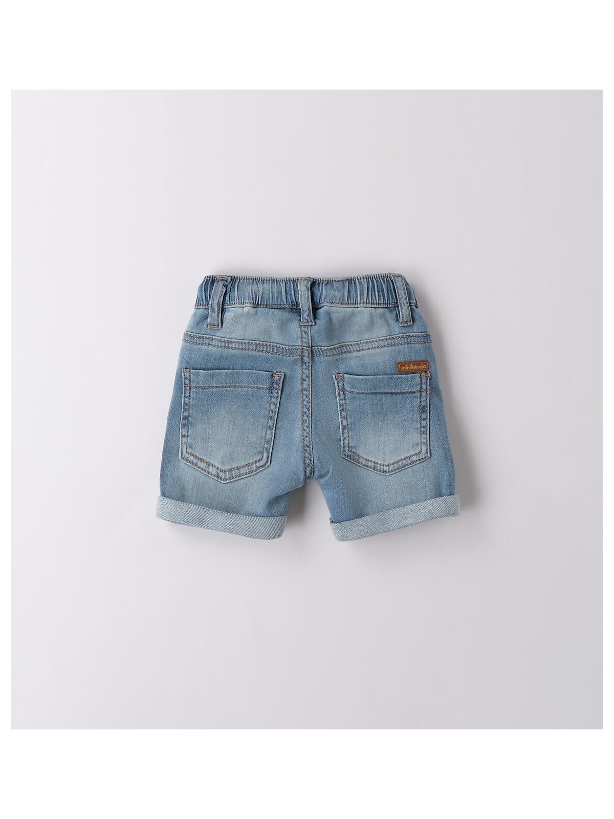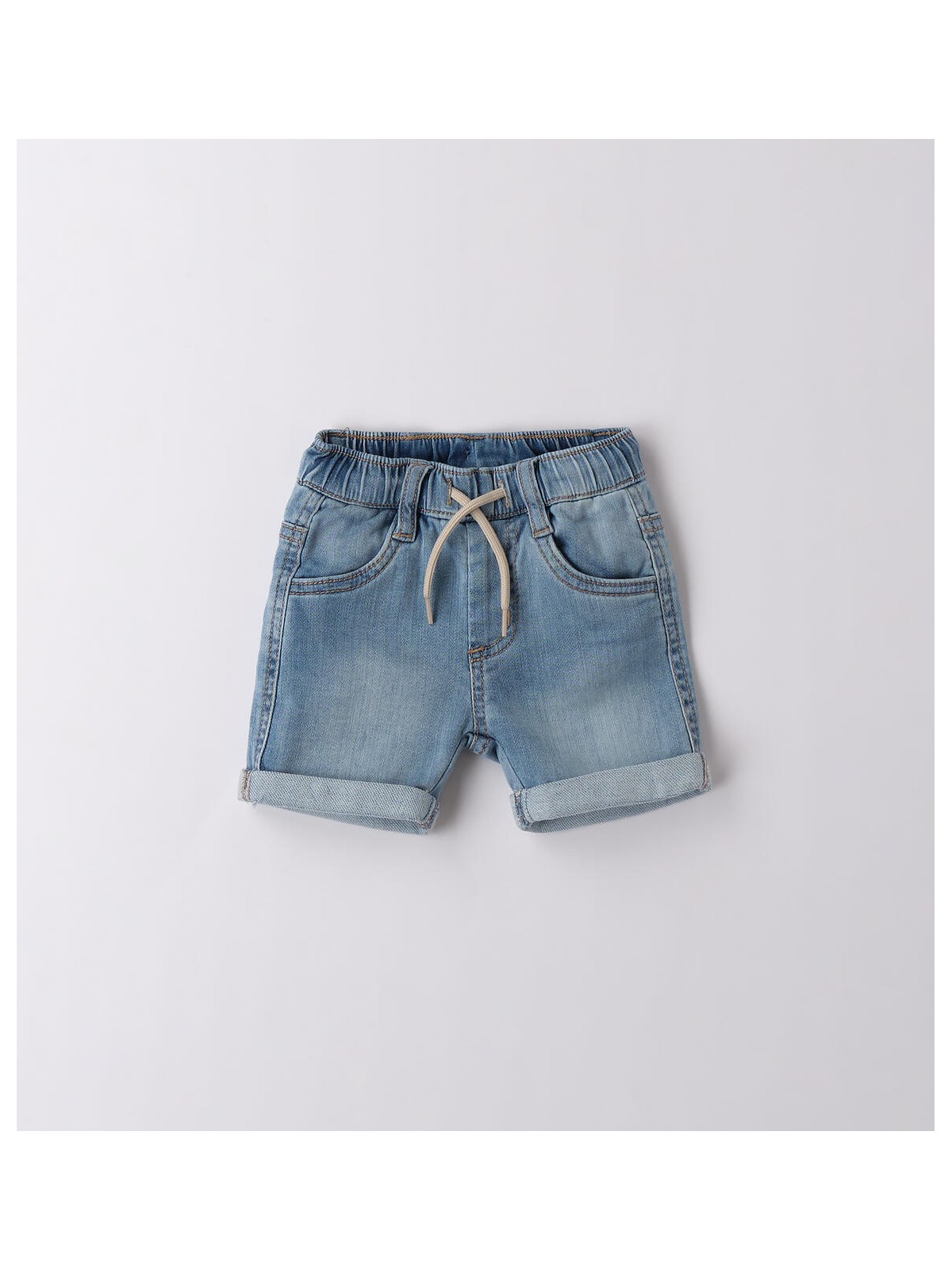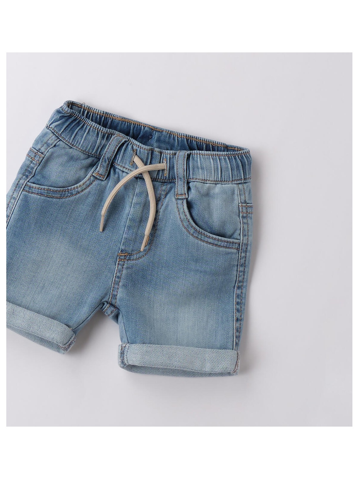 Jeans per neonato realizzati in denim maglia stretch di cotone. Il modello presenta vita elasticizzata con coulisse, risvoltini sul fondo e tasche laterali.