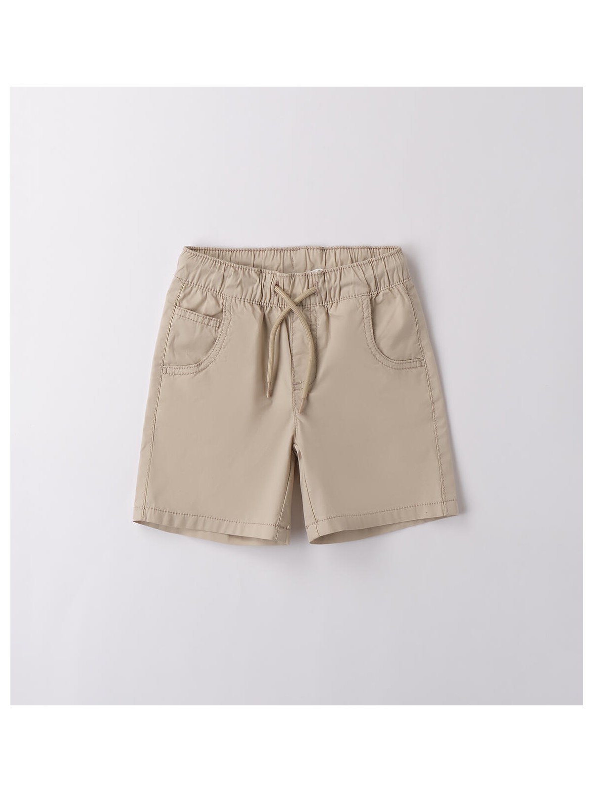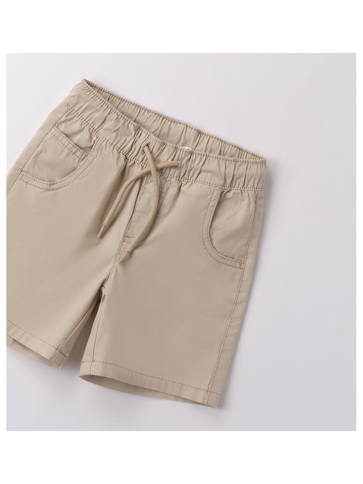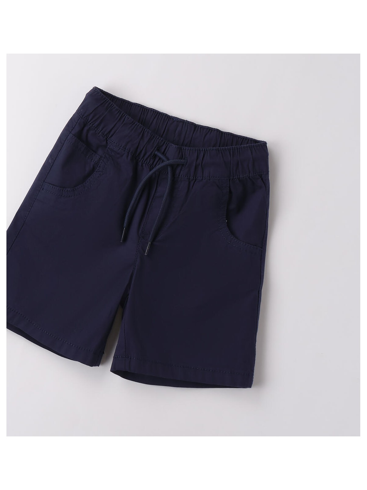 Pantalone corto per bambino da 9 mesi a 8 anni in popeline stretch di cotone. Il modello presenta vita elasticizzata con coulisse, fantasia tinta unita e tasche laterali. Regular fit.