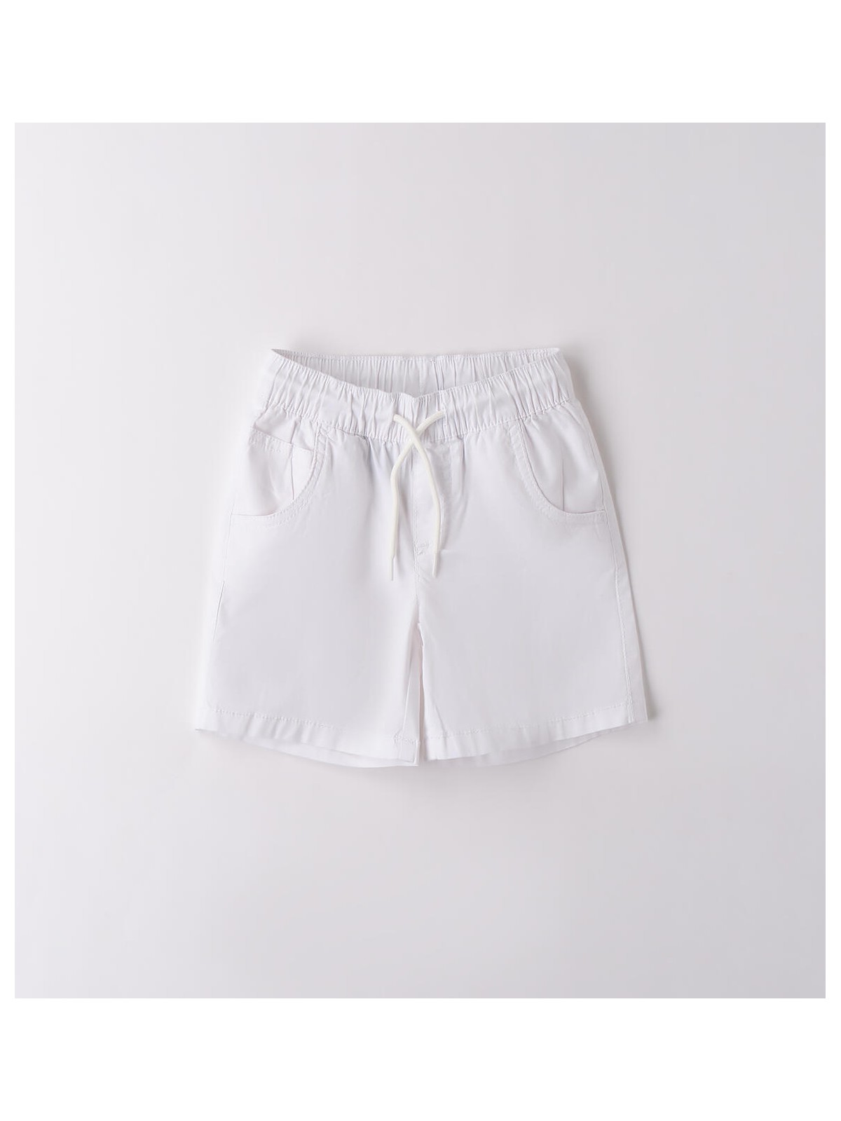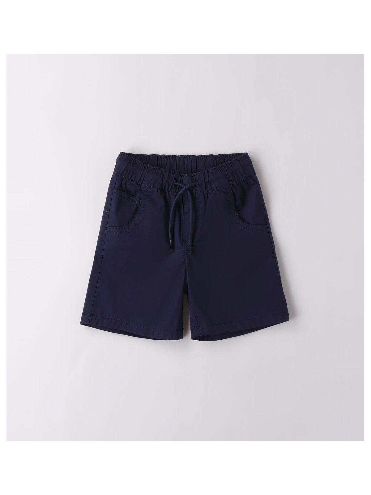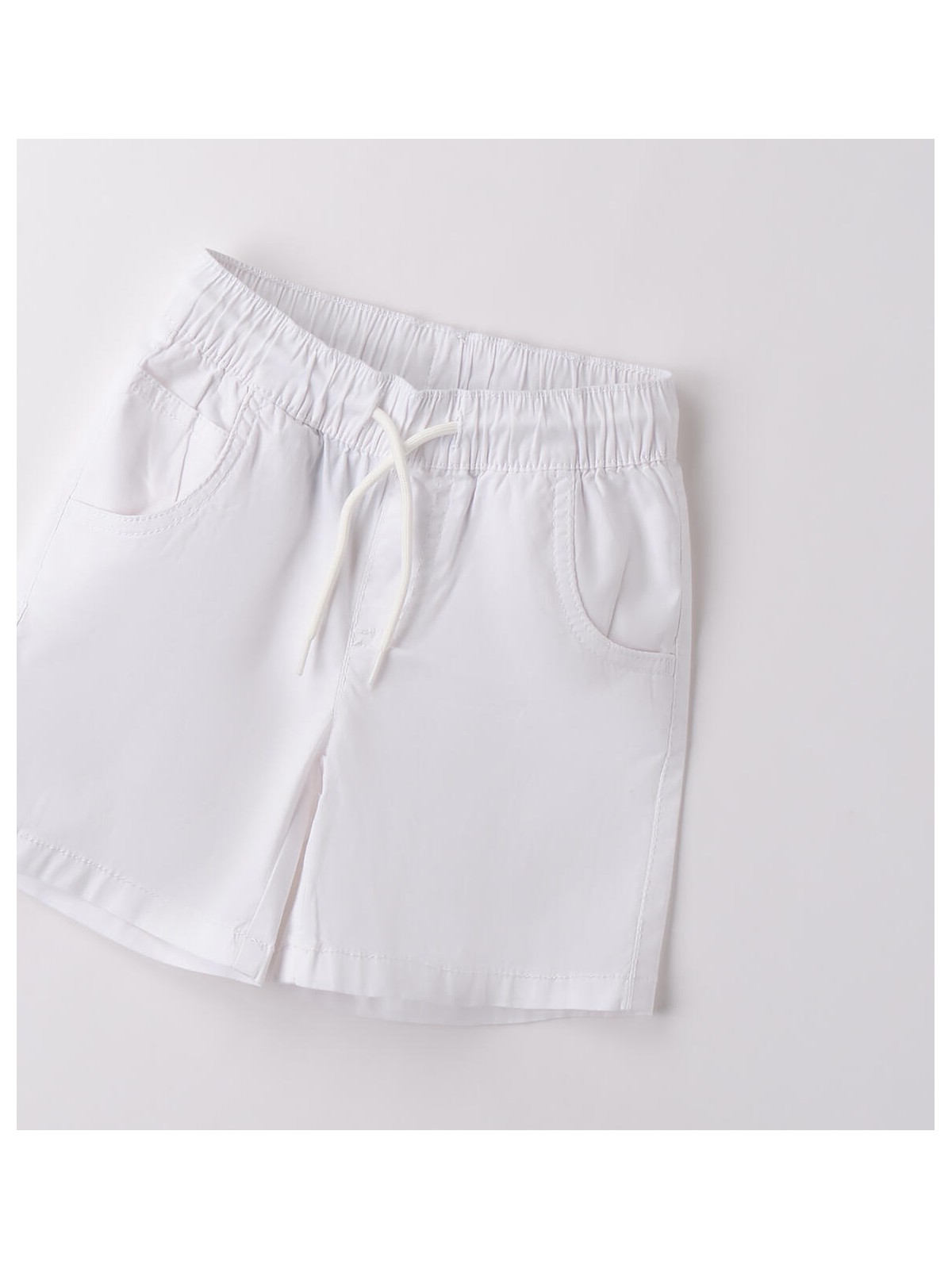 Pantalone corto per bambino da 9 mesi a 8 anni in popeline stretch di cotone. Il modello presenta vita elasticizzata con coulisse, fantasia tinta unita e tasche laterali. Regular fit.