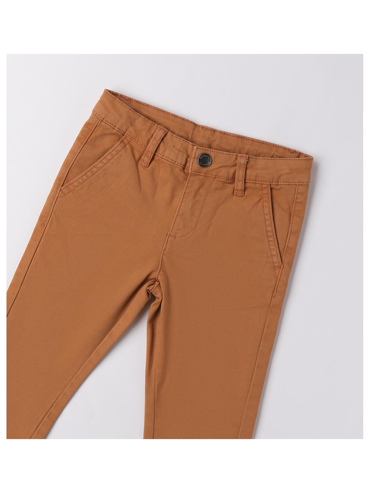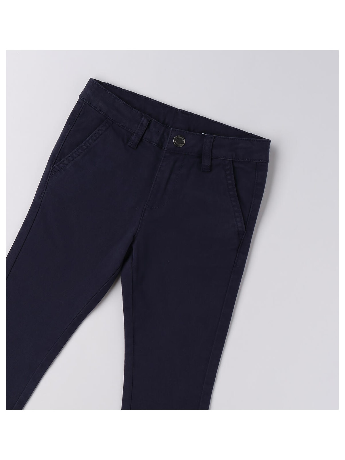 Pantalone da bambino realizzato in twill stretch di cotone. Il modello ha l'apertura con bottone e zip, vita regolabile con elastico asolato interno. Regular fit