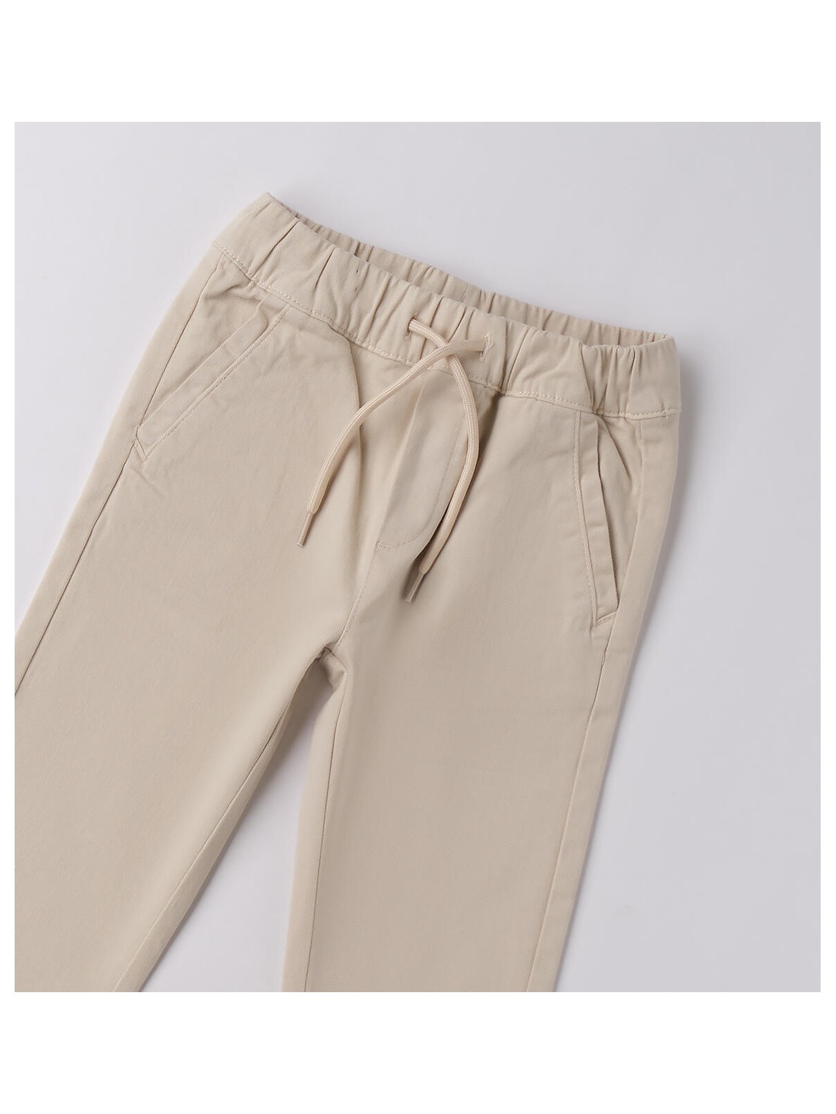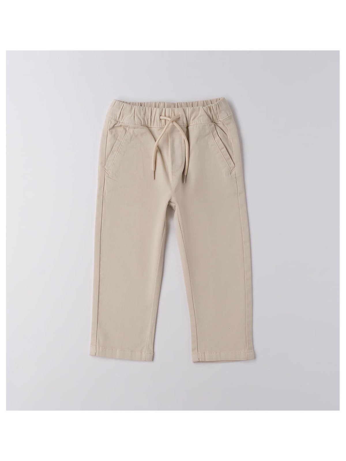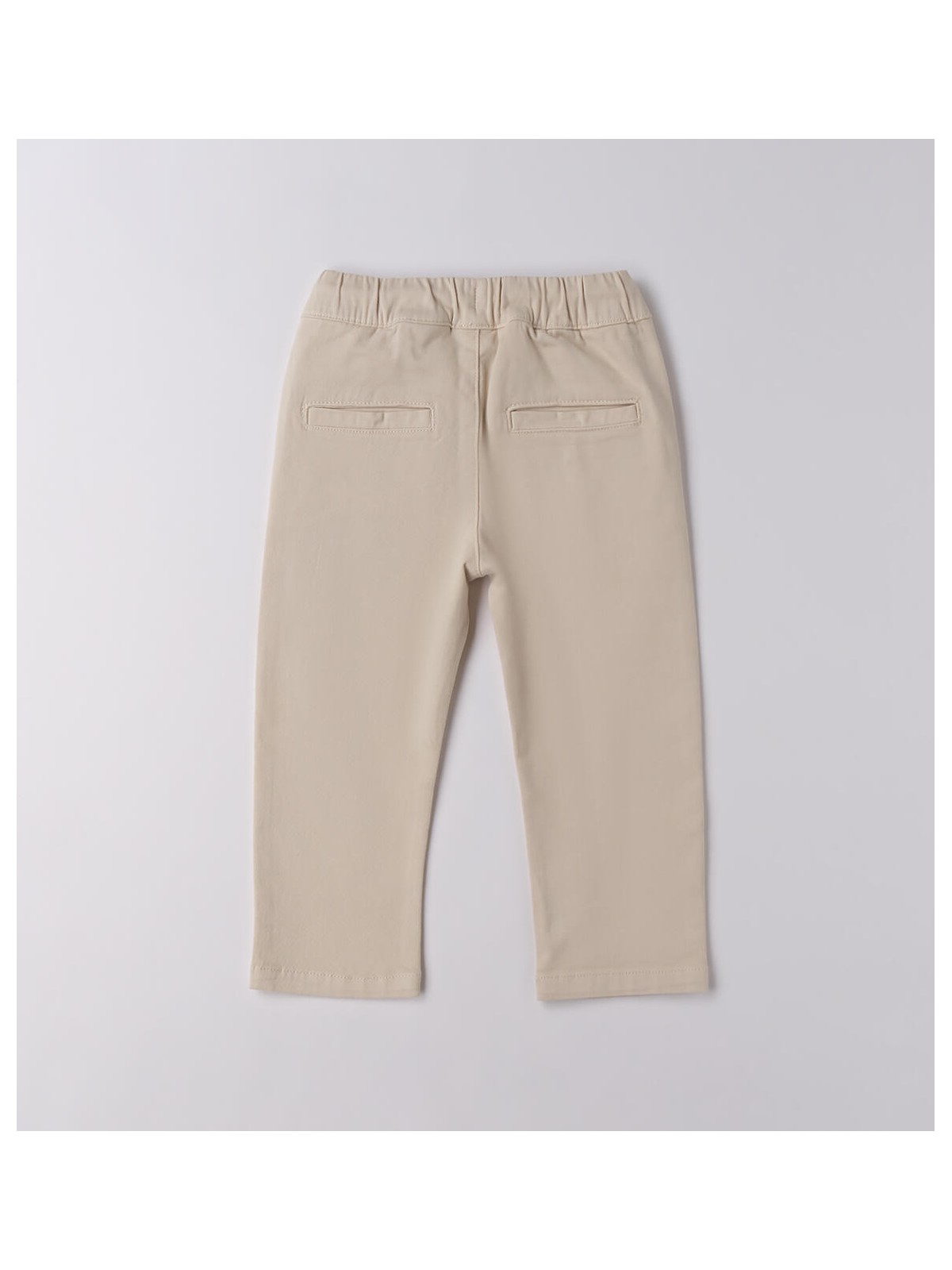 Pantalone da bambino realizzato in twill manopesca. Il modello ha vita elasticizzata con coulisse. Vestibilità comoda, modello chino