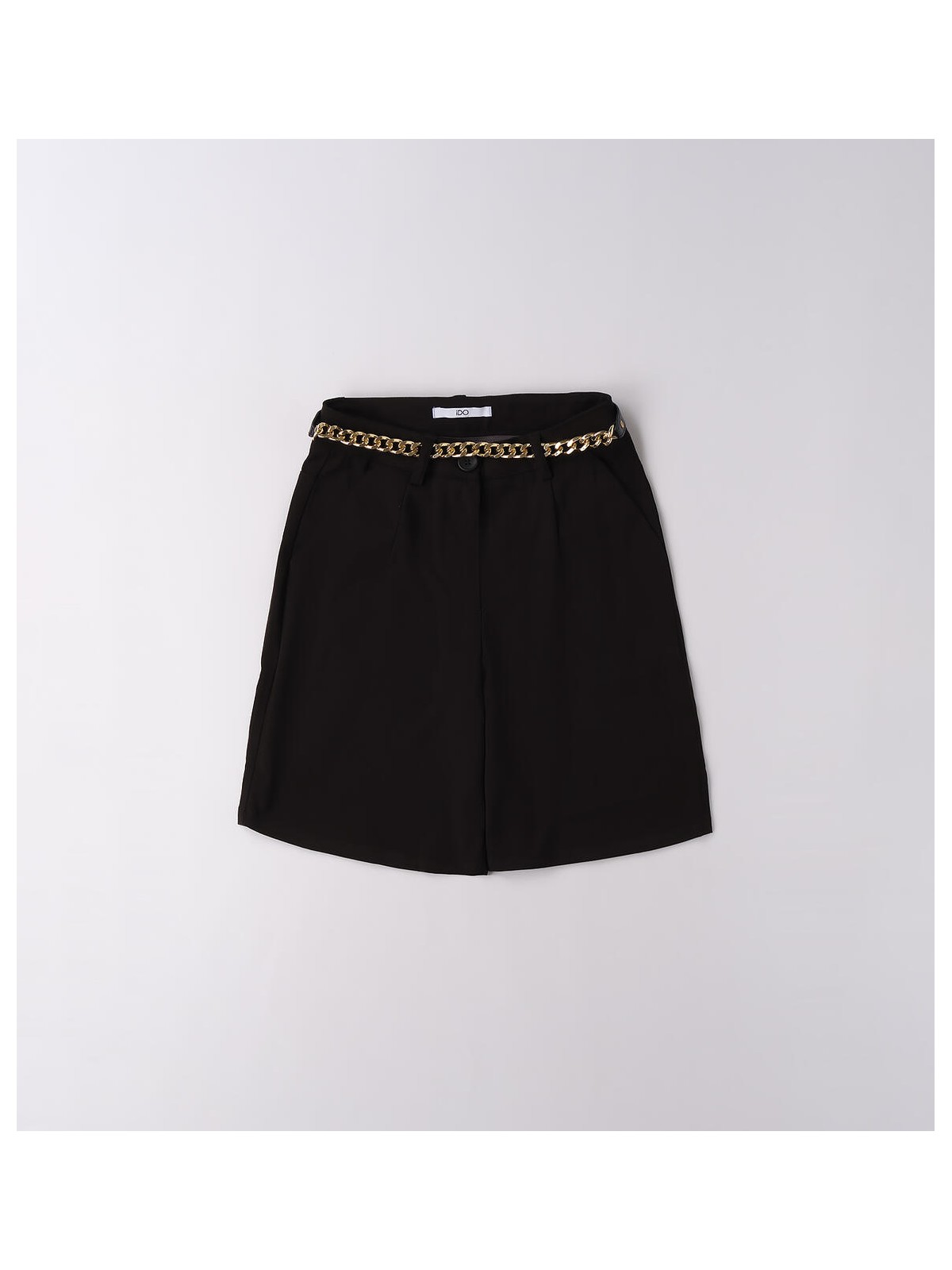 Shorts ragazza realizzati in twill stretch. Apertura con zip e bottone. Vita regolabile con elastico asolato interno. Cintura dorata in abbinamento