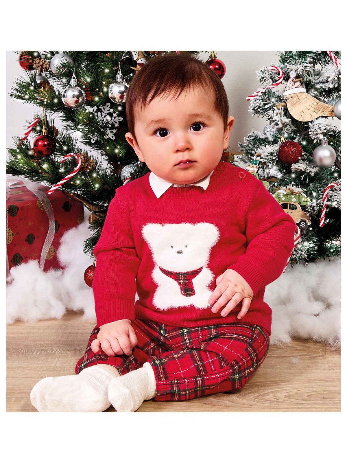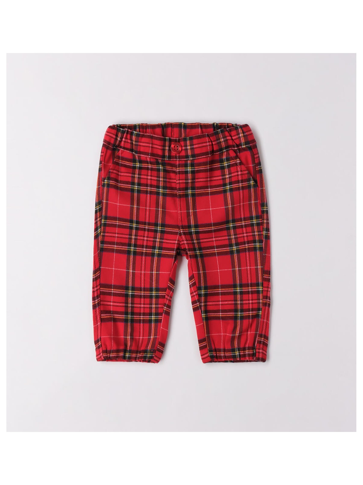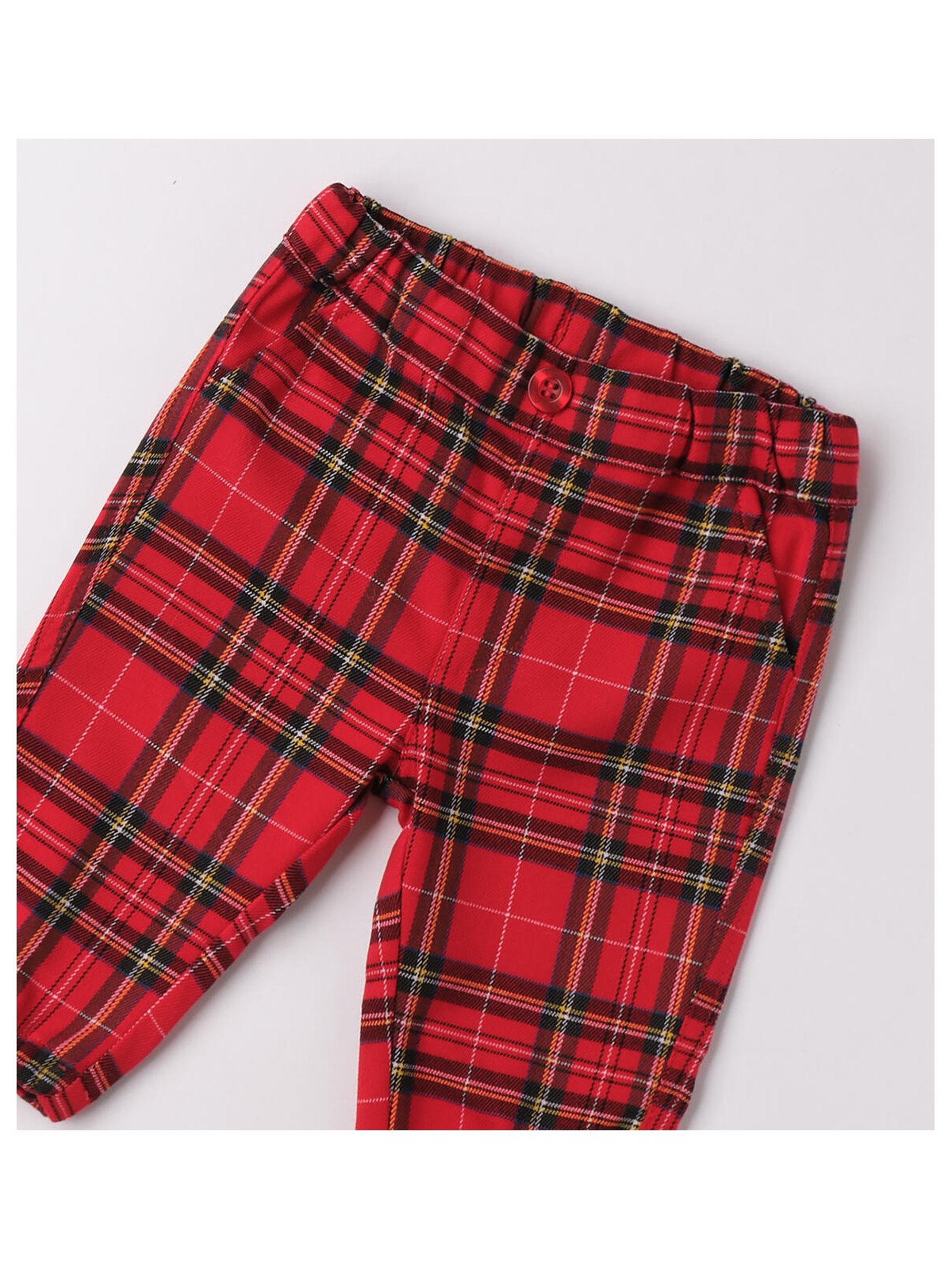 Pantaloni per bimbo realizzati in tessuto twill. Il modello ha la vita regolabile tramite elastico asolato interno. Il pantalone è realizzato in fantasia scozzese. Perfetto per essere indossato durante le feste Natalizie