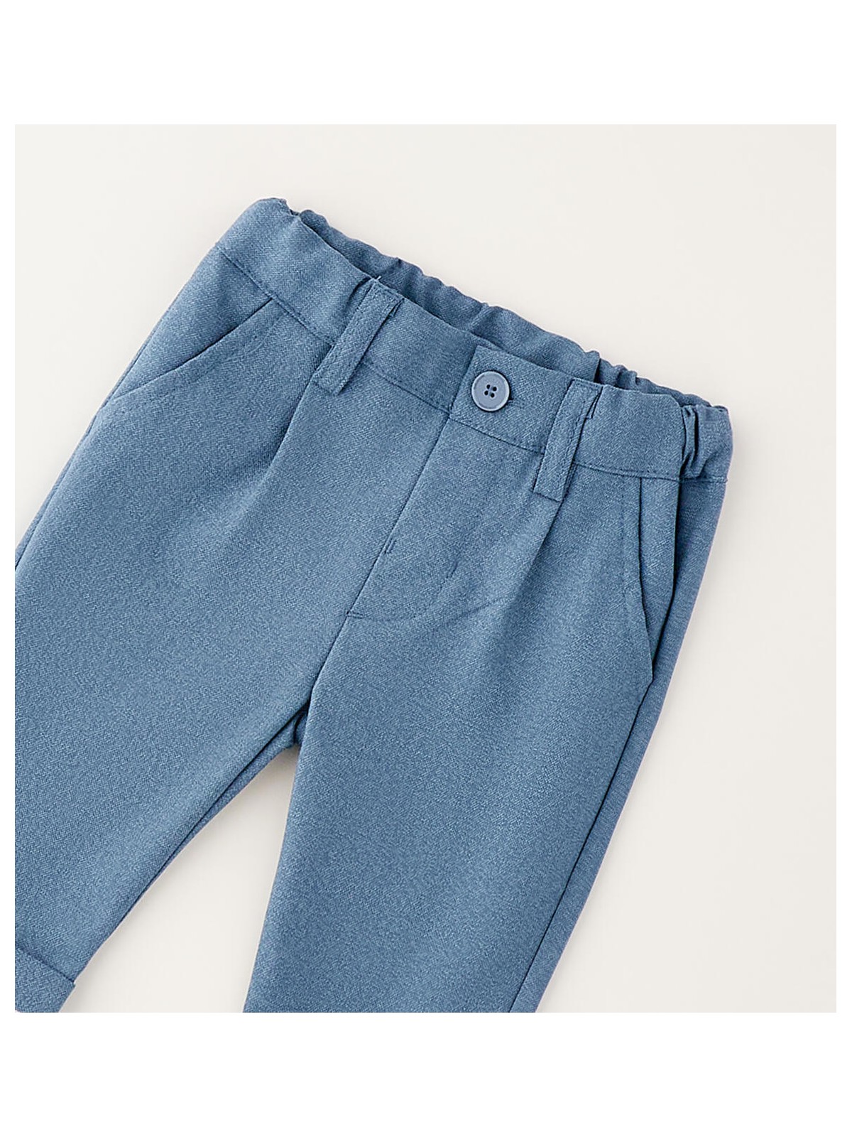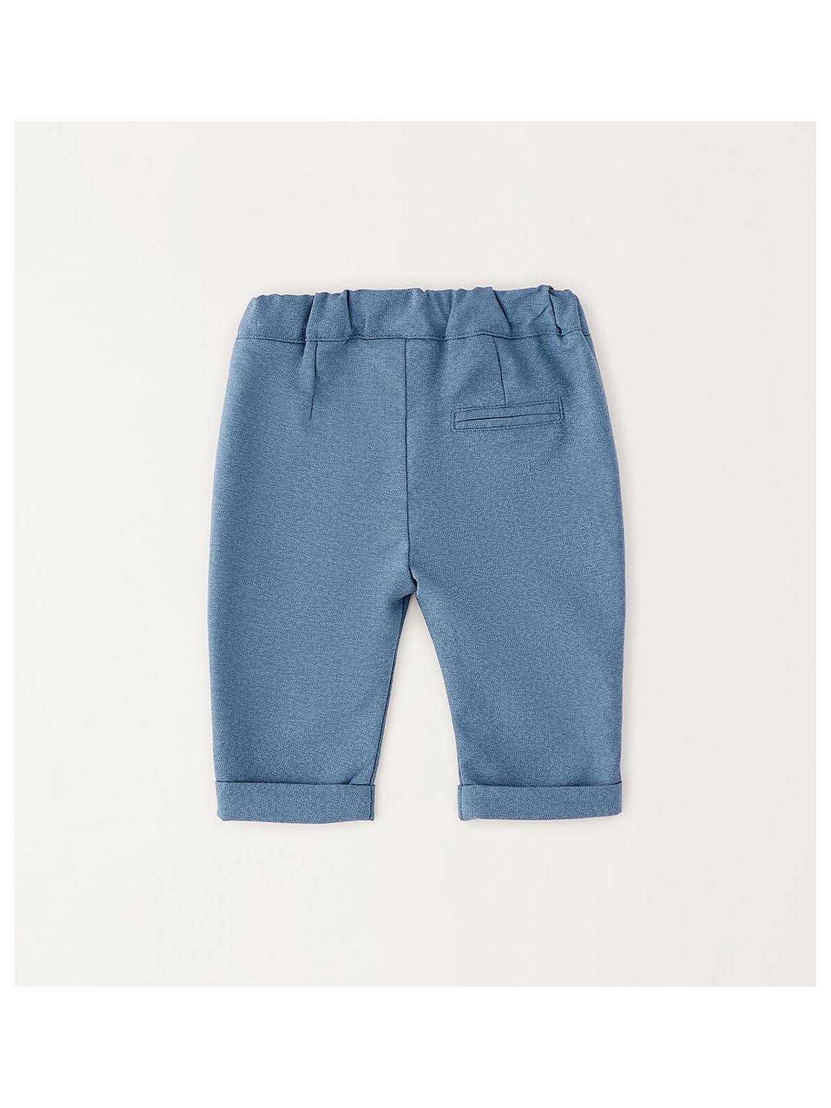 Pantalone elegante per neonato Minibanda realizzato in tessuto elesticizzato con risvoltino sul fondo e vita regolabile con elastico asolato interno. Tasche davanti e finta tasca dietro