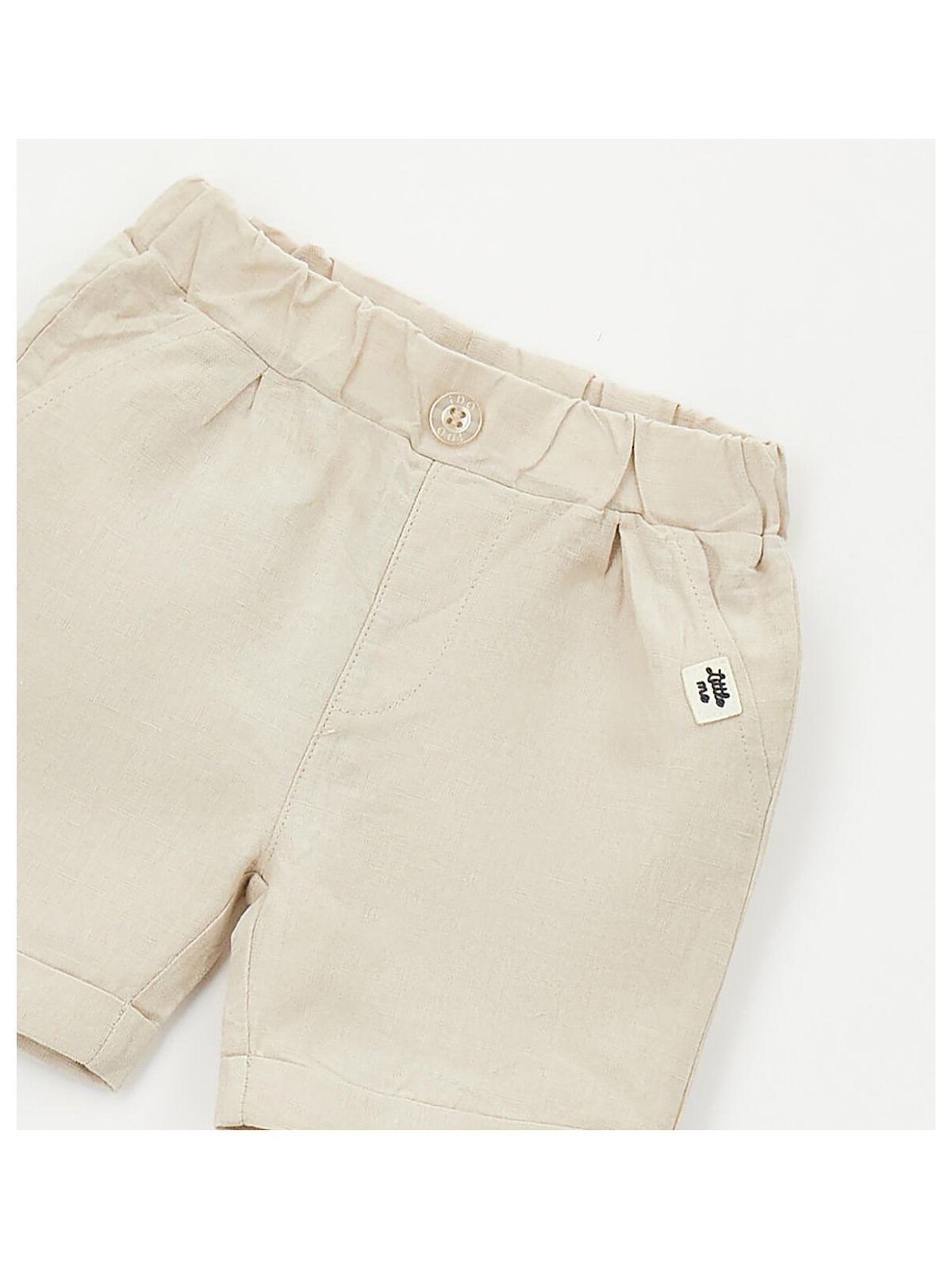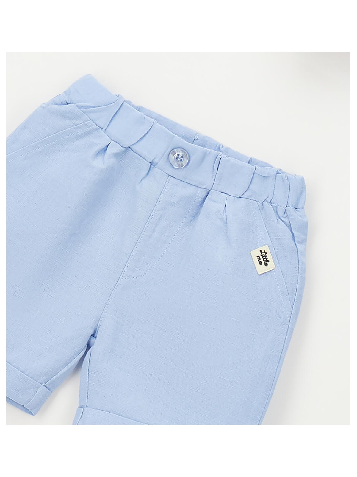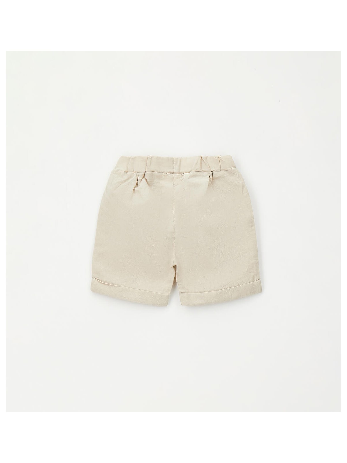 Fresco ed elagante pantalone corto in lino e cotone. Finta apertura e finte tasche. Risvoltino sul fondo. Cavallo calato